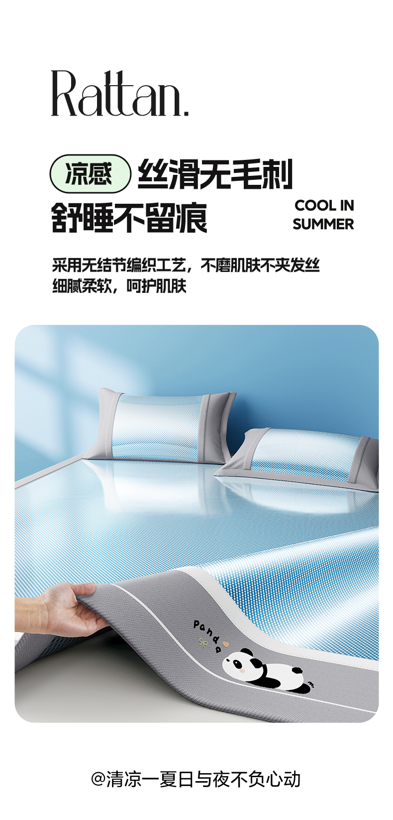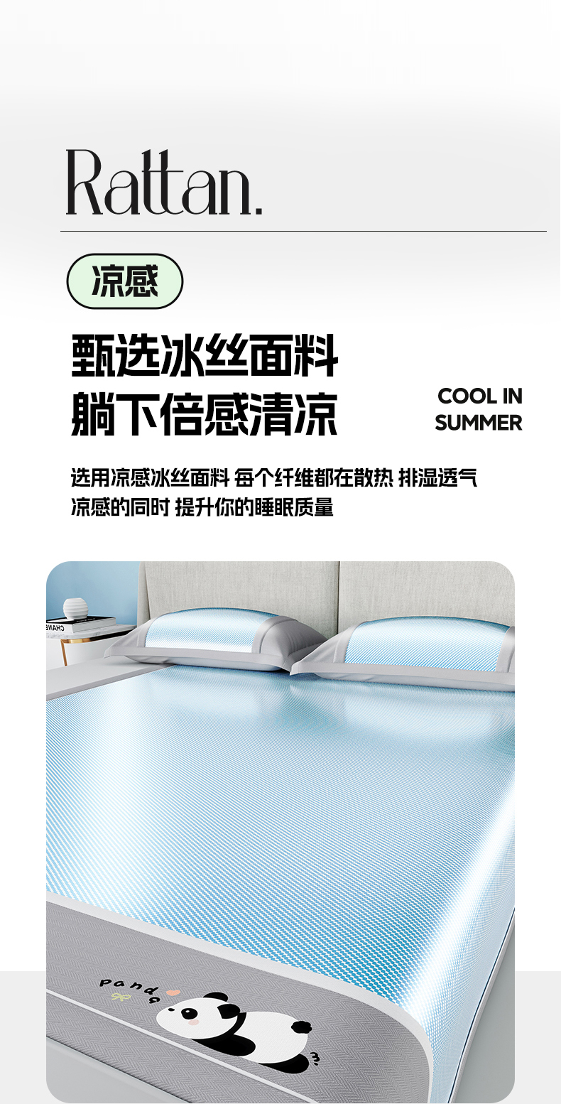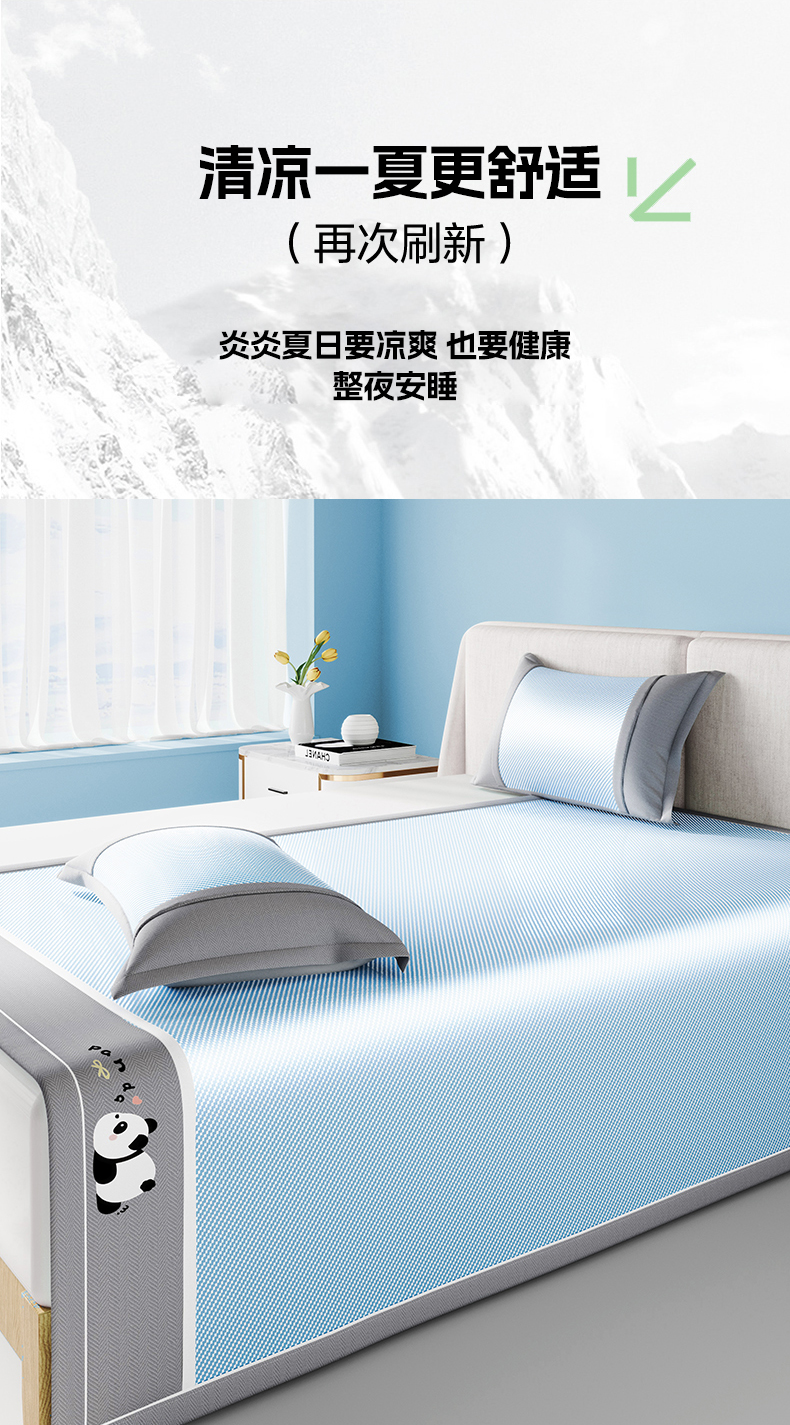 商品名称:川悦生活 2025新款纯色凉感冰丝席-大床 眠眠熊猫-水蓝