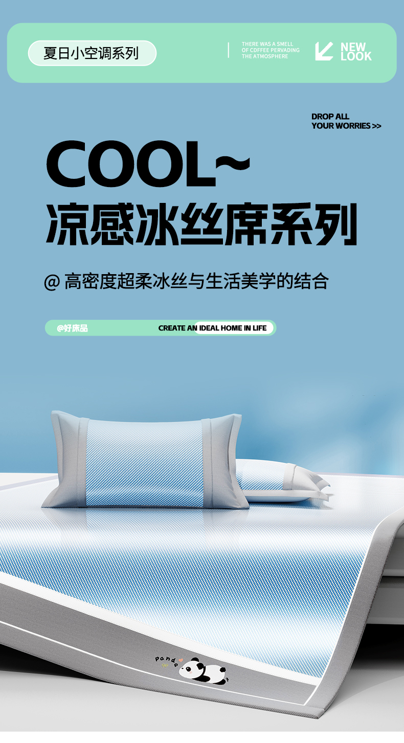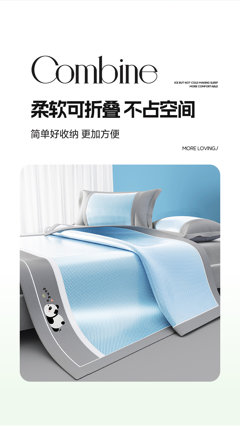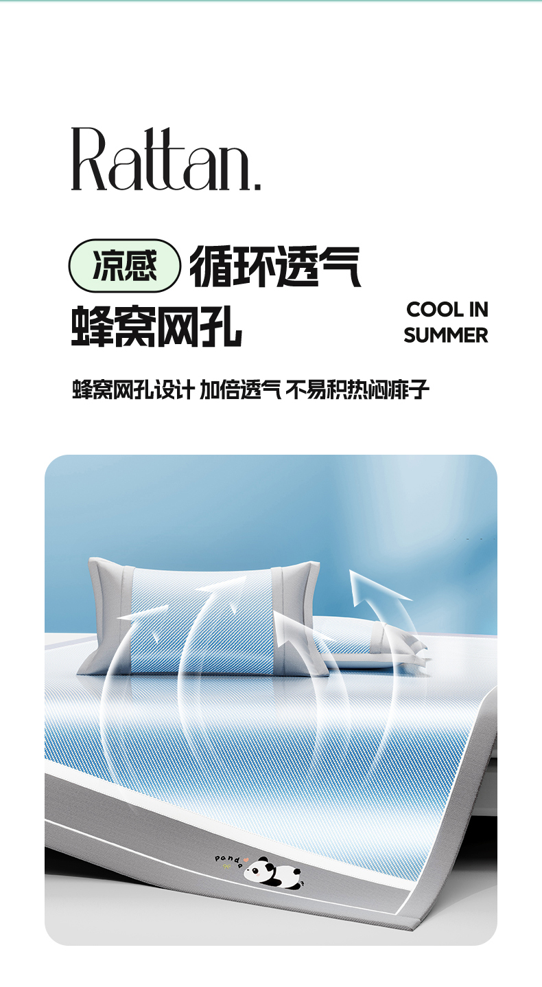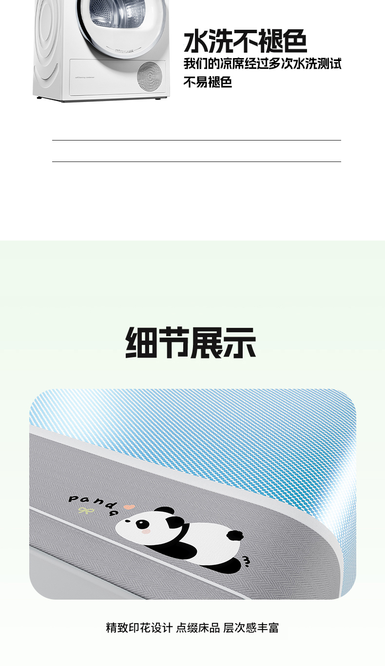 商品名称:川悦生活 2025新款纯色凉感冰丝席-大床 眠眠熊猫-水蓝