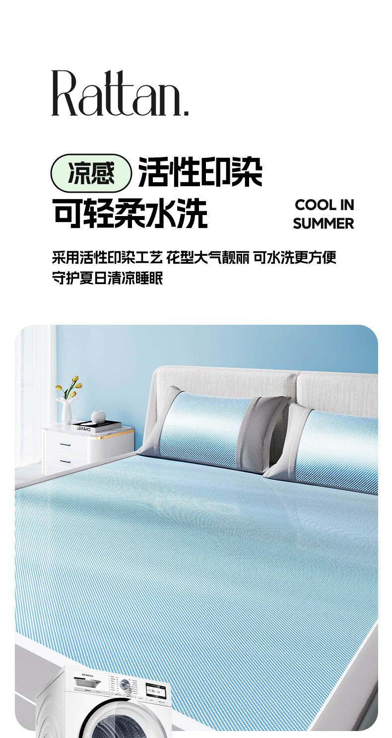 川悦生活 2025新款纯色凉感冰丝席-大床 眠眠熊猫-水蓝