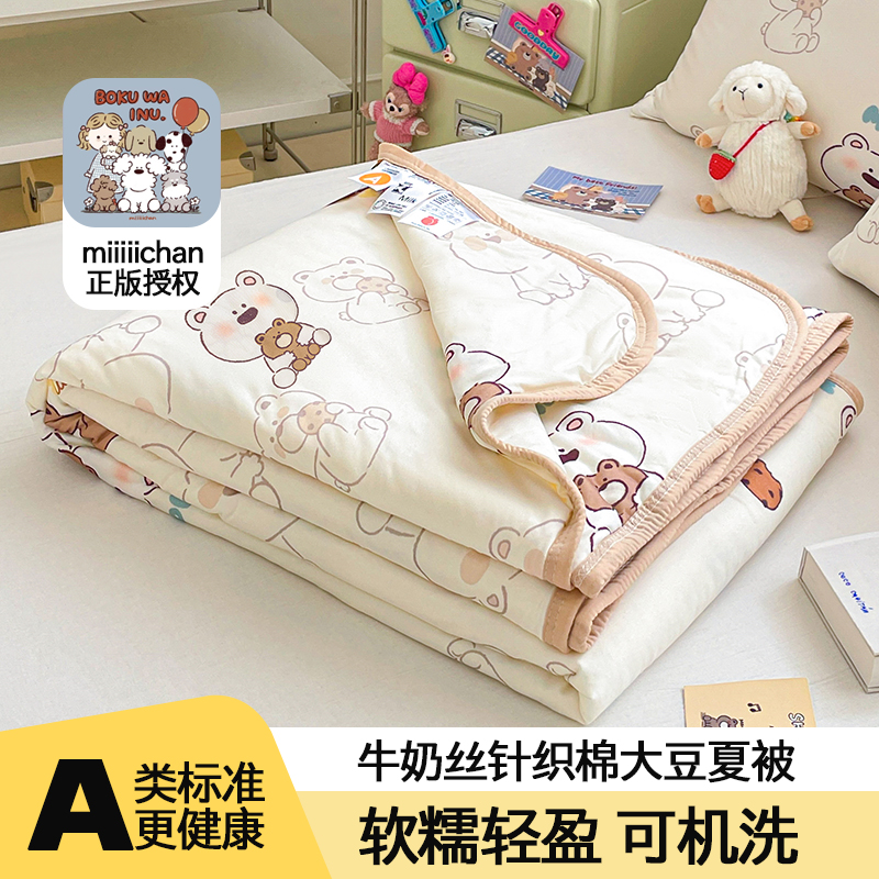• 91家纺网 家纺一手货源 找家纺 金爱家2025新款A类高品质正版授权miiiiichan可爱卡通狗狗白熊女孩牛奶丝针织棉夏被 针织棉miiiiichan-奶咖棕熊