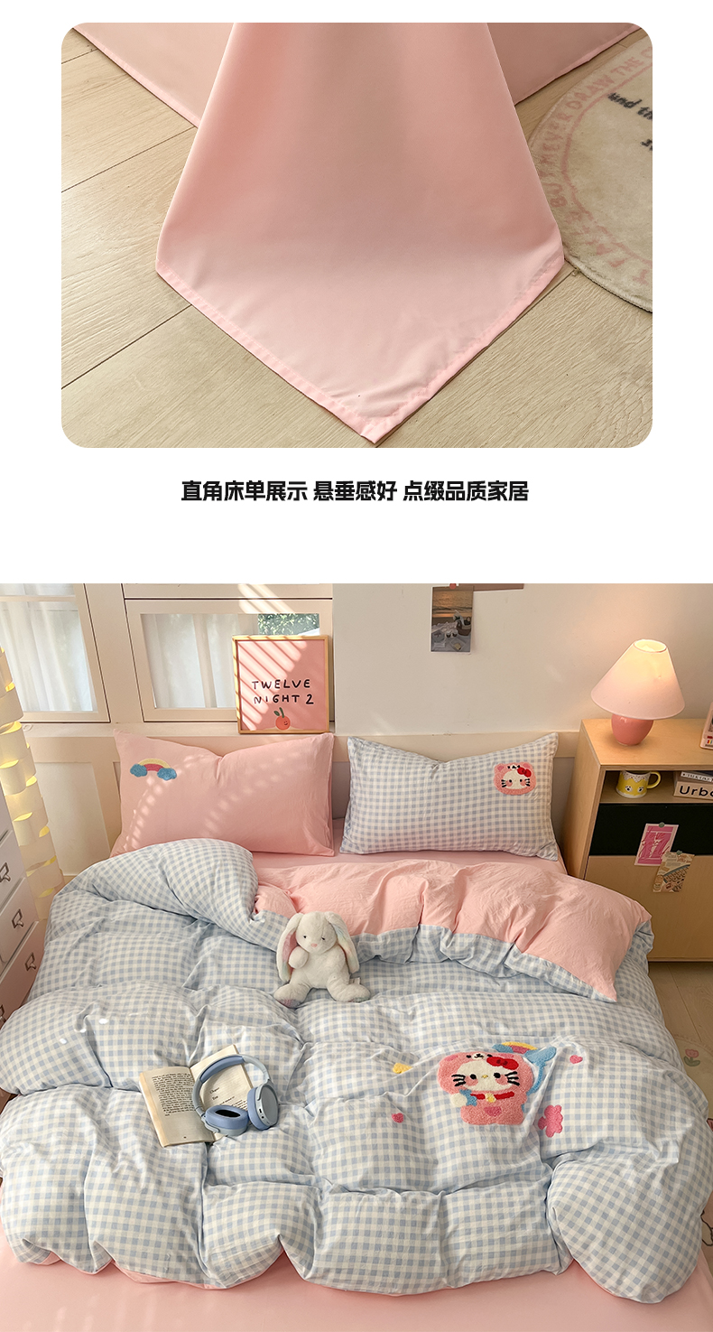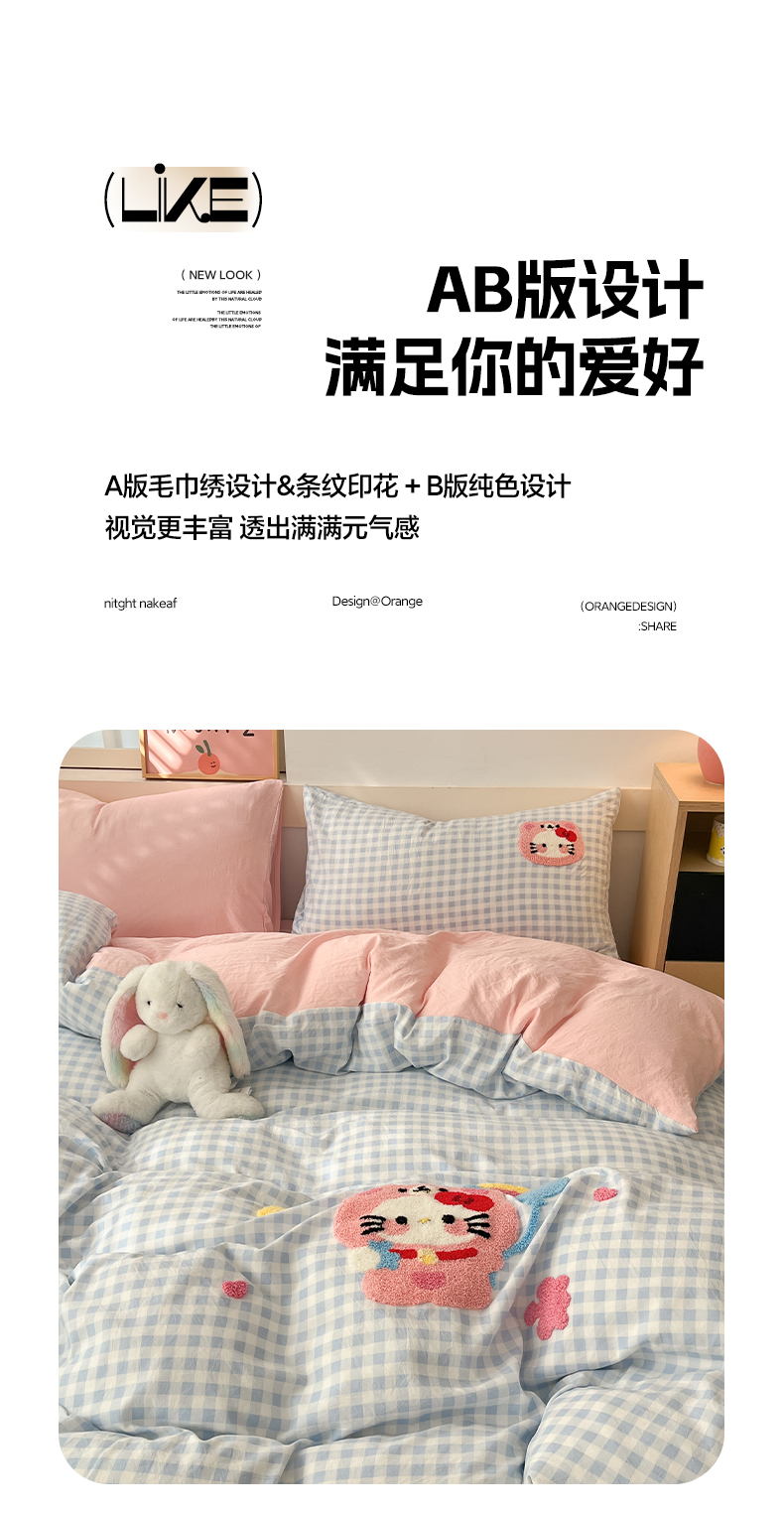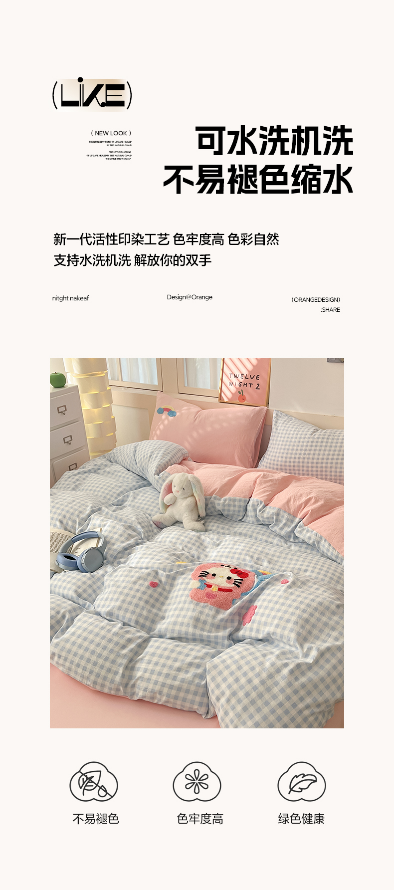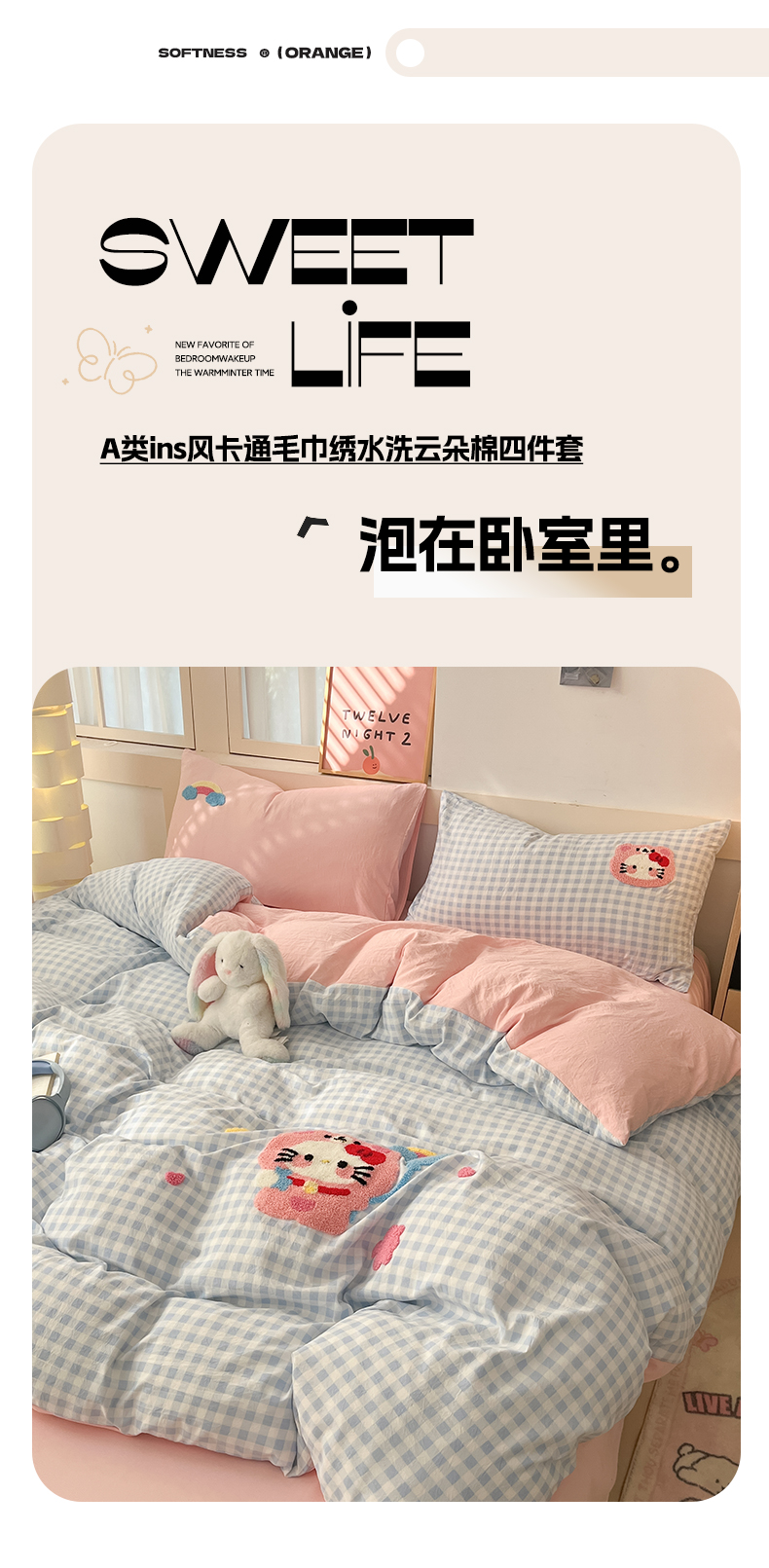 商品名称:如一 2025新款A类ins风卡通毛巾绣水洗棉四件套 小花猫