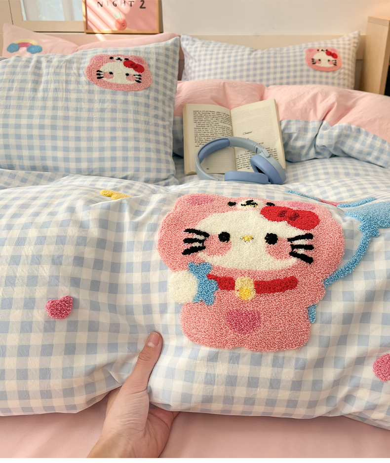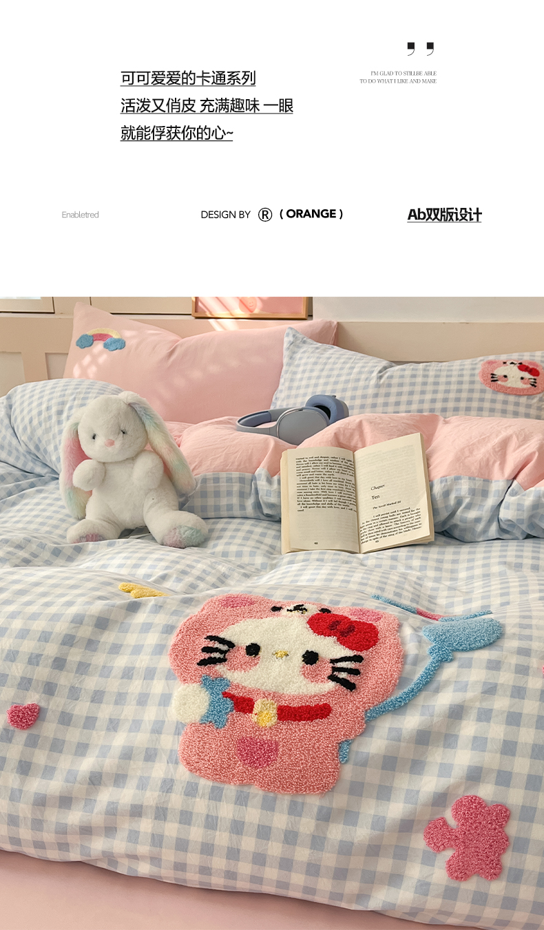 如一 2025新款A类ins风卡通毛巾绣水洗棉四件套 小花猫