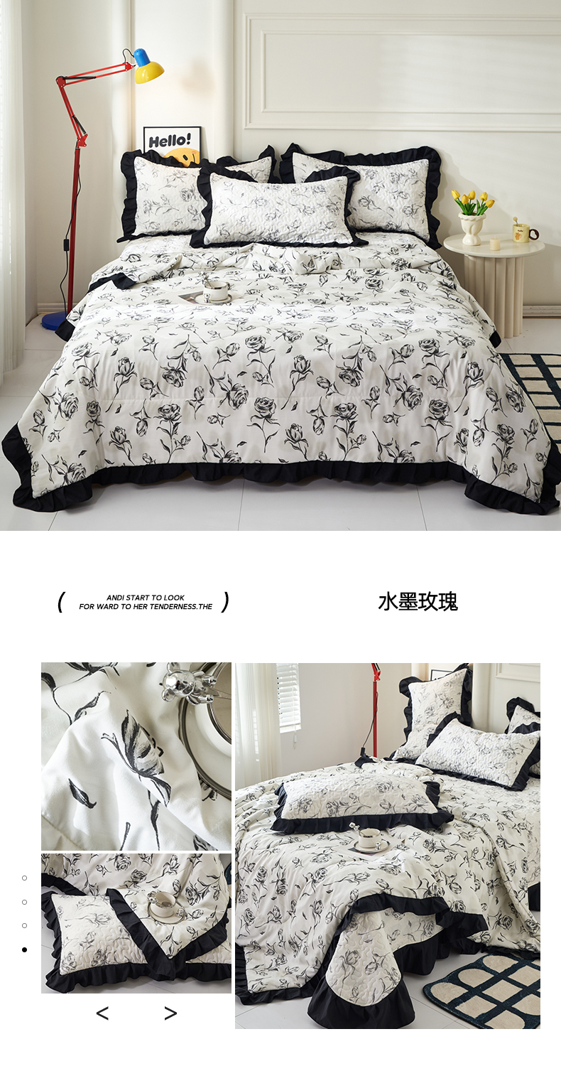 商品名称:蝶帕家纺 2025新款法式赫本风韩版花边床盖款夏被四件套 水墨玫瑰