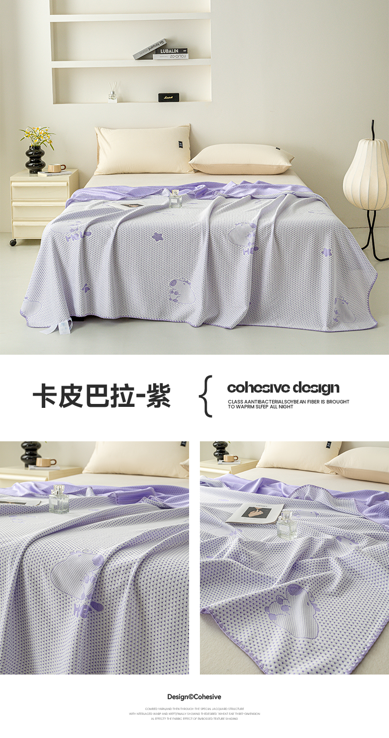 商品名称:梦尚舒 2025新款直播热款凉感针织提花盖毯子夏被贝壳边空调被 卡皮巴拉-紫