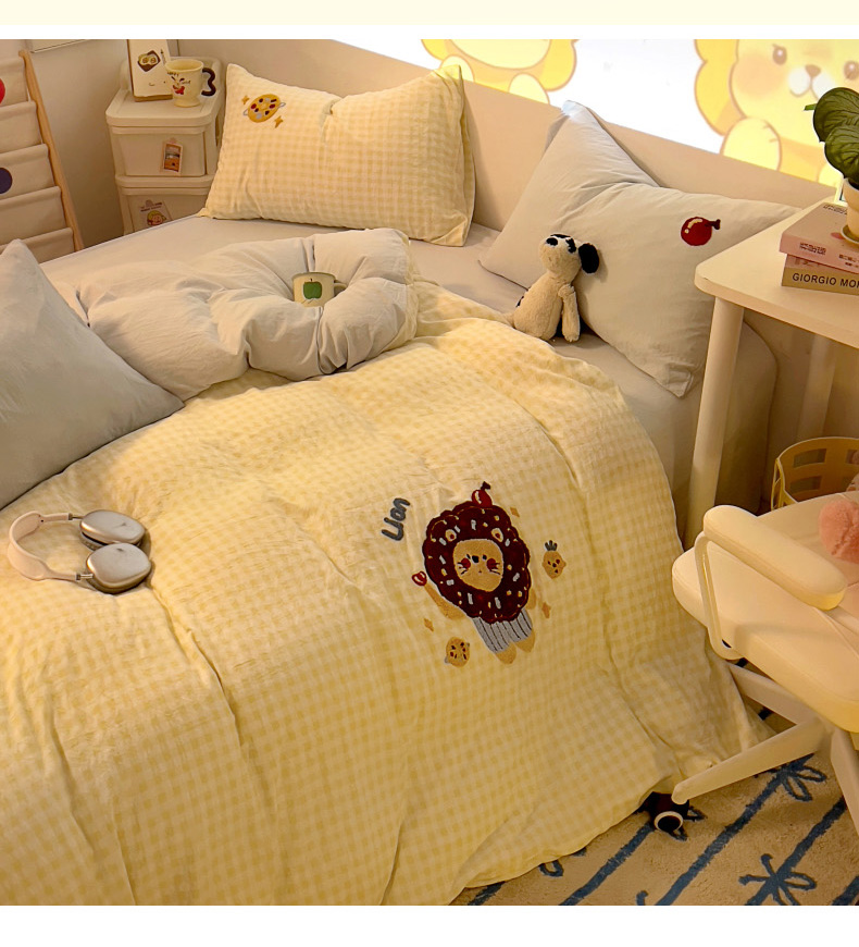 当前位置: 91家纺网 > 商品网购 > 床品套件 > 四件套 > 全棉普通四件套 > 2025新款专版高克重超萌卡通格子双拼毛巾绣软糯糯水洗棉四件套(场景二) 糖果卡皮巴拉