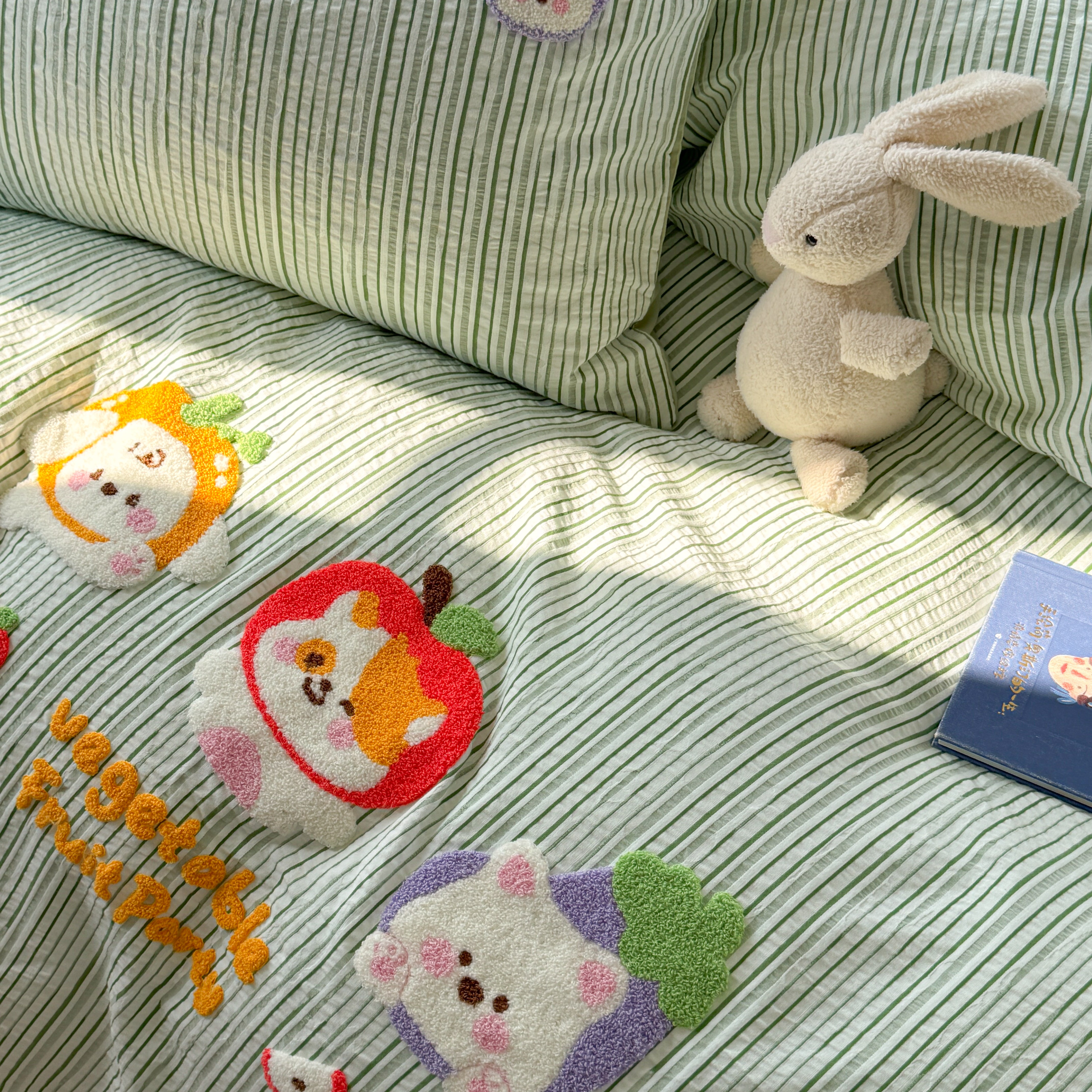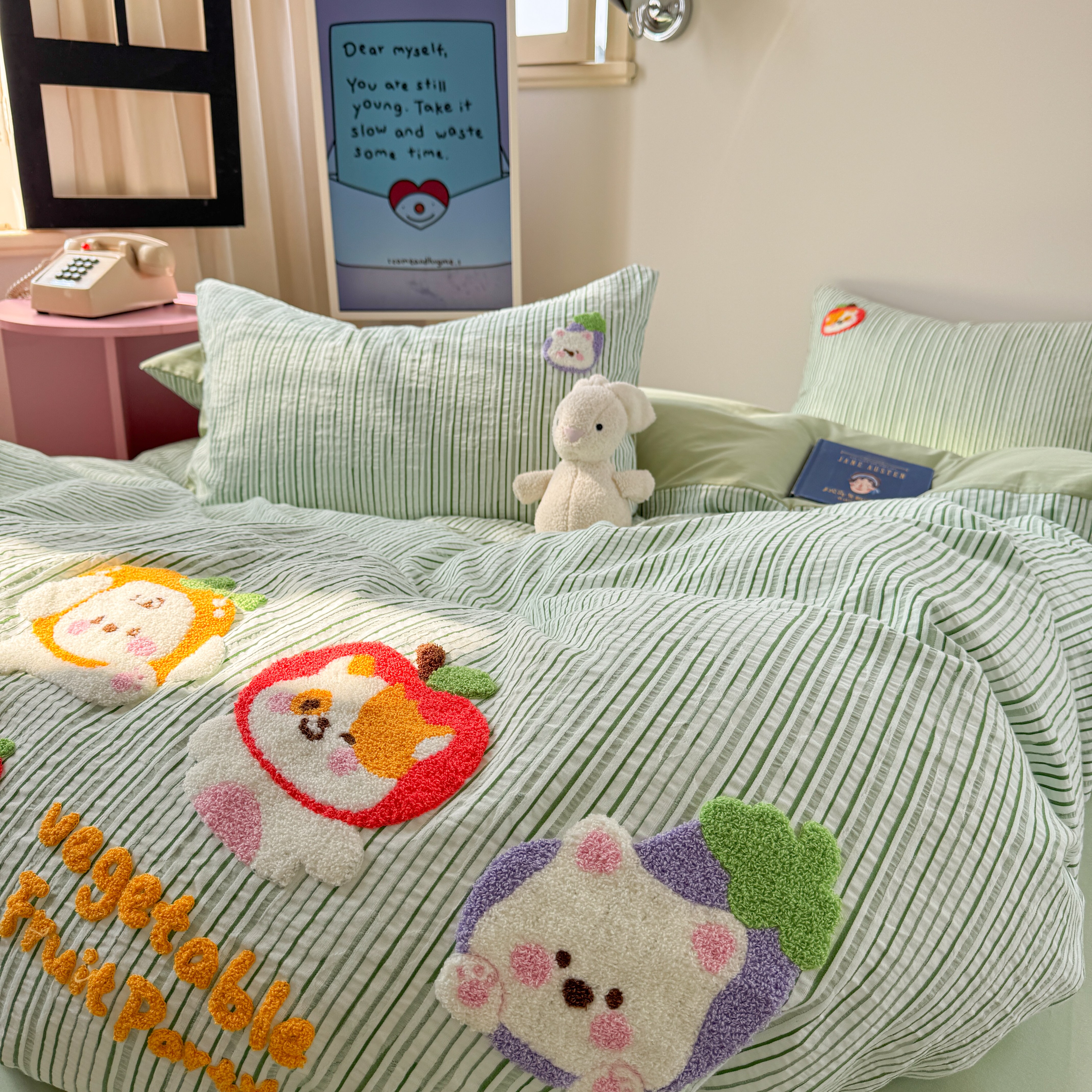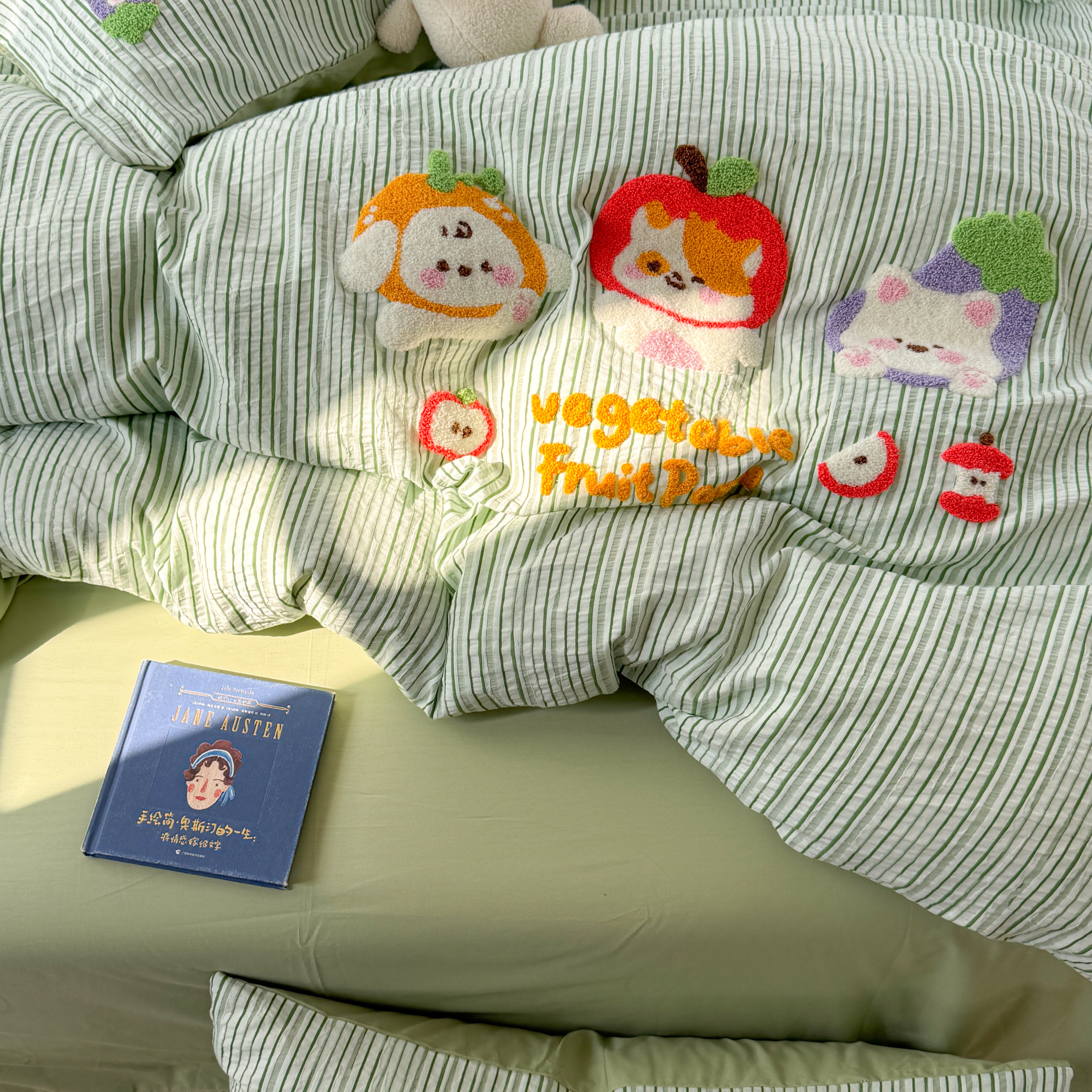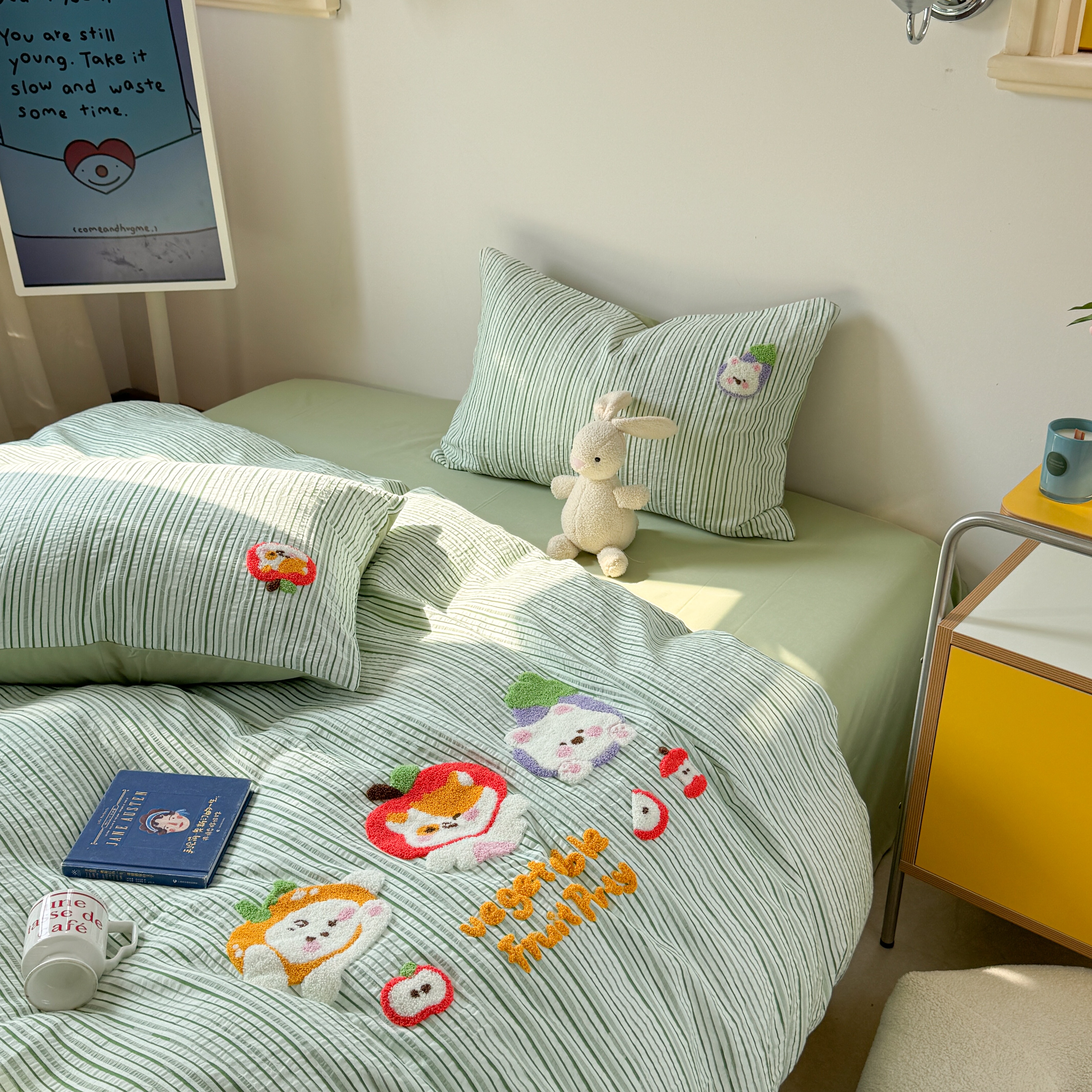 商品名称:柚子 2025春夏新款全棉纯棉提花毛巾绣四件套 蔬果派对