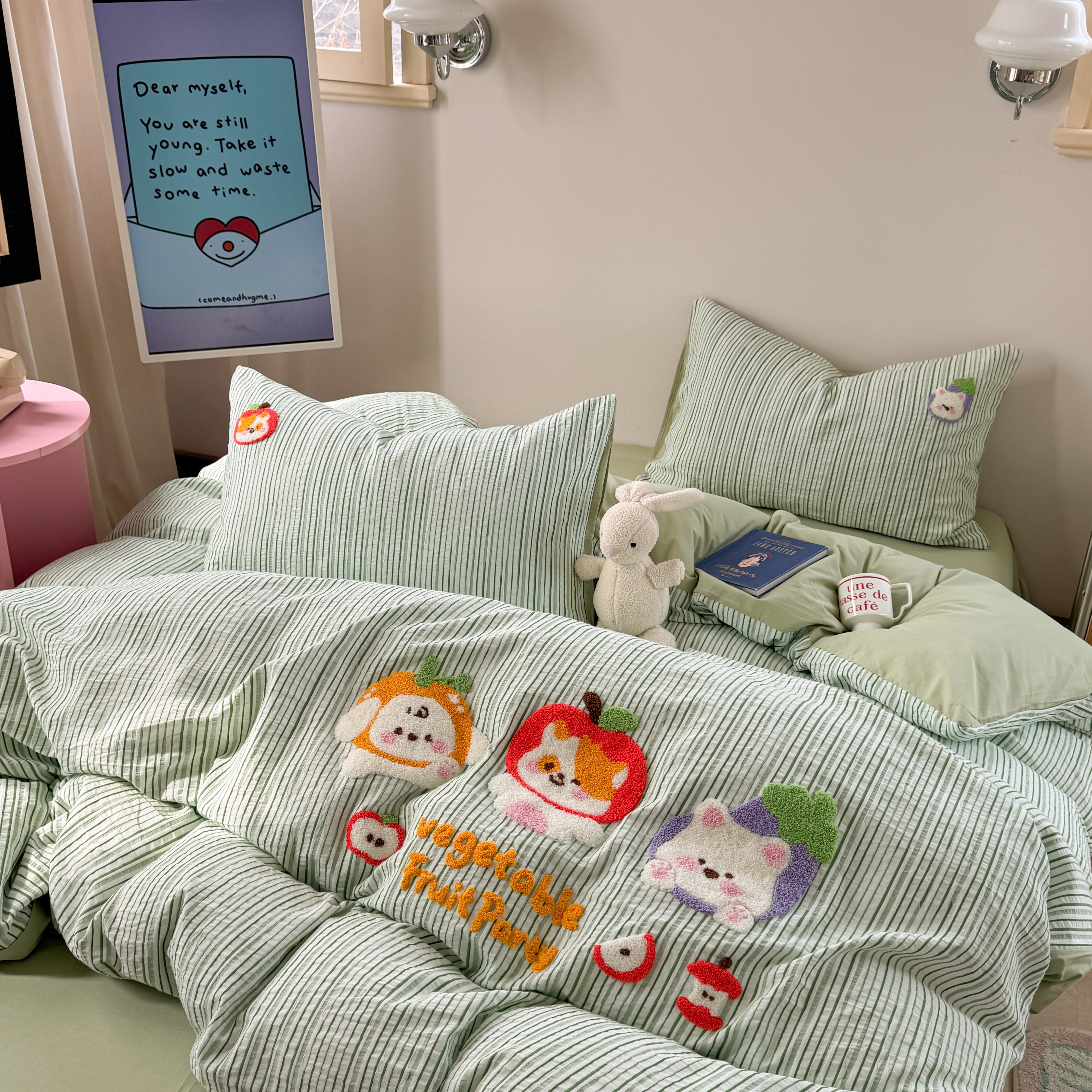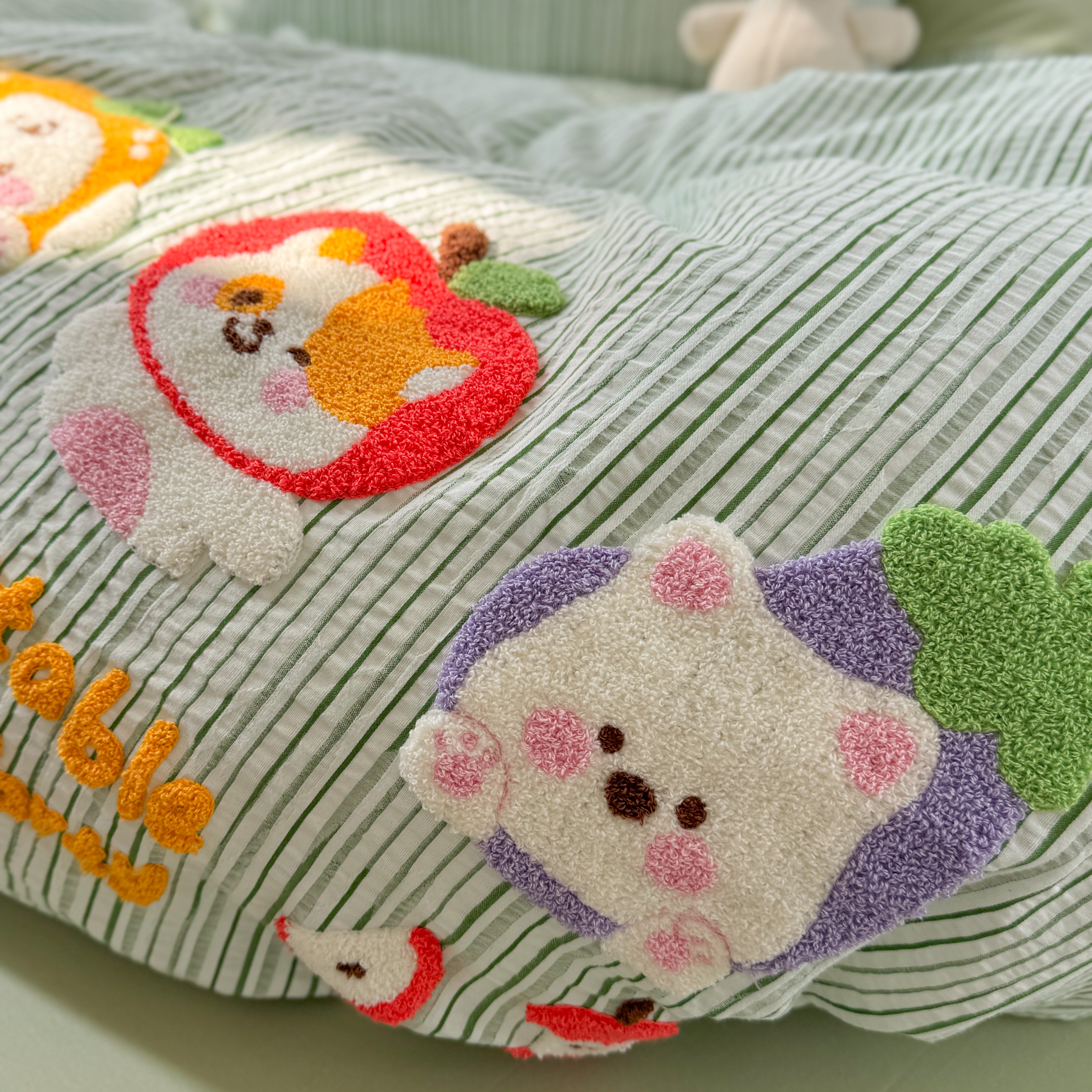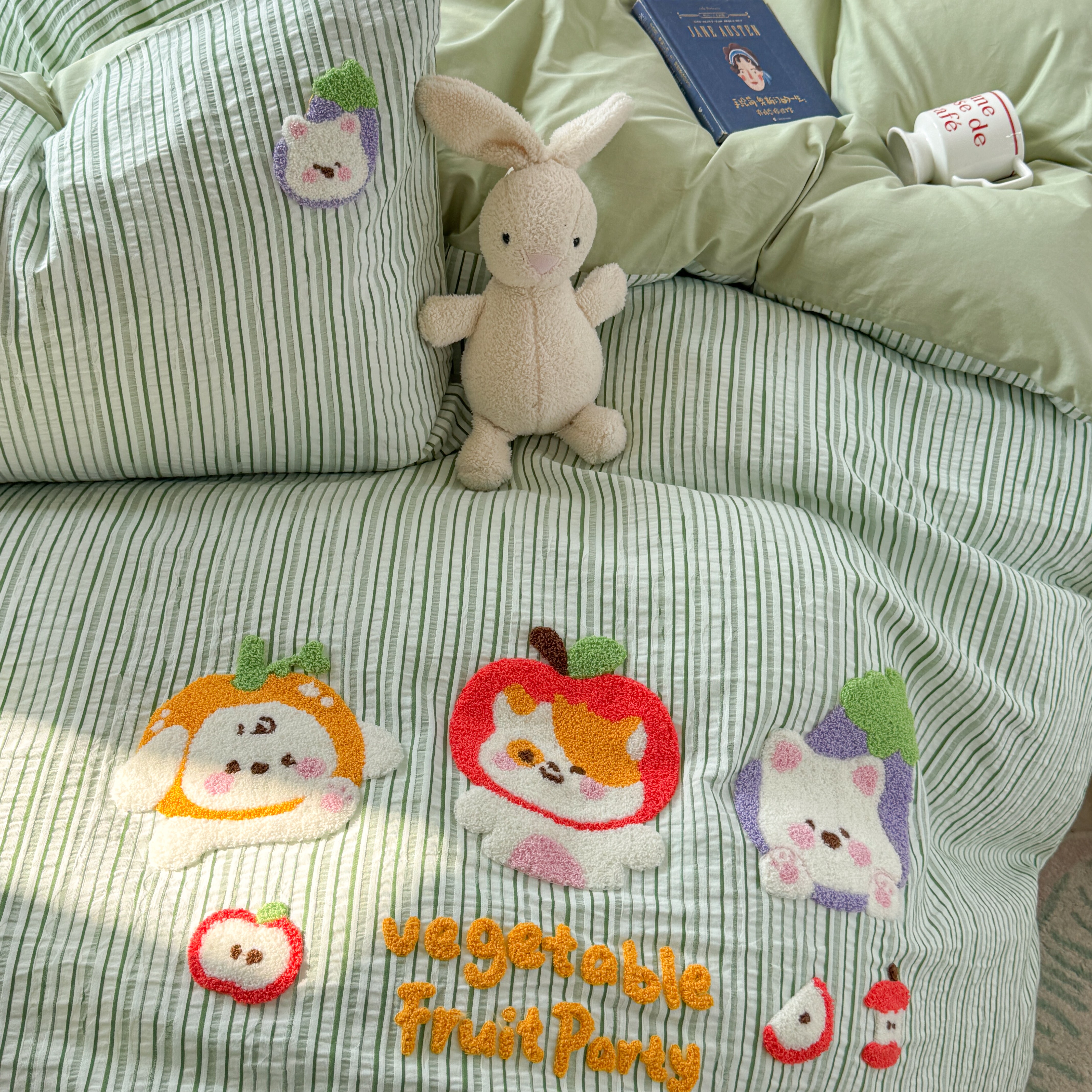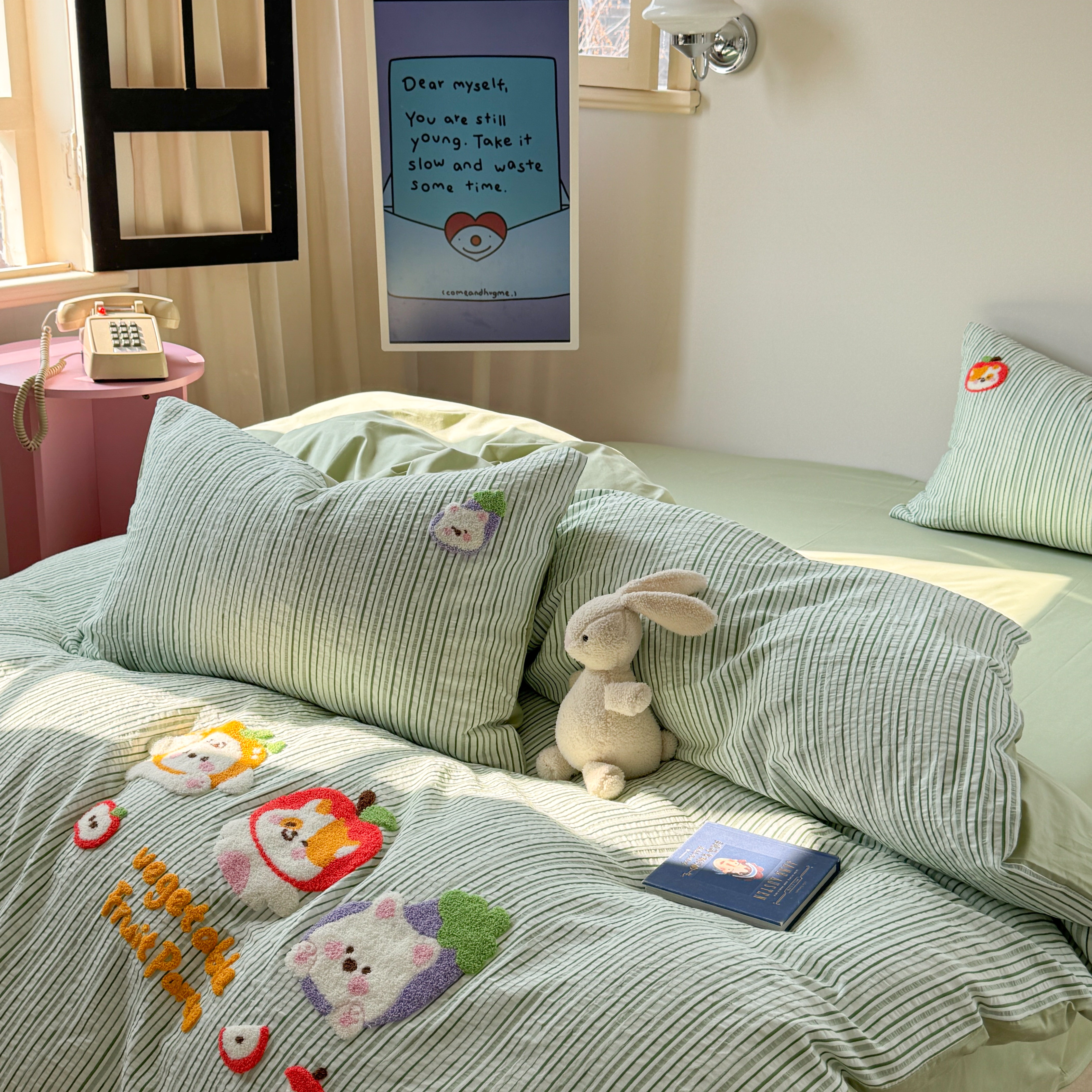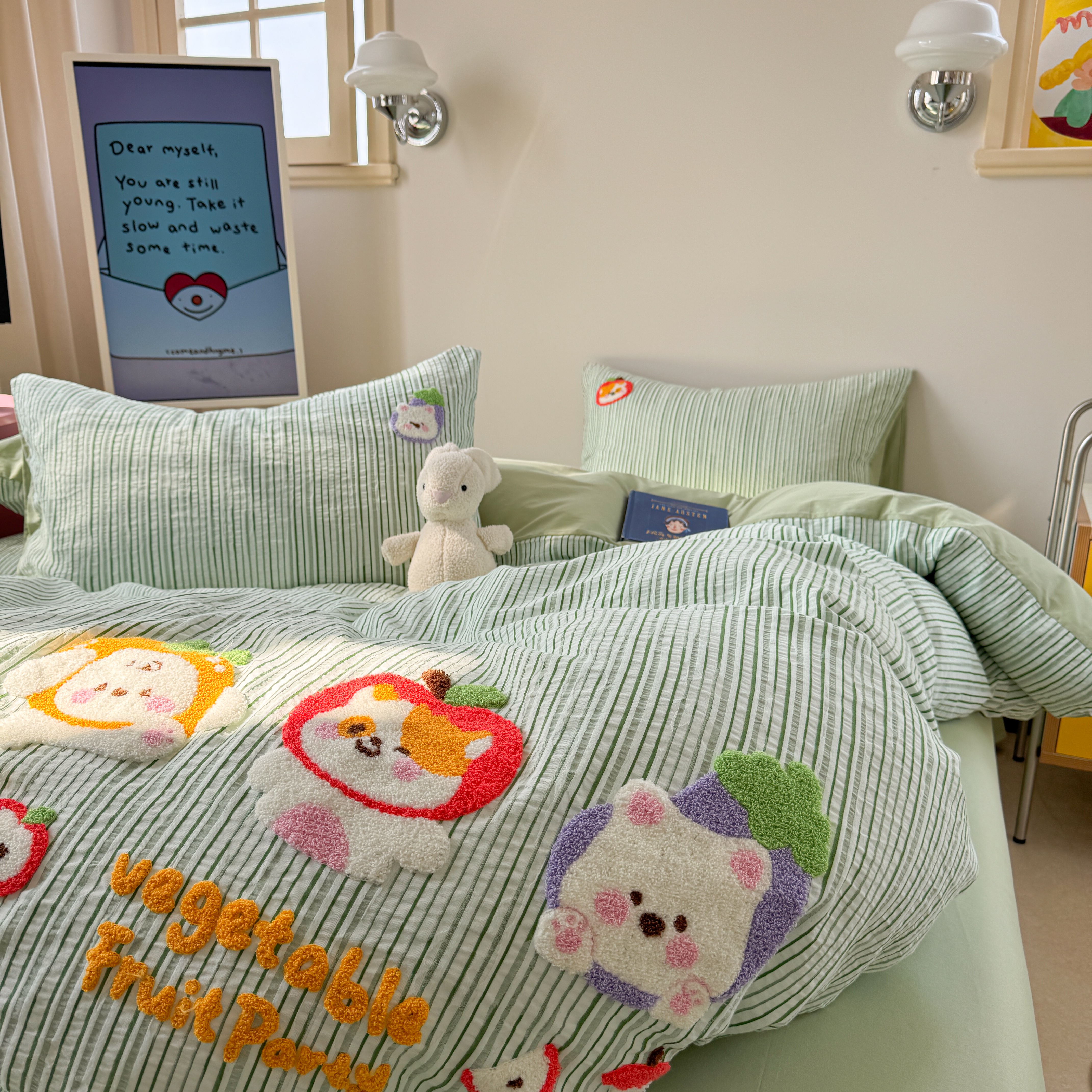 商品名称:柚子 2025春夏新款全棉纯棉提花毛巾绣四件套 蔬果派对