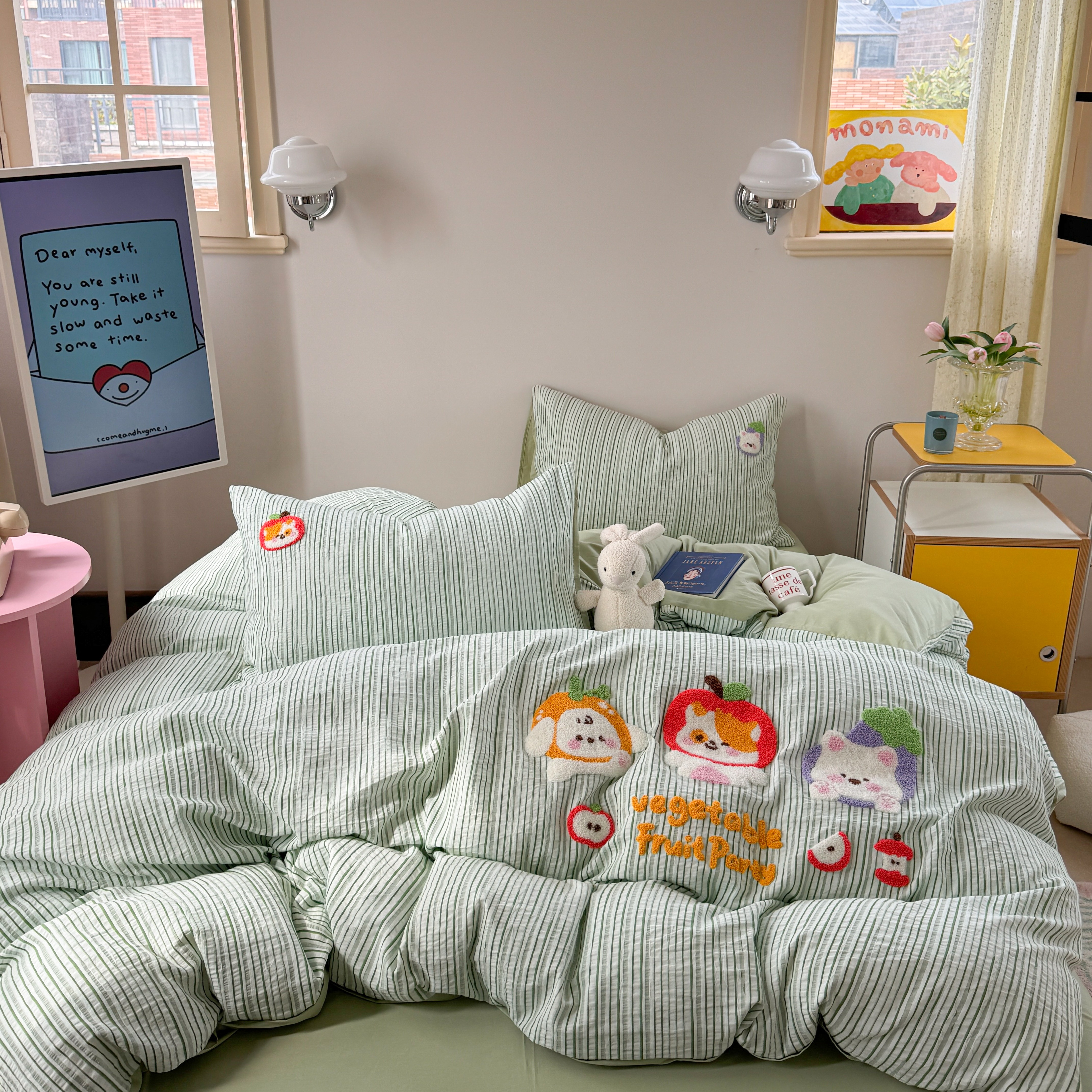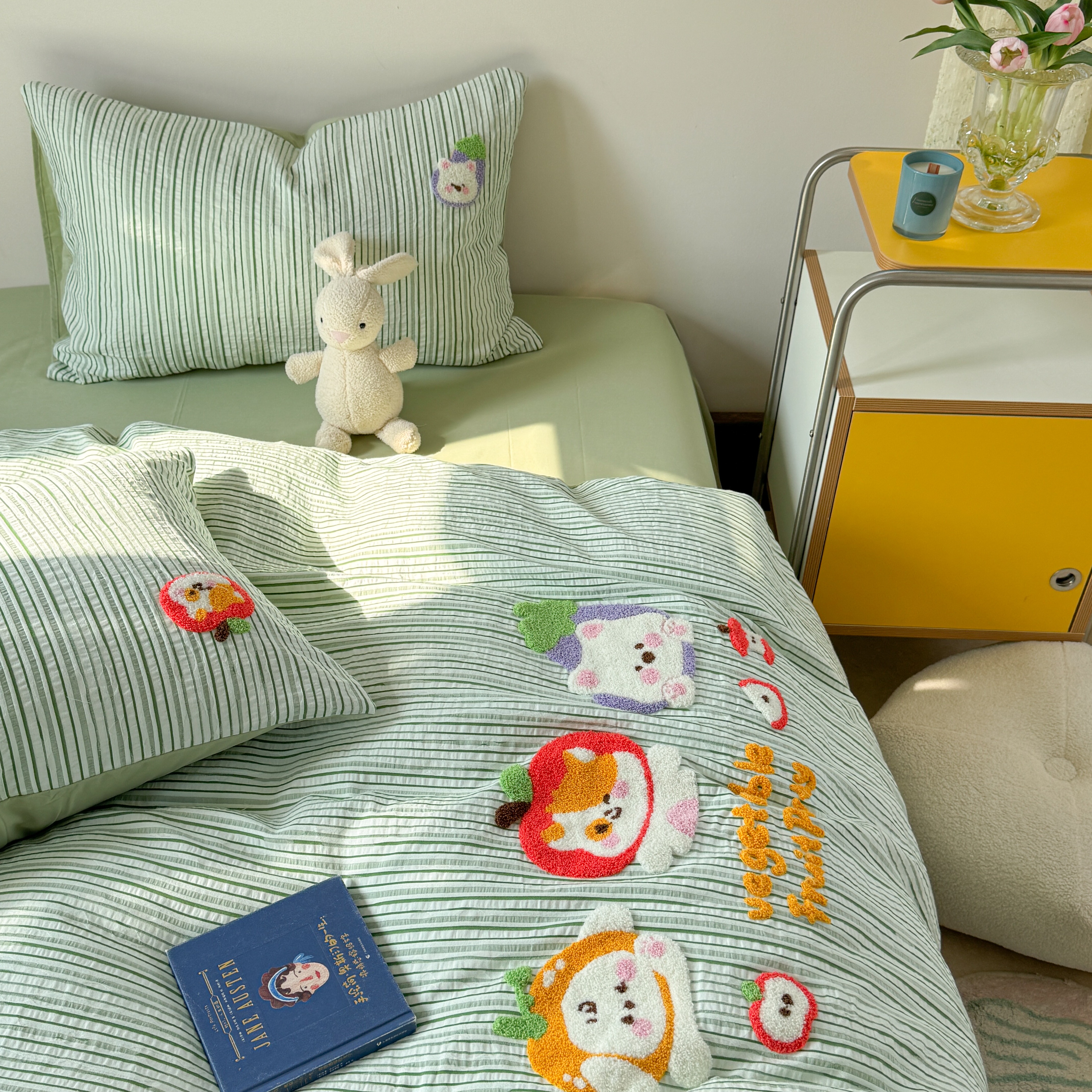 (总)柚子YOUTH 2026新款全棉纯棉水洗棉贴布绣四件套,蛋糕,树精灵,躺平猫,甜甜屋