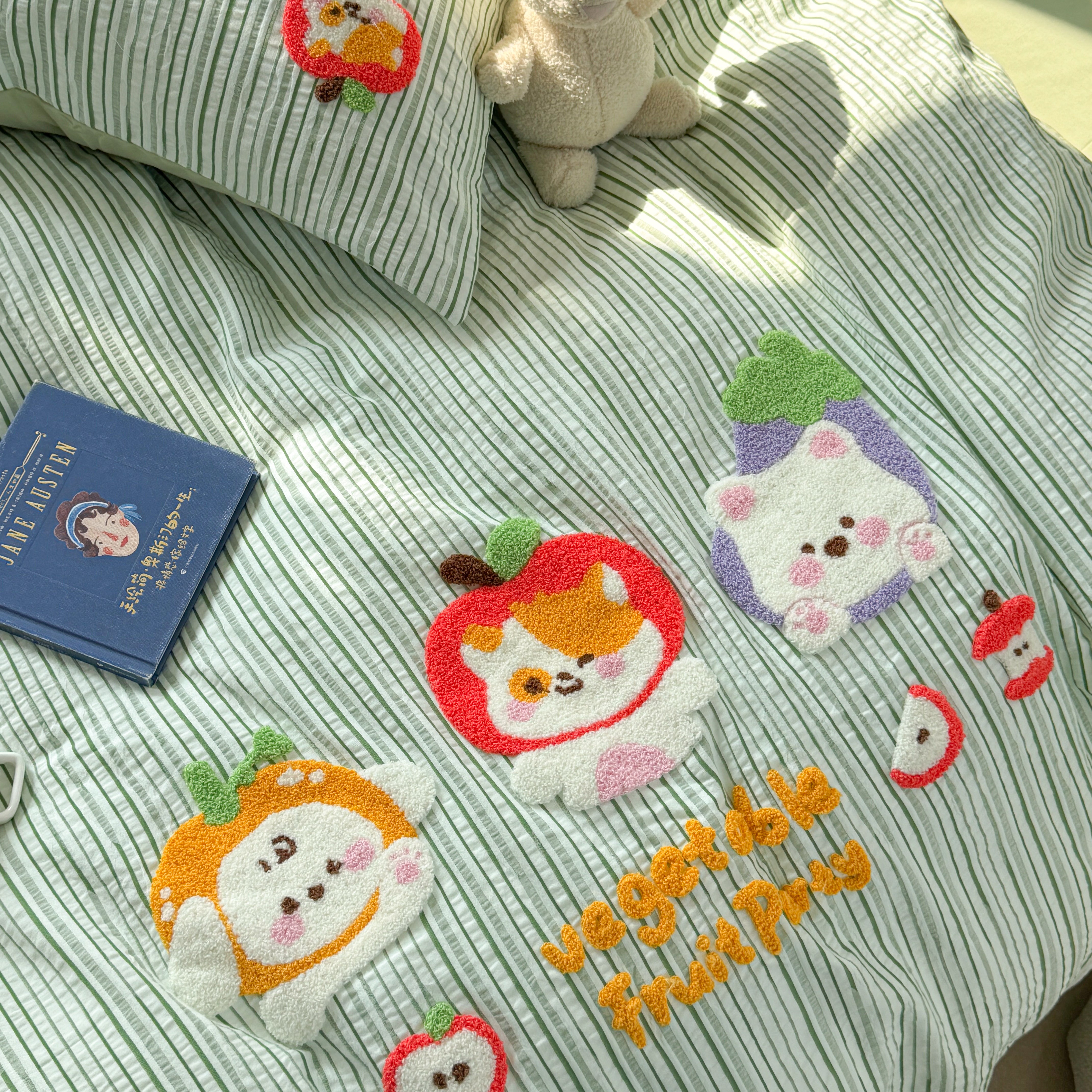 柚子 2025春夏新款全棉纯棉提花毛巾绣四件套 蔬果派对