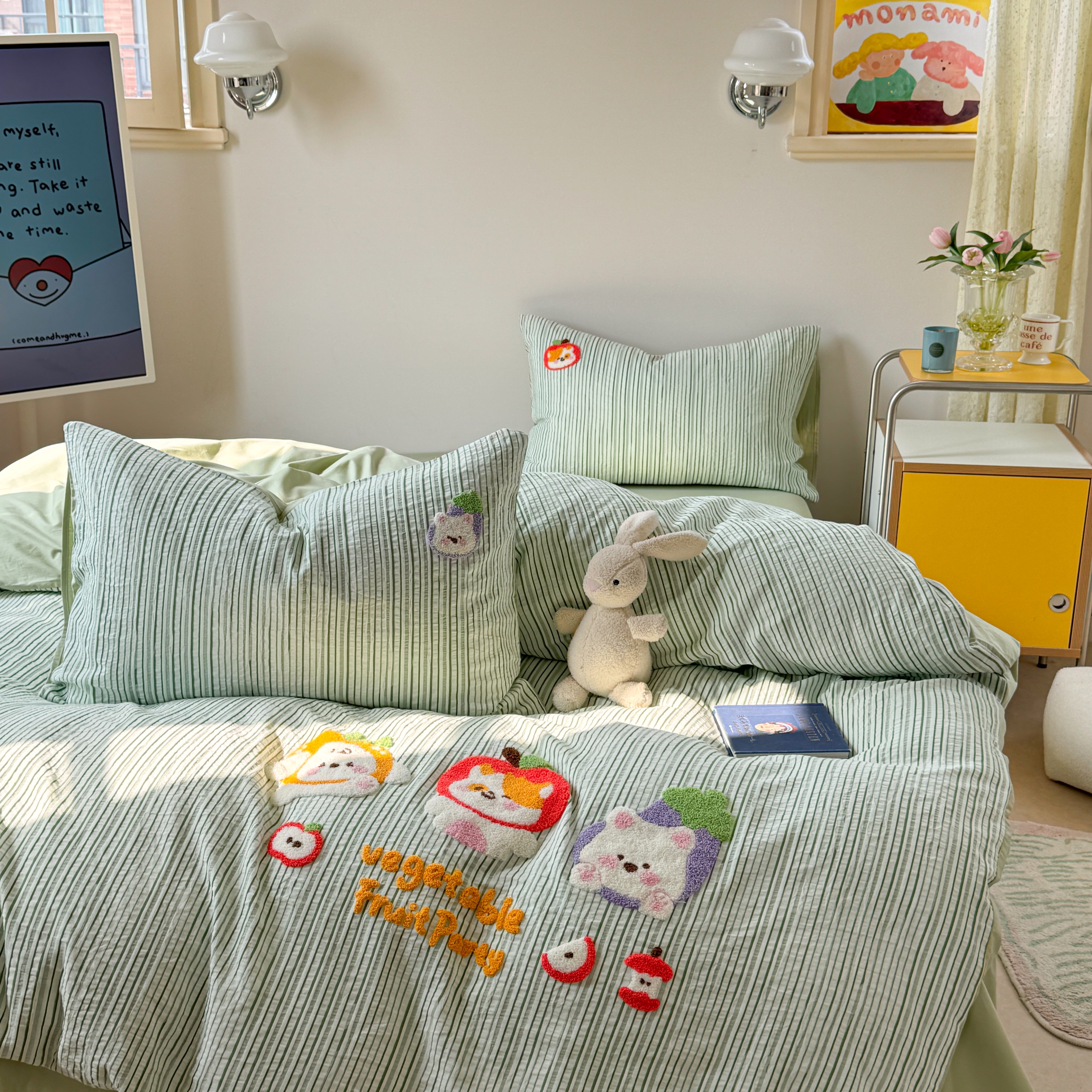 (总)柚子YOUTH 2025新款全棉双层纱贴布绣四件套,棒球熊猫,贝雷帽,冰淇淋小熊,格子玩偶,碎花小兔,小黑猫