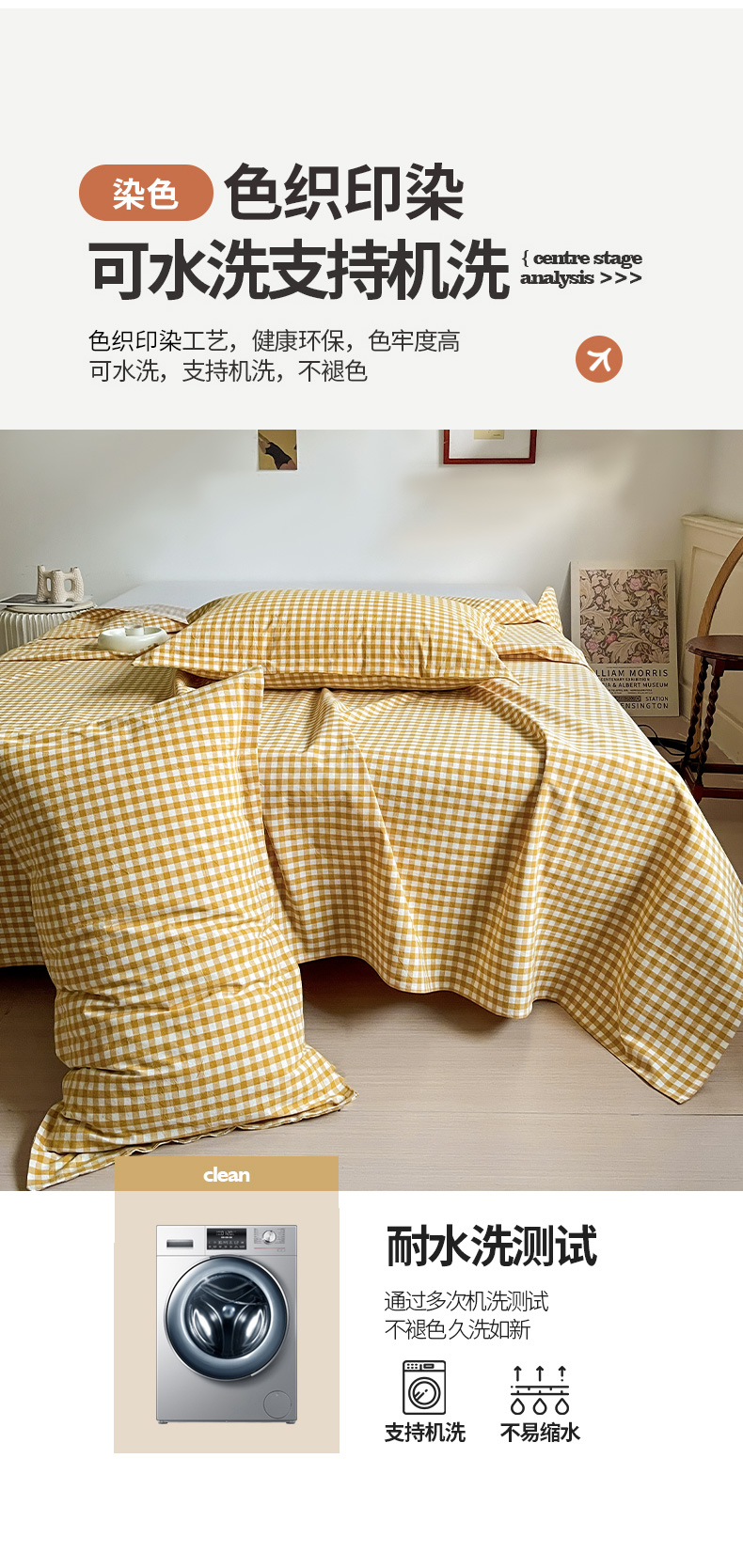 (总)久云居 2024新款全棉纯色防水床笠三件套床单三件套,本白,果绿,海棠粉,卡其,浅灰,优雅兰,正灰