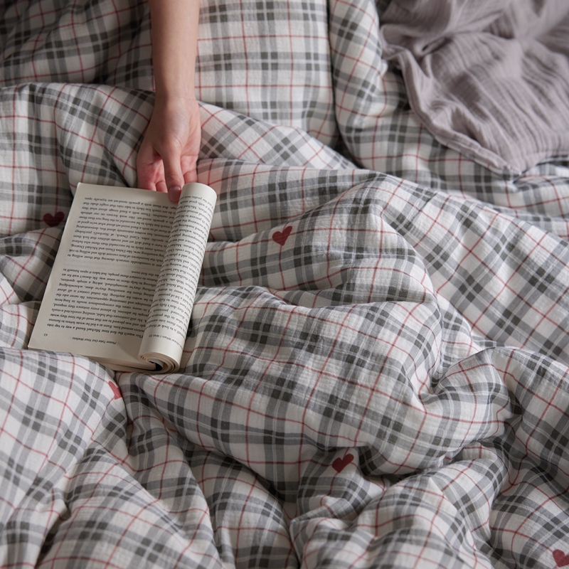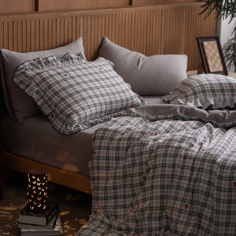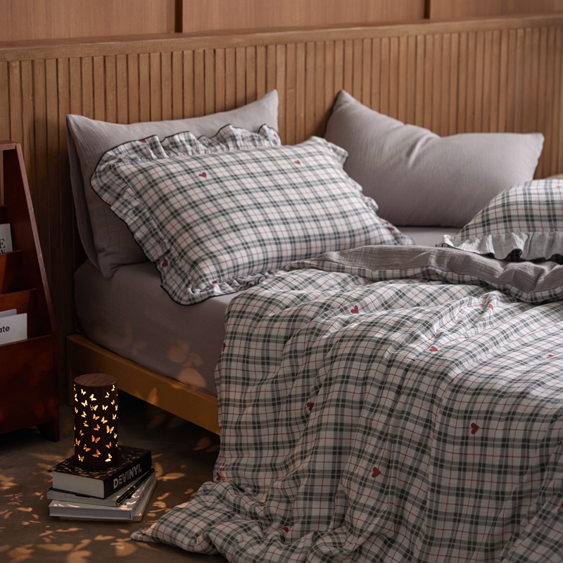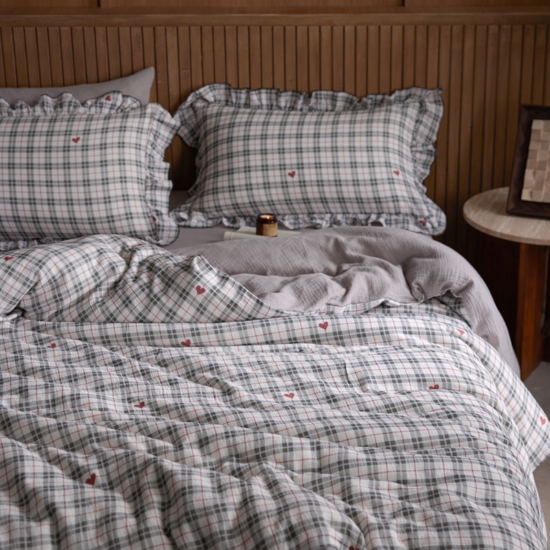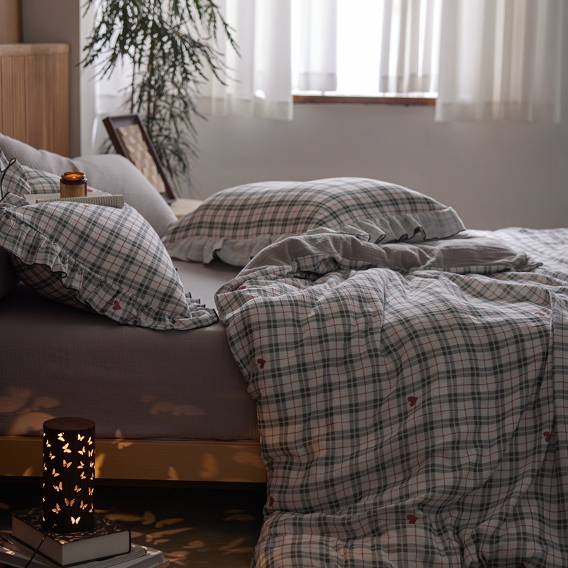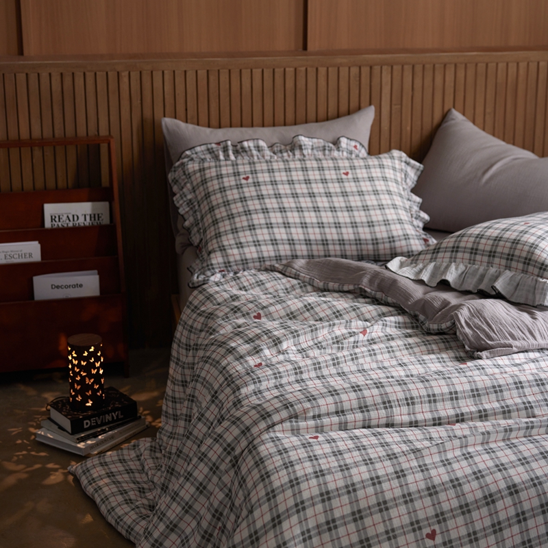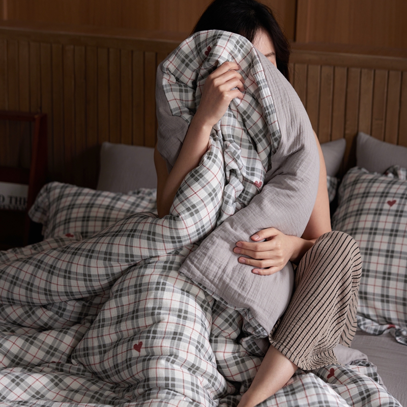 安莱生活 2025新款全棉精梳棉双层纱绉纱数码印花四件套 海派甜心-灰