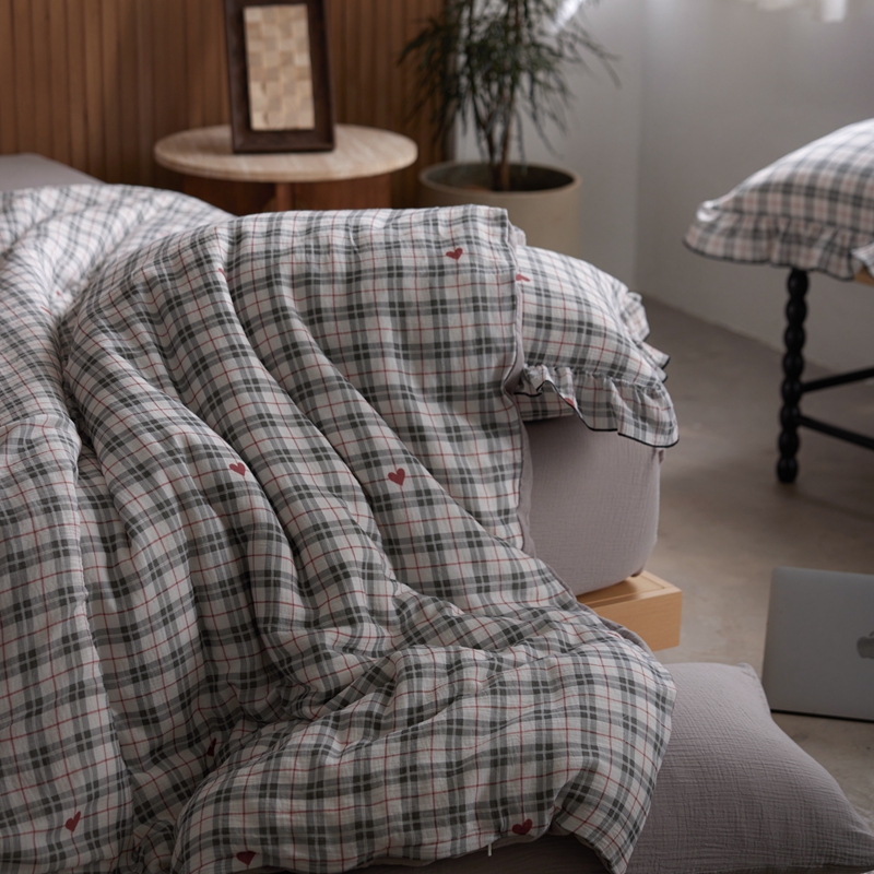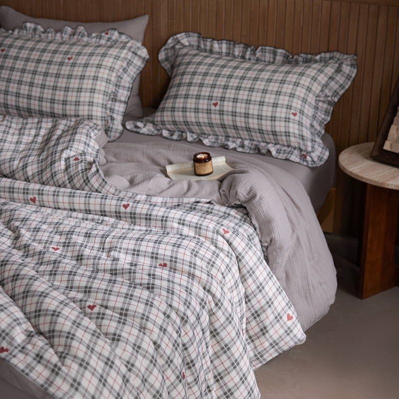 商品名称:安莱生活 2025新款全棉精梳棉双层纱绉纱数码印花四件套 海派甜心-灰