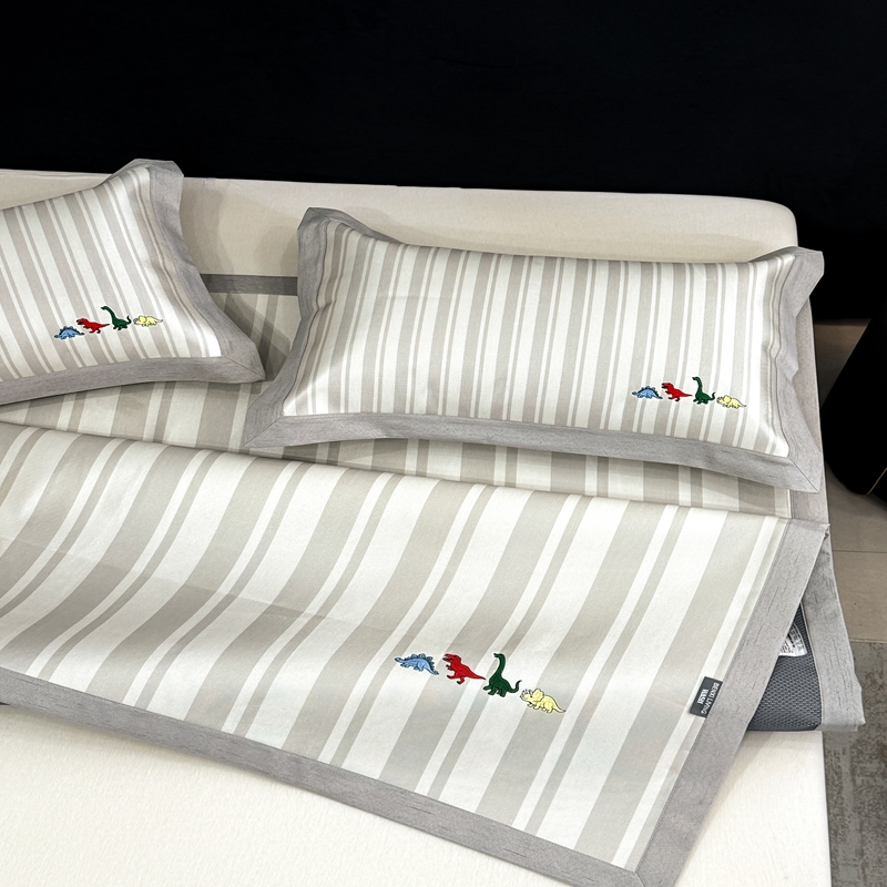商品名称:木希2025春夏新款可水洗冰丝席幻彩刺绣平席系列-场景二 小小恐龙