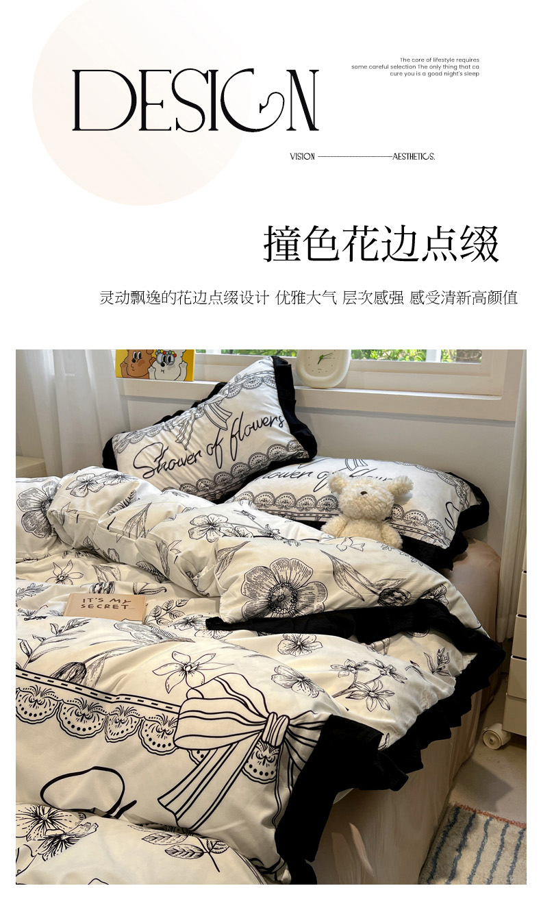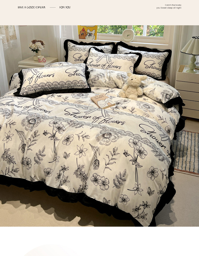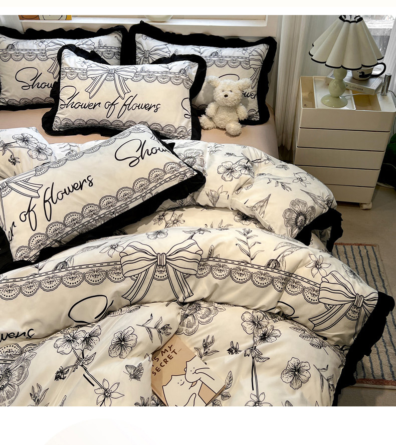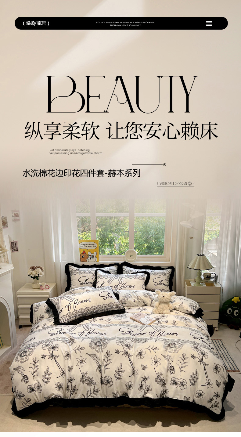 当前位置: 91家纺网 > 商品网购 > 床品套件 > 四件套 > 水洗棉四件套 > 花伞家居 2025新款赫本黑色大花边水洗棉印花四件套(提供买家秀) 赫本-花路