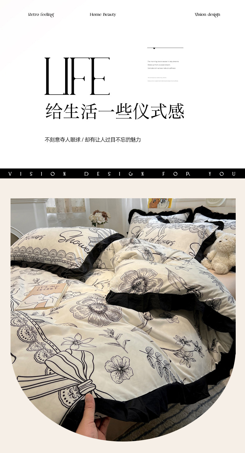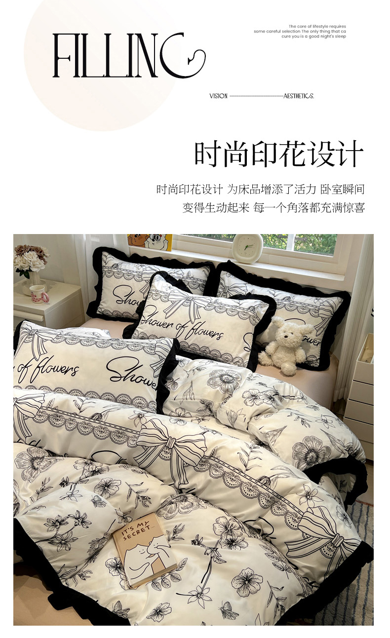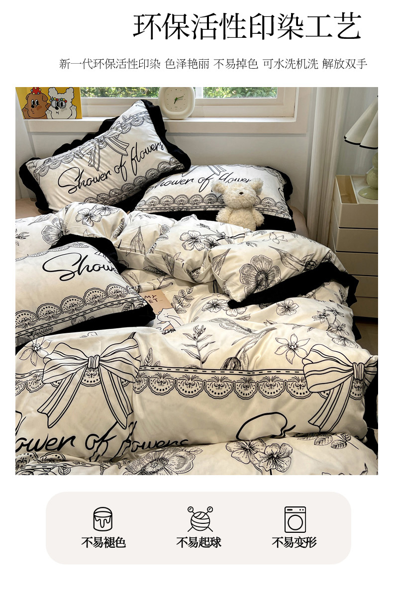 当前位置: 91家纺网 > 商品网购 > 床品套件 > 四件套 > 水洗棉四件套 > 花伞家居 2025新款赫本黑色大花边水洗棉印花四件套(提供买家秀) 赫本-花路