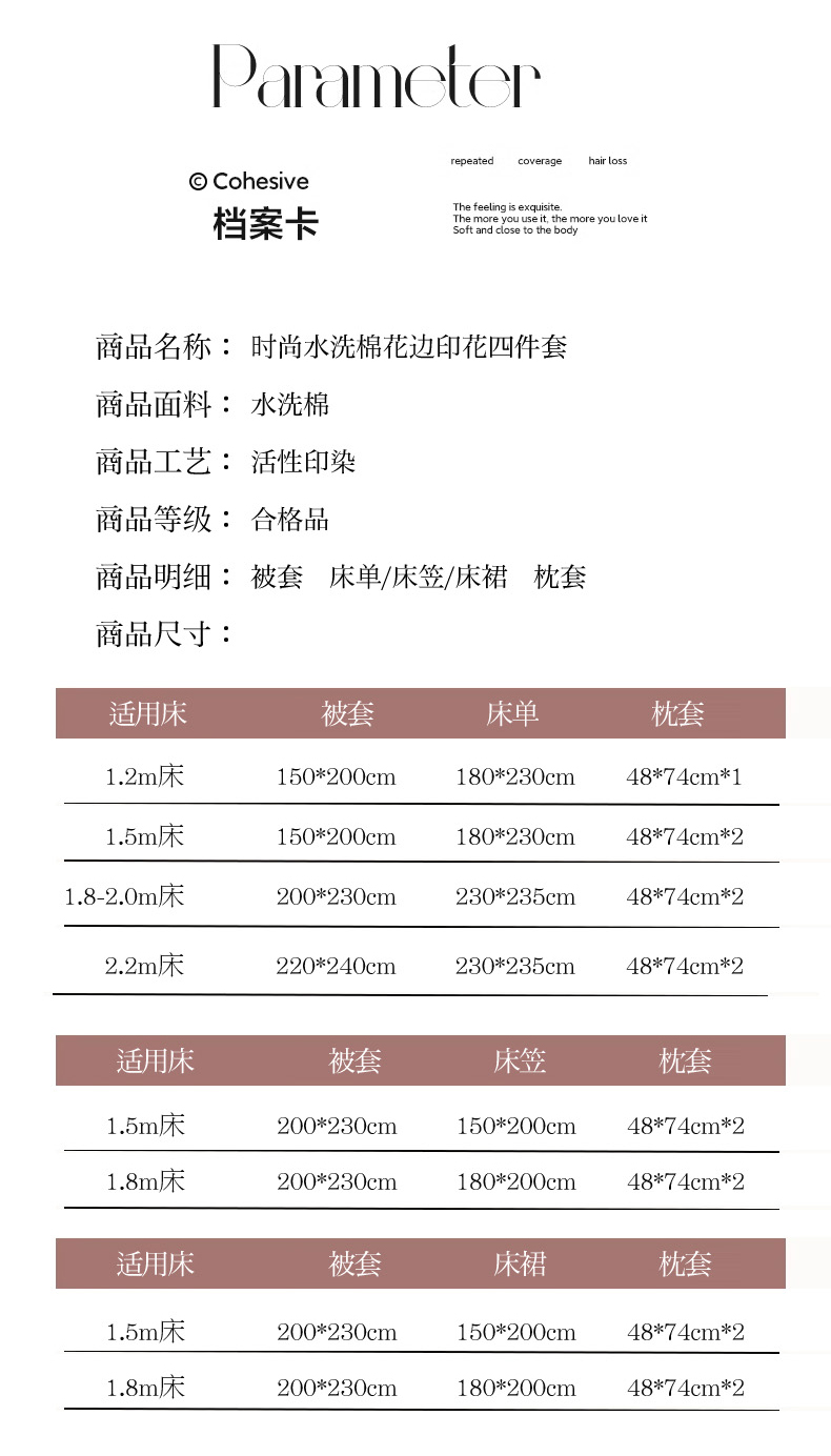 床单款-1.5M床(被套150*200床单180*230枕套48*74*2) | ¥50.00 |
