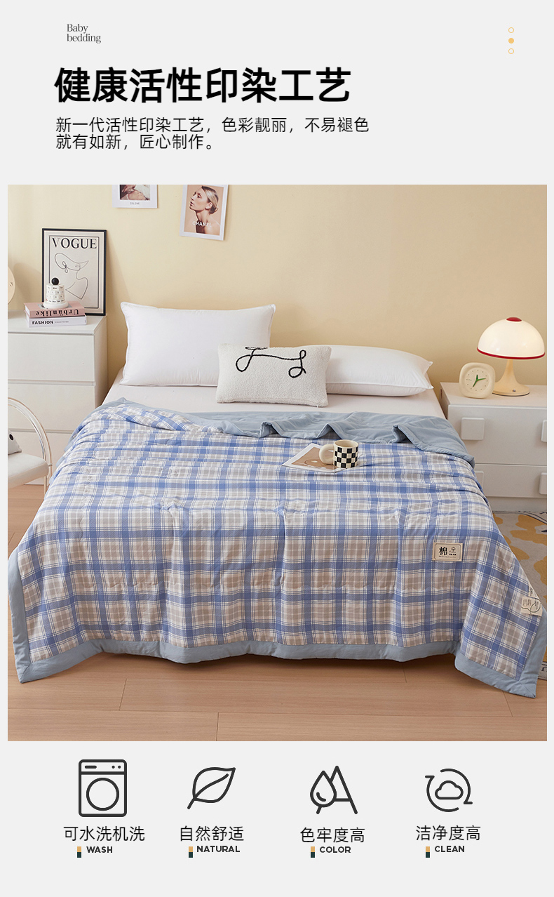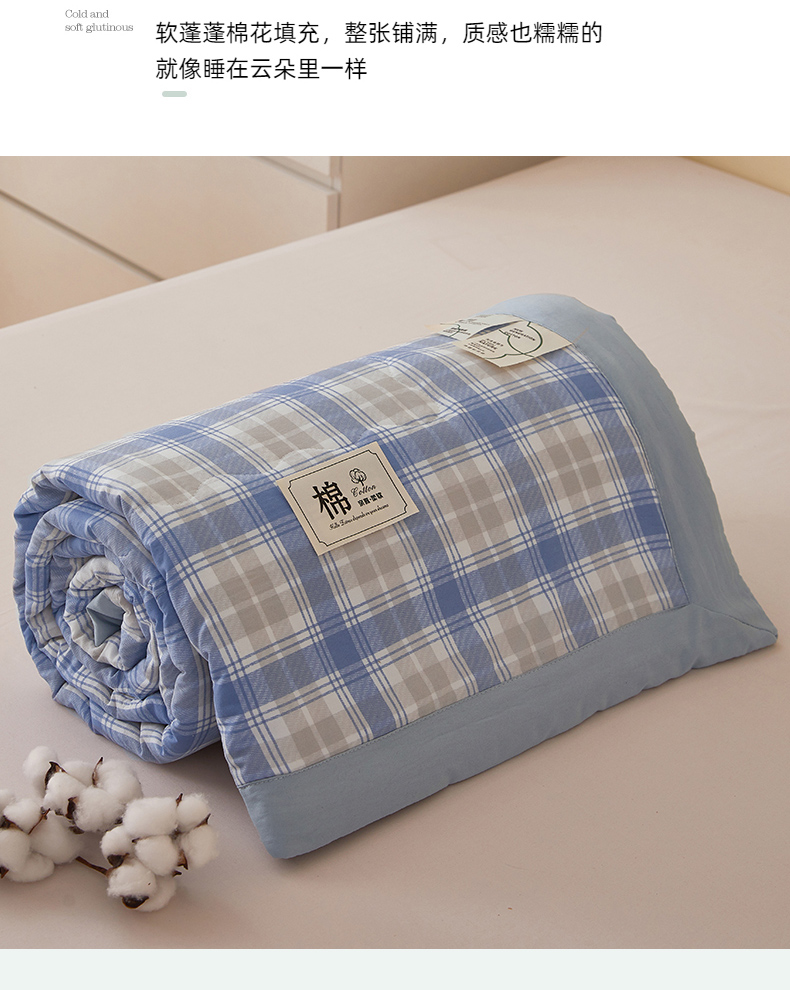 简冠家纺 2025新款水洗棉新疆棉花夏被 简析蓝