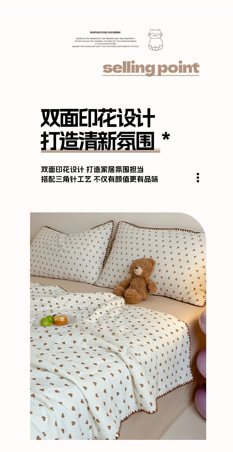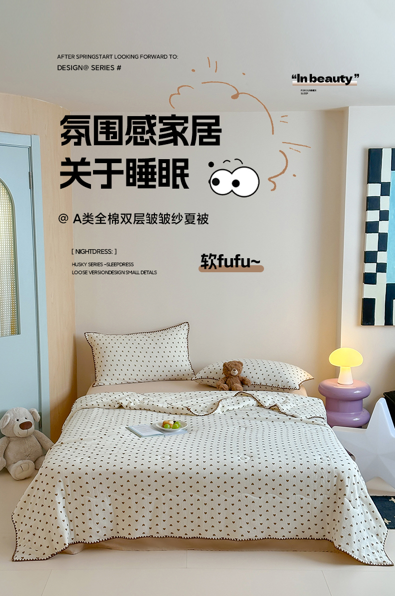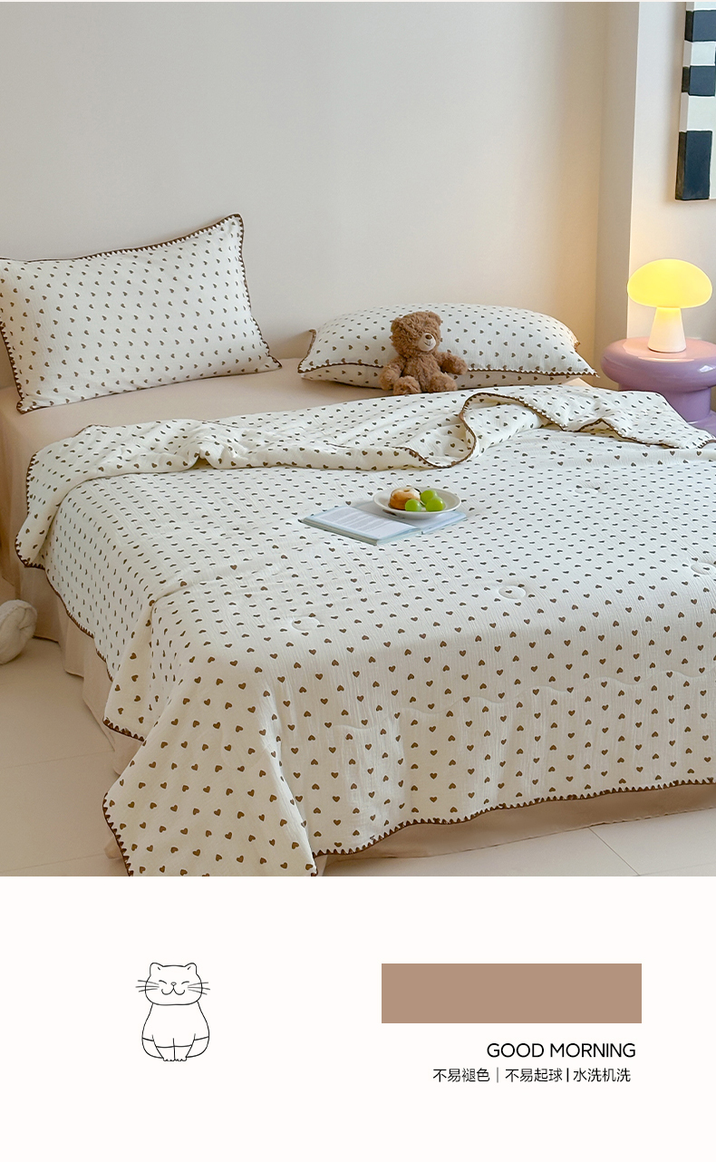 • 91家纺网 家纺一手货源 找家纺 三朵家纺 2025春夏新款全棉纯棉双层绉绉纱三角针夏被夏凉被空调被 心愿
