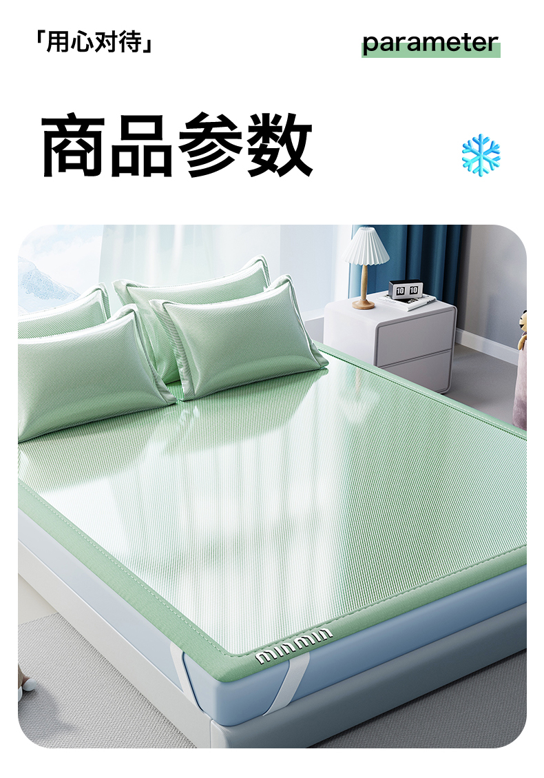 商品名称:星座家纺 2025新款斜纹冰丝凉席三件套-绣花款 柠檬绿