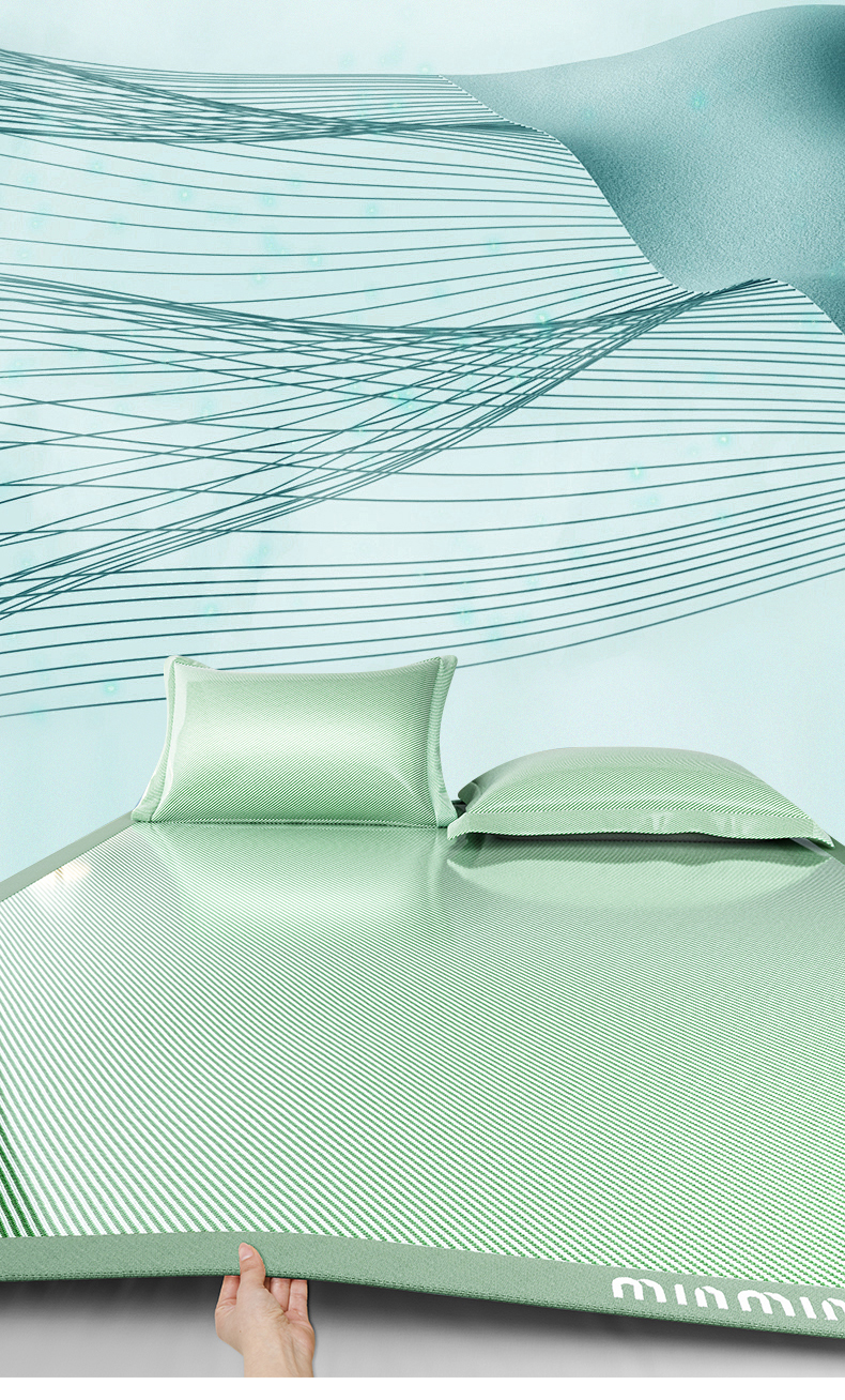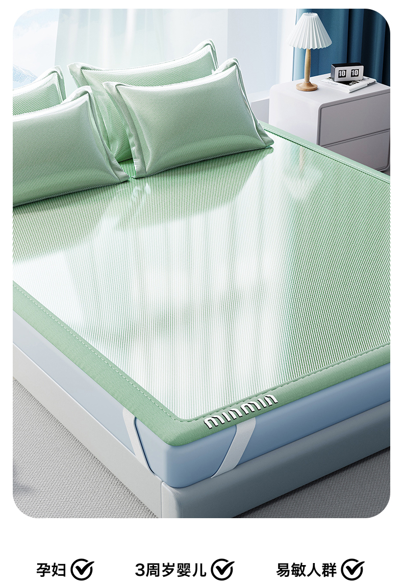 星座家纺 2025新款斜纹冰丝凉席三件套-绣花款 柠檬绿