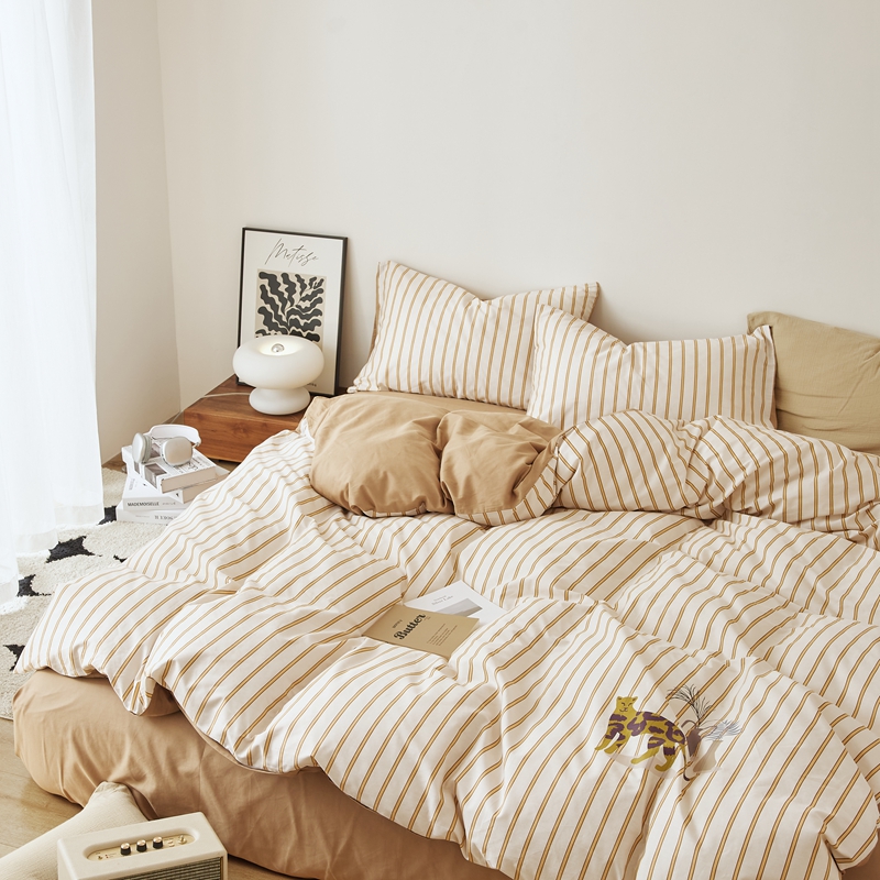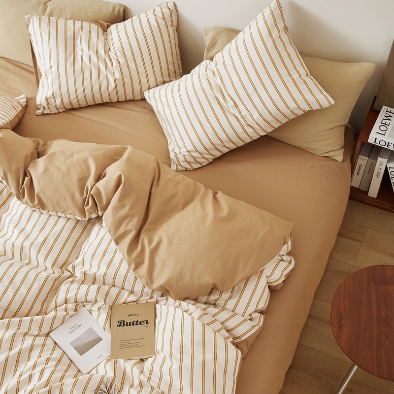 (总)原研家居 2025新款棉麻色织条纹系列四件套,棉麻黄条,棉麻绿条,棉麻粉条