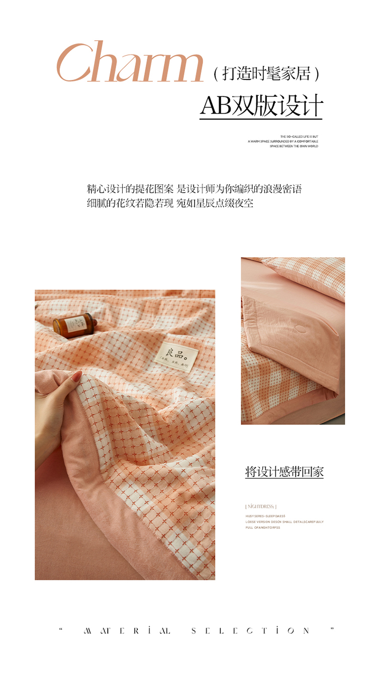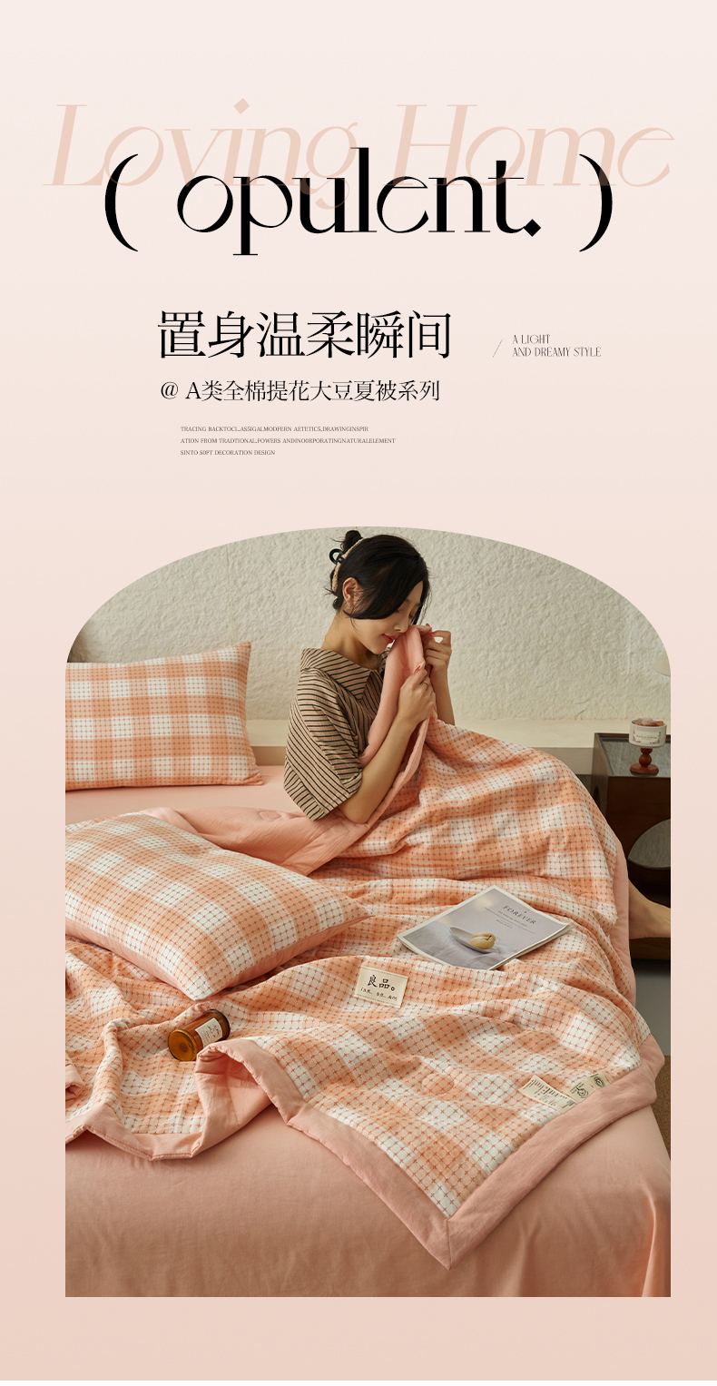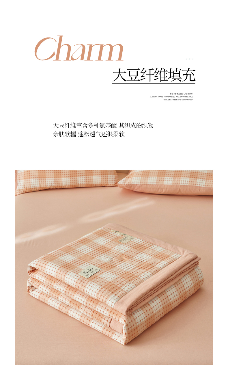 当前位置: 91家纺网 > 商品网购 > 床品套件 > 四件套 > 夏被四件套 > 简如 2025新款A类全棉提花大豆夏被四件套-米格 米格-橘