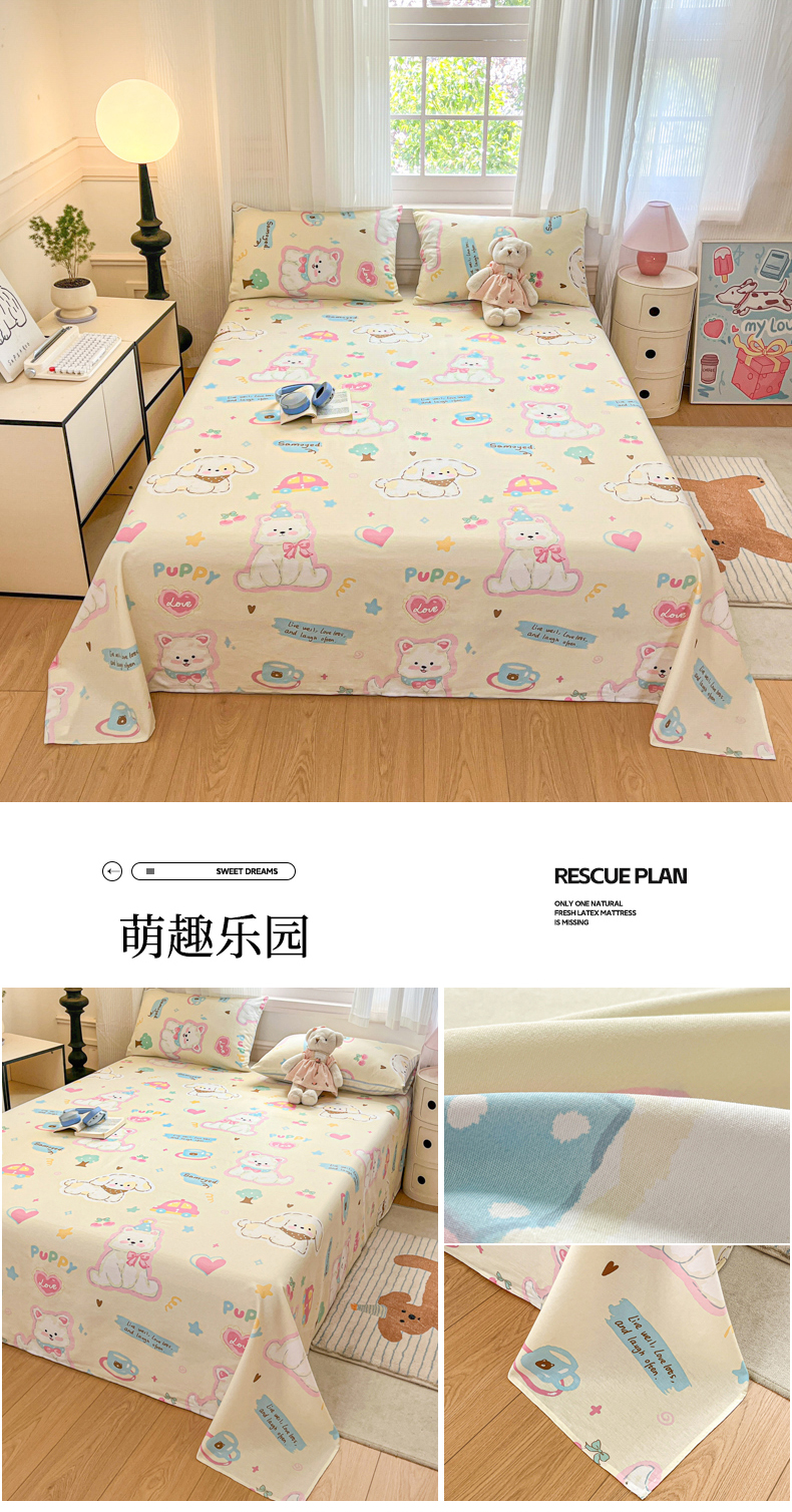 商品名称:Sweet dreams甜梦 2025新款全棉纯棉小清新印花床单单品单床单床单单件 格子狗狗