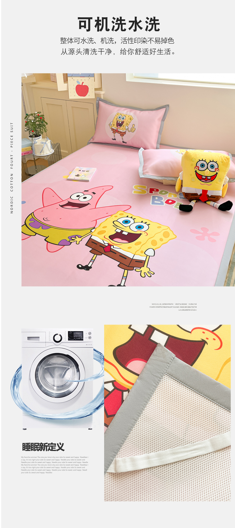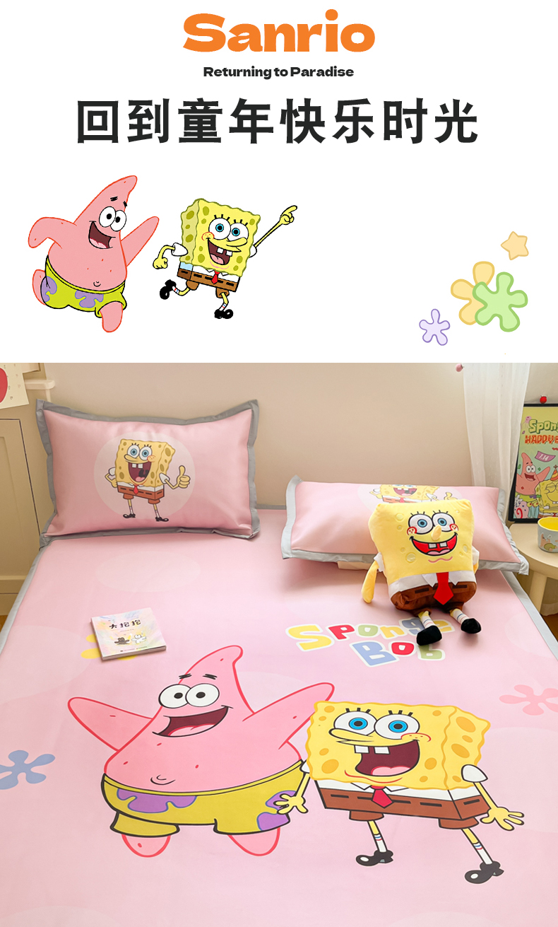 商品名称:金爱家 2025新款冰丝凉席海绵宝宝 冰丝-粉粉海绵宝宝