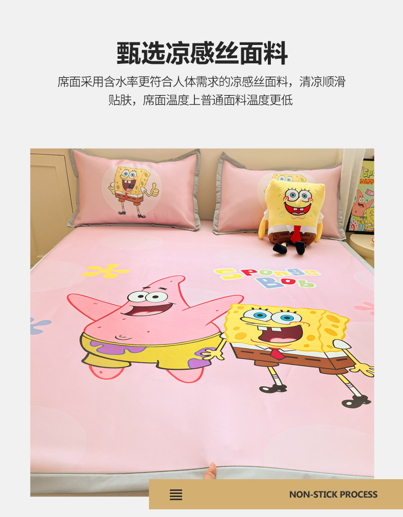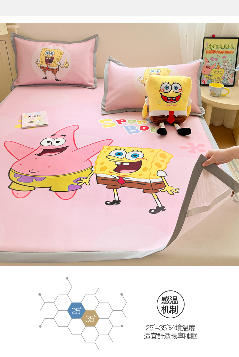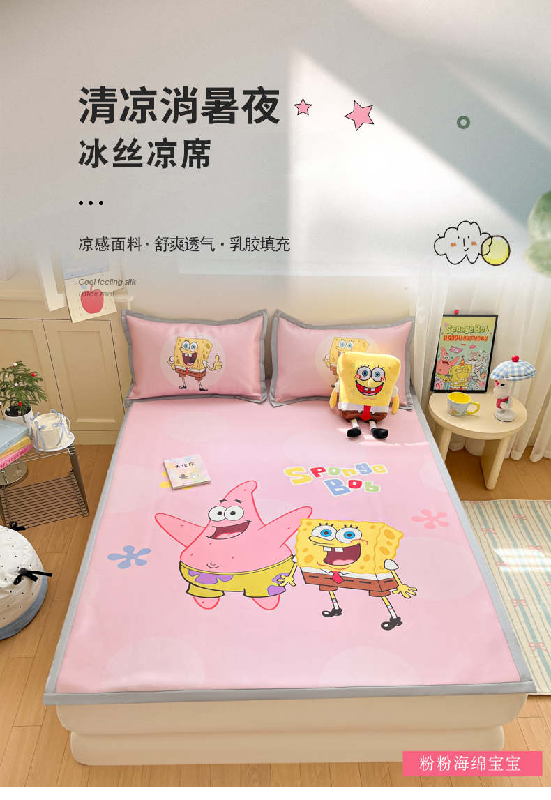 金爱家 2025新款冰丝凉席海绵宝宝 冰丝-粉粉海绵宝宝