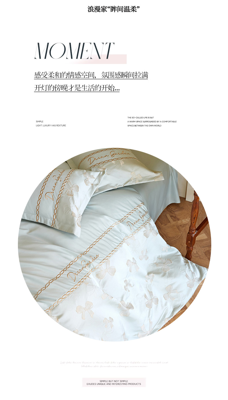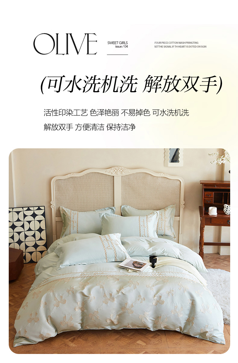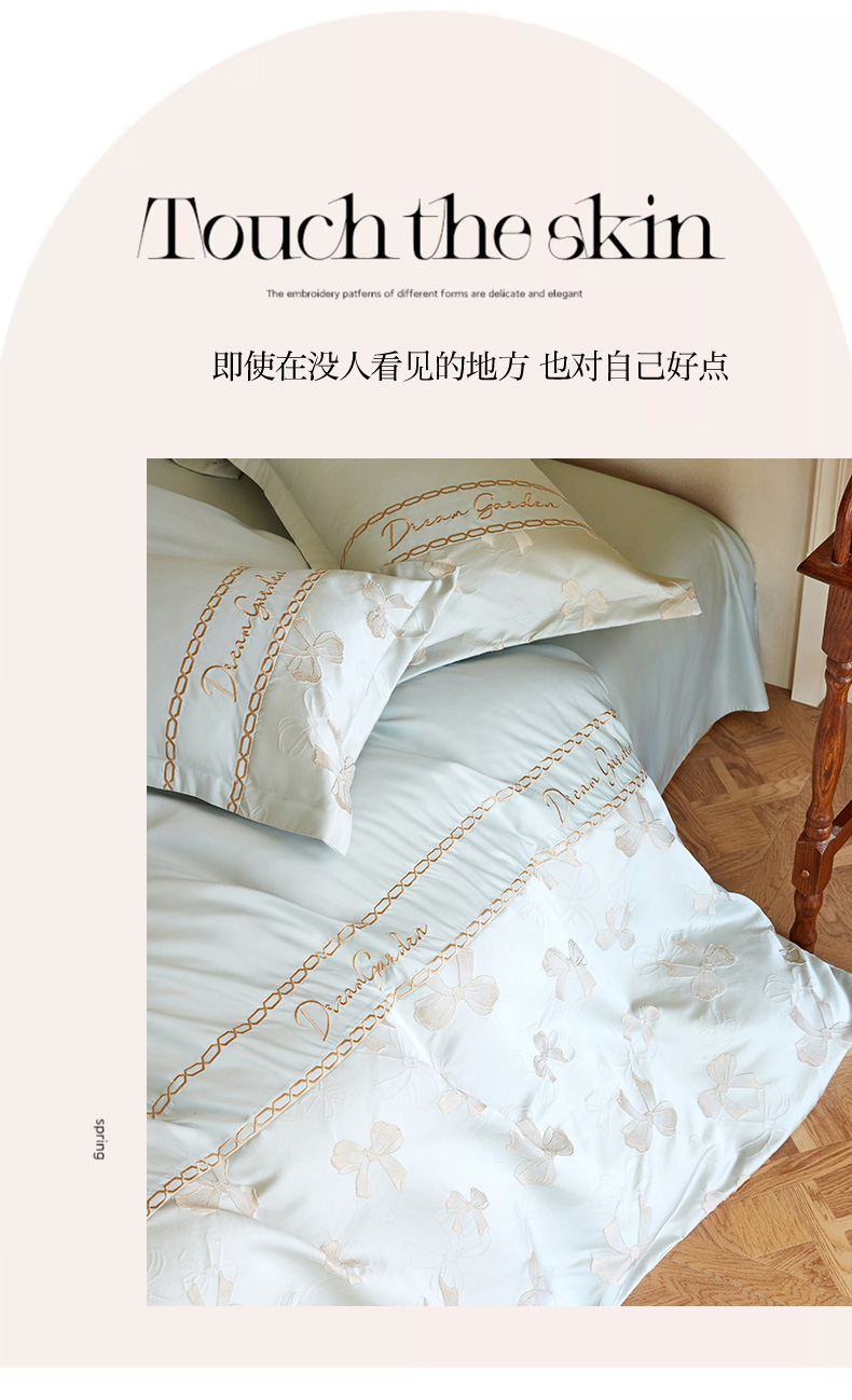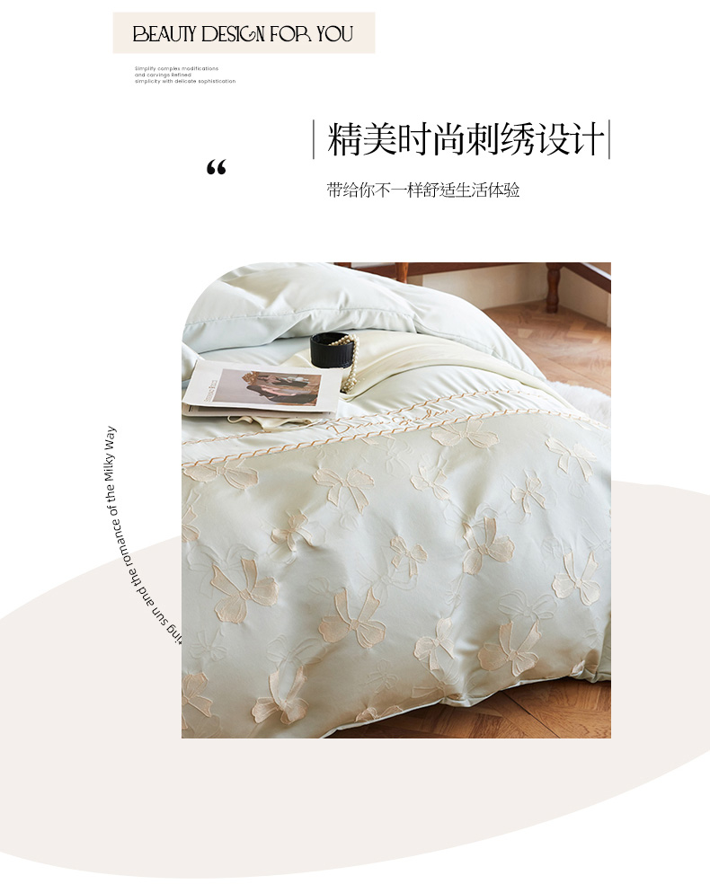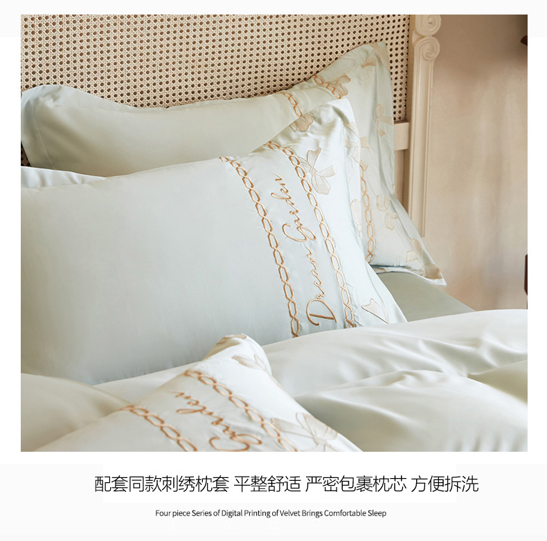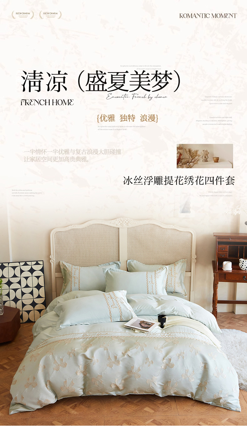 商品名称:菲儿2025新款冰丝浮雕提花绣花四件套 蝴蝶结-抹茶绿