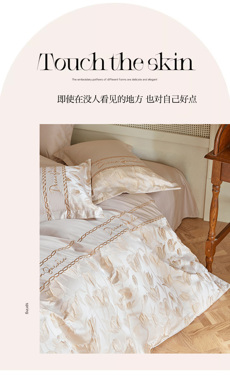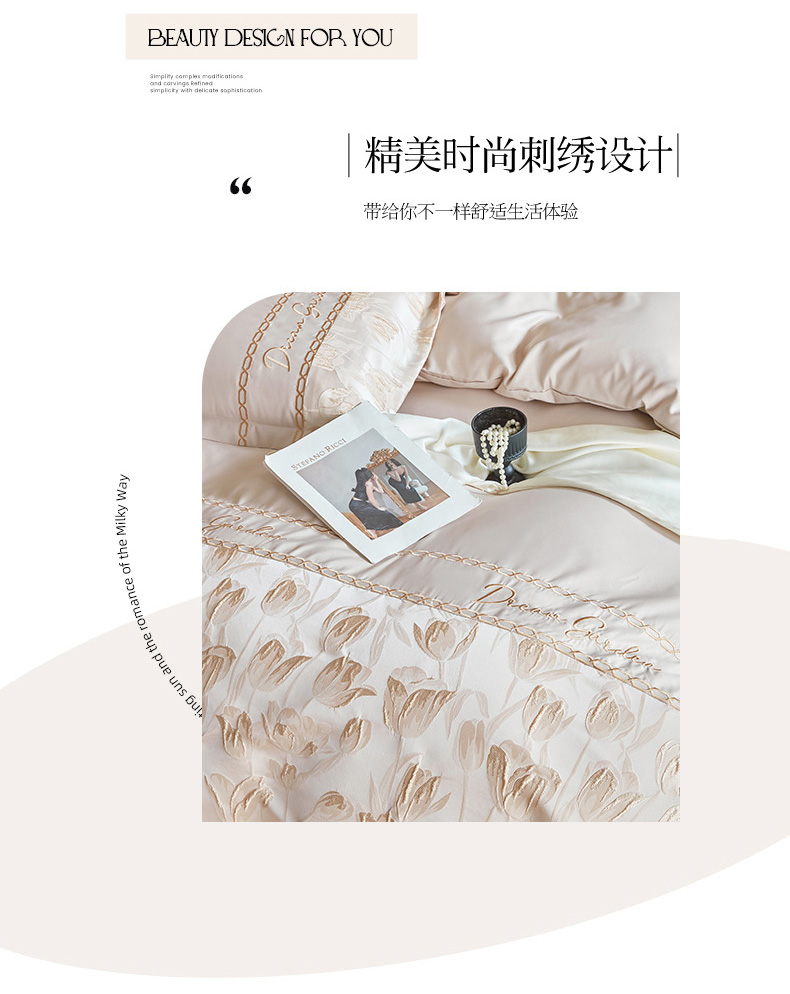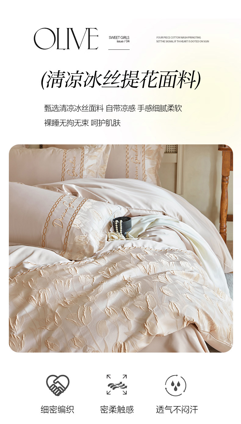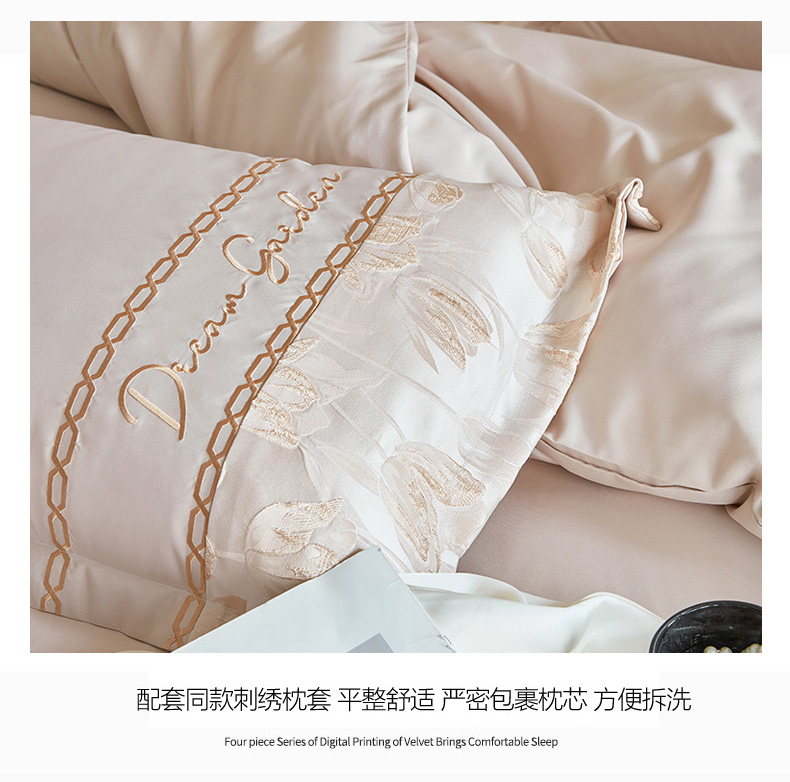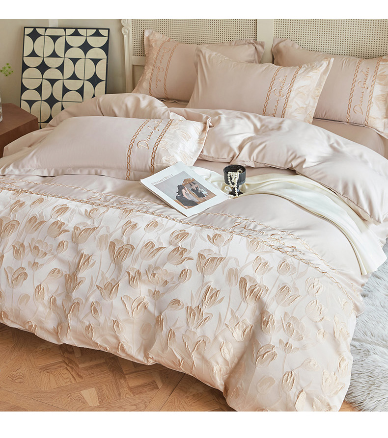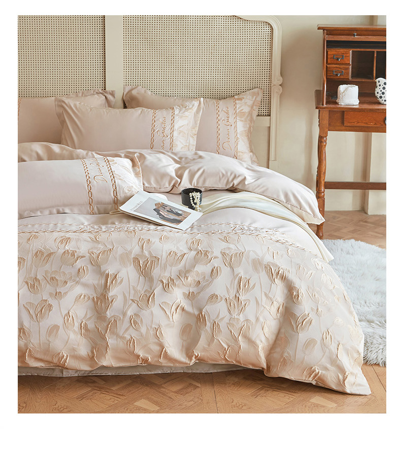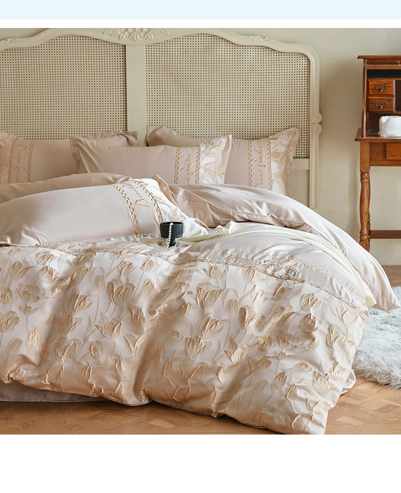 商品名称:菲儿2025新款冰丝浮雕提花绣花四件套 郁金香-香槟