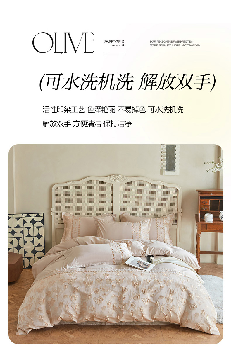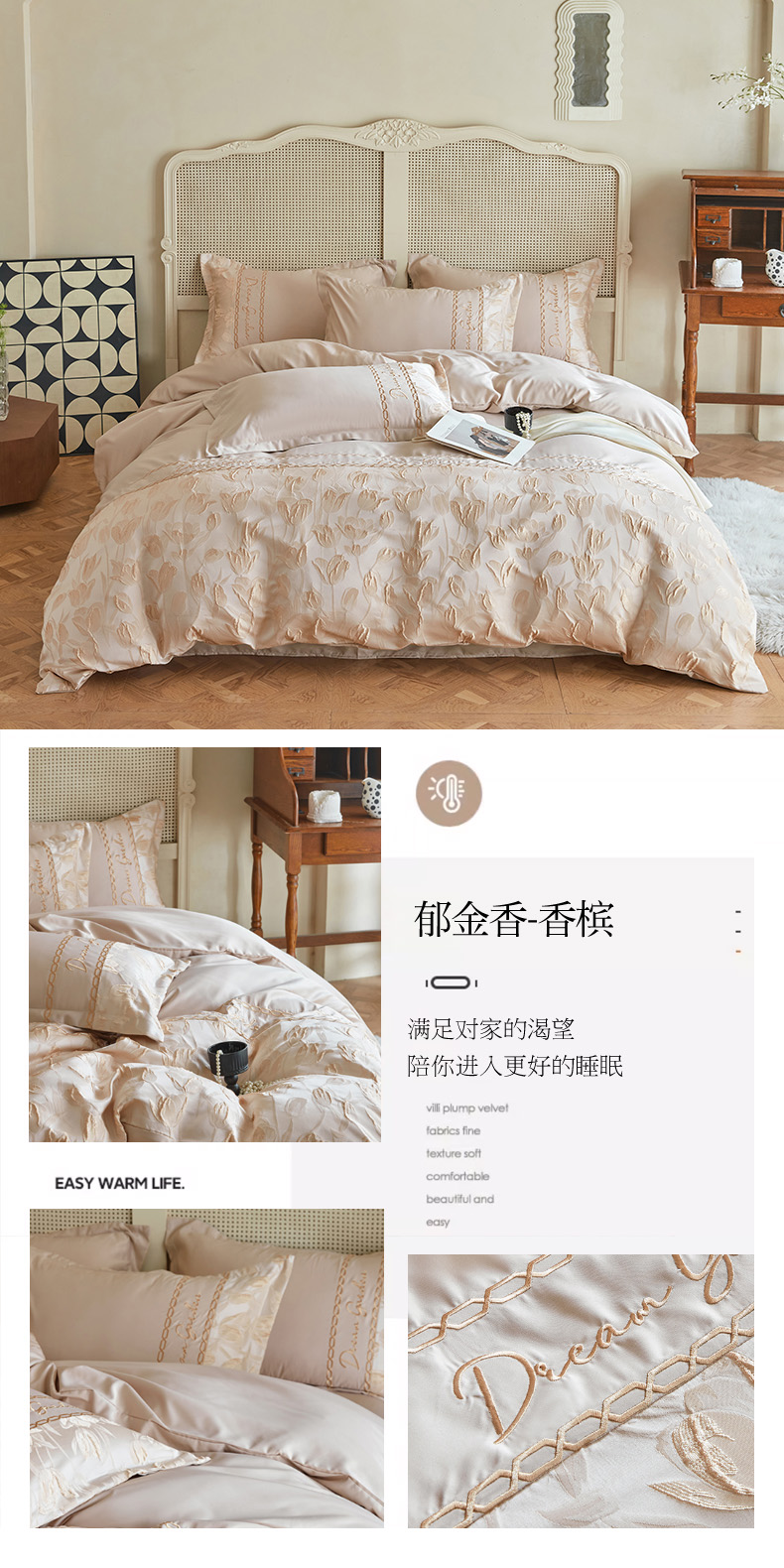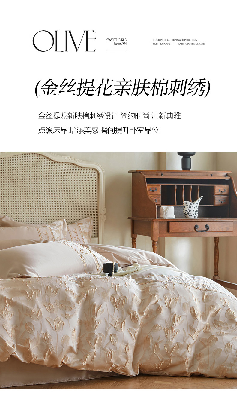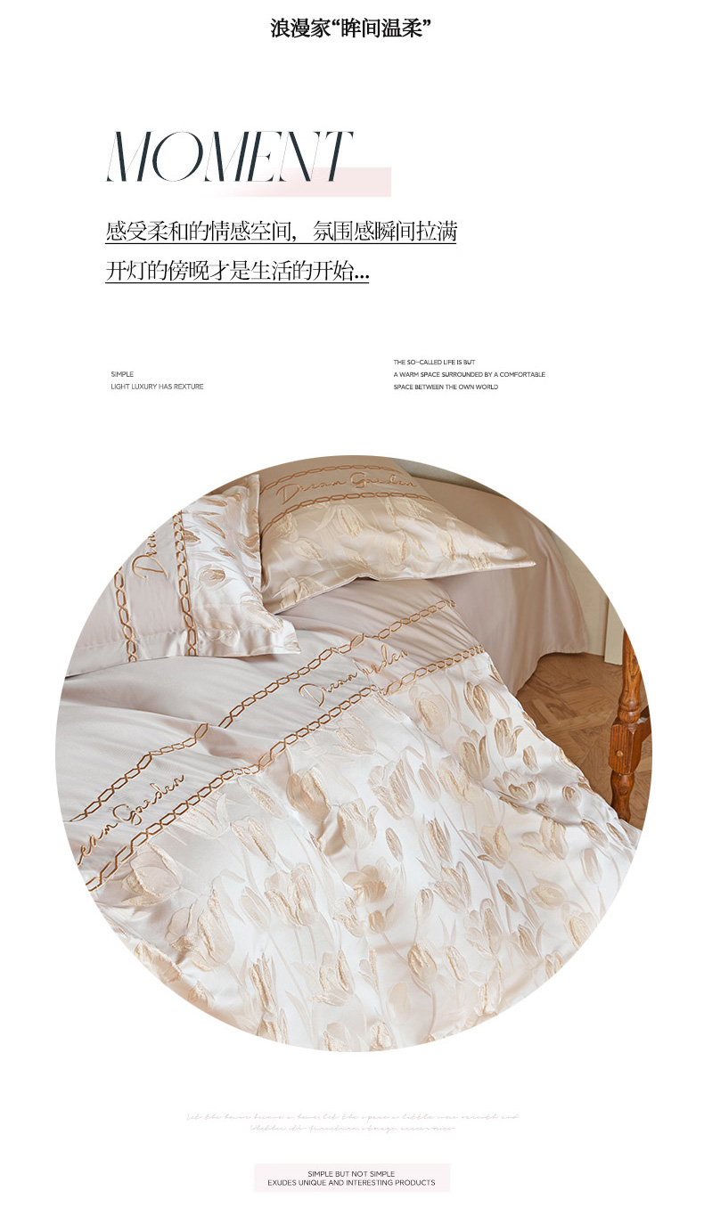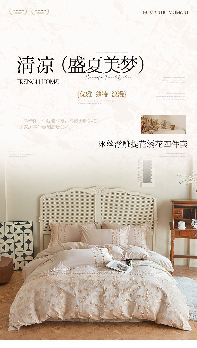 商品名称:菲儿2025新款冰丝浮雕提花绣花四件套 郁金香-香槟