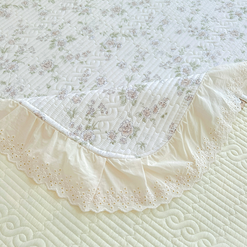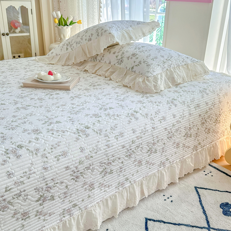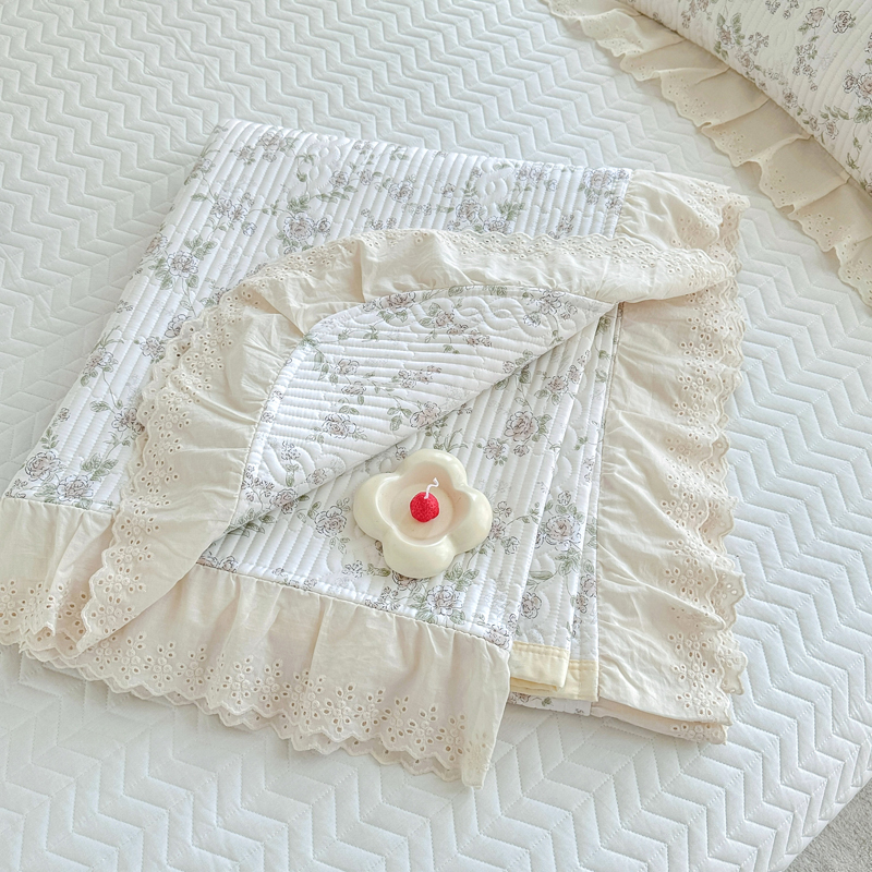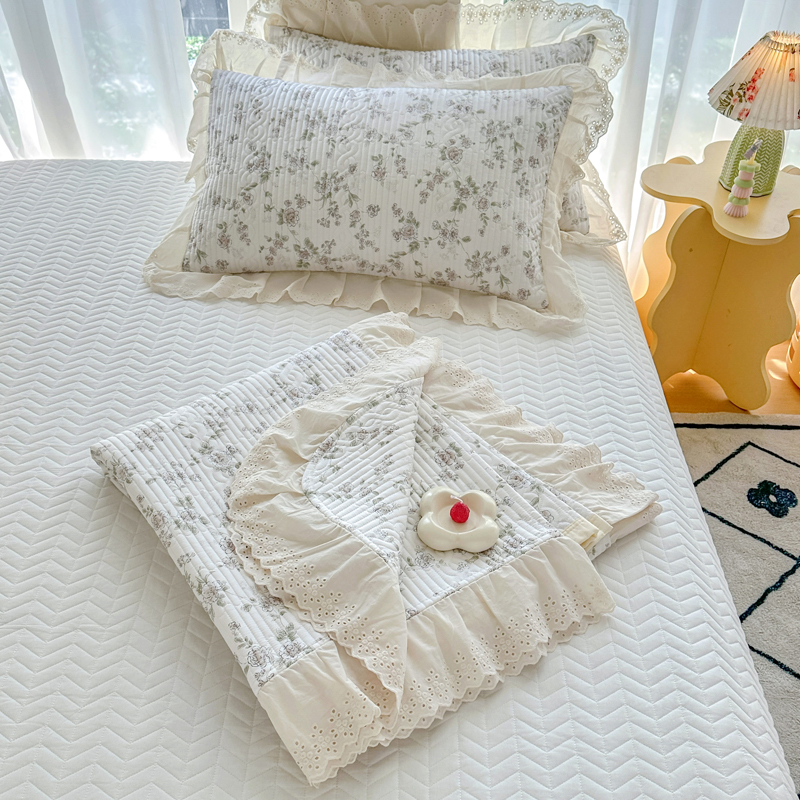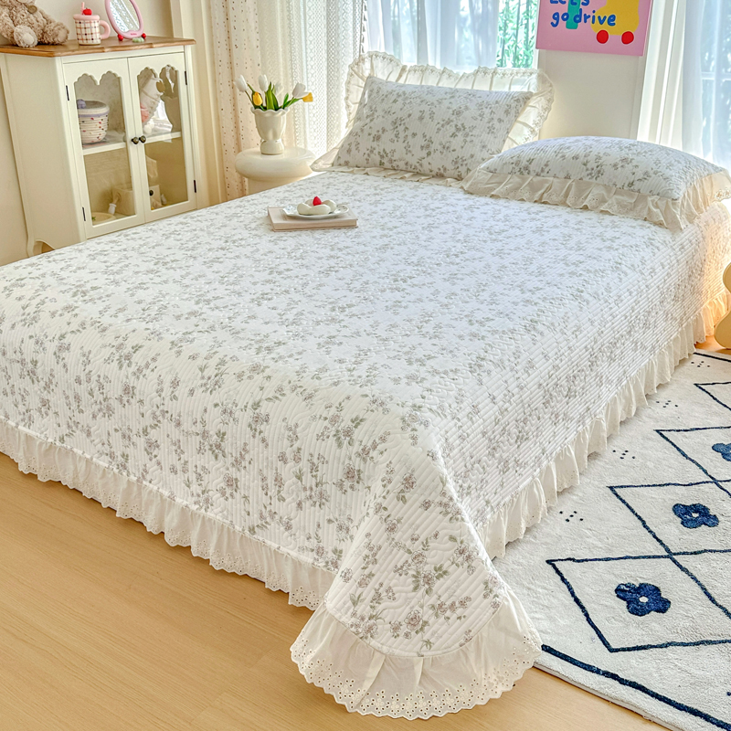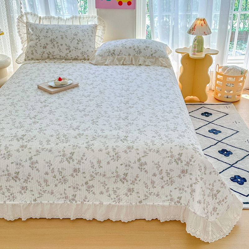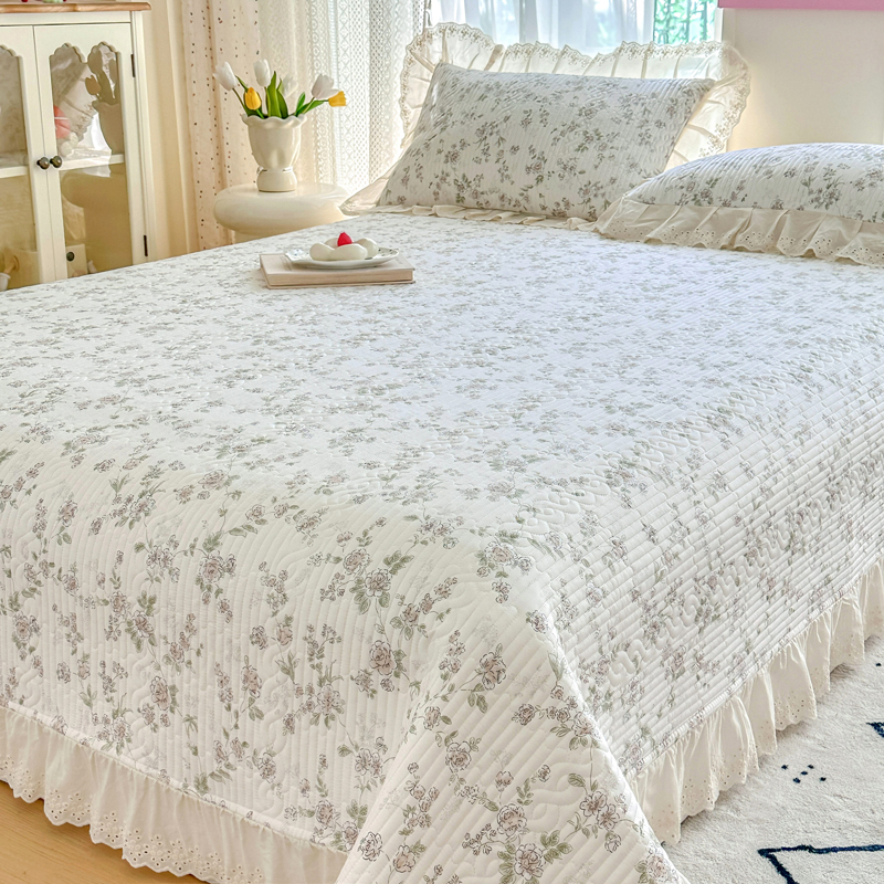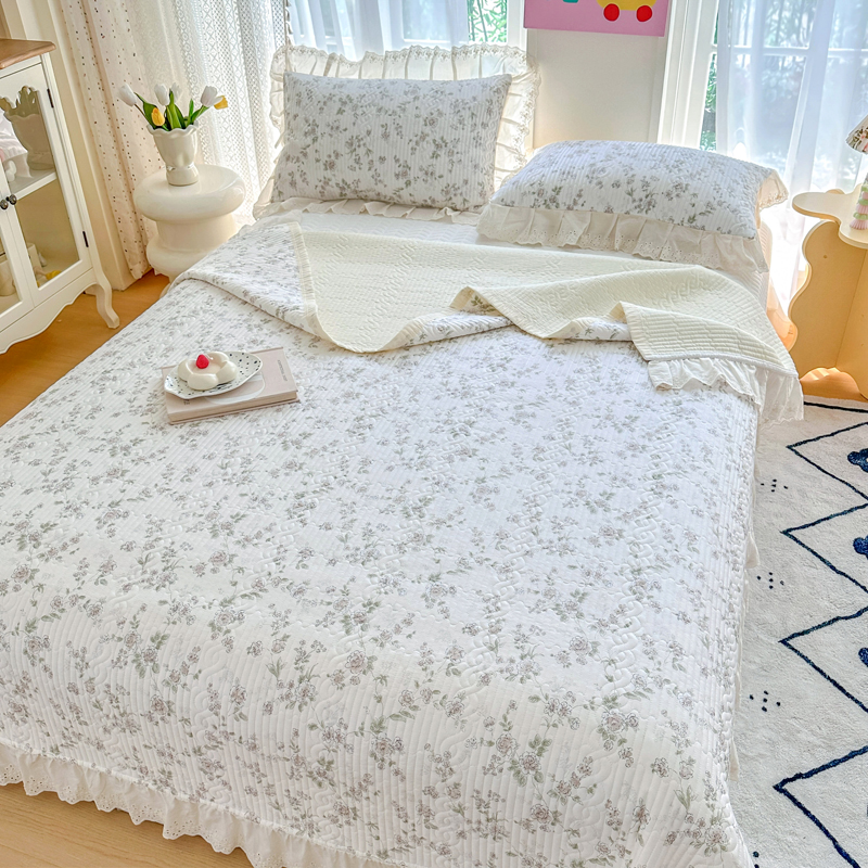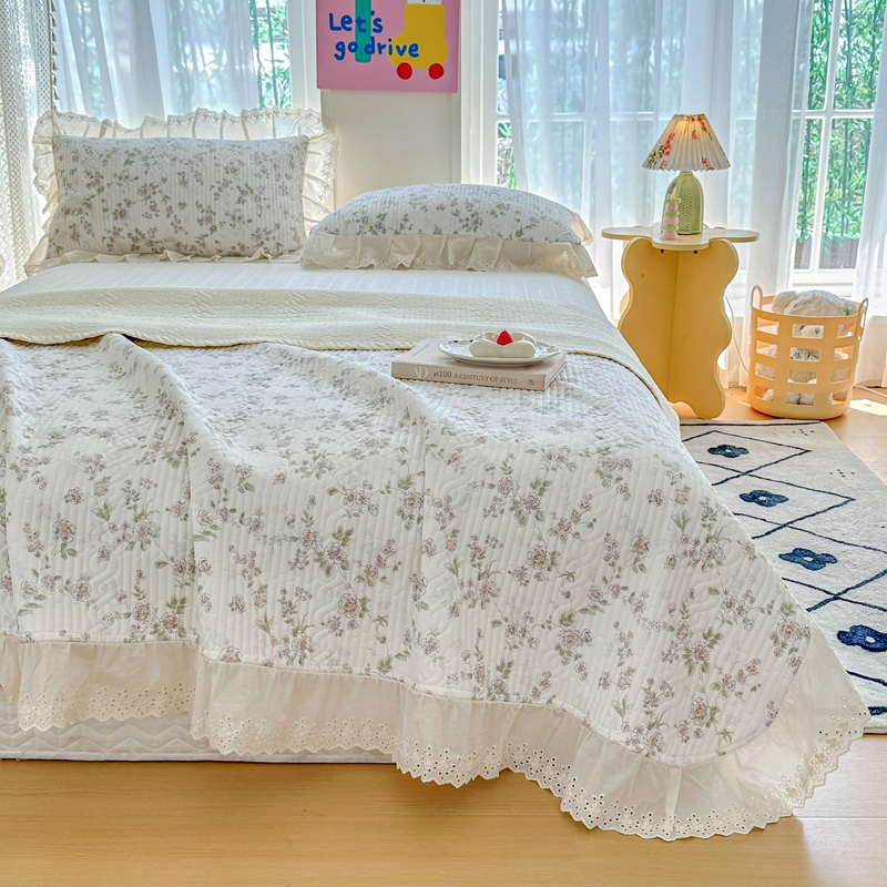 (总)岚吉家纺 2025新款全棉绗缝棉花床盖花边款三件套四件套,缤纷樱桃,草莓格子,花边兔,黄苏条,蓝美人,落落晨光,萌萌狮,蘑菇狗,秋日玫瑰,兔菲菲,向晚,小黑点点(米),游花间