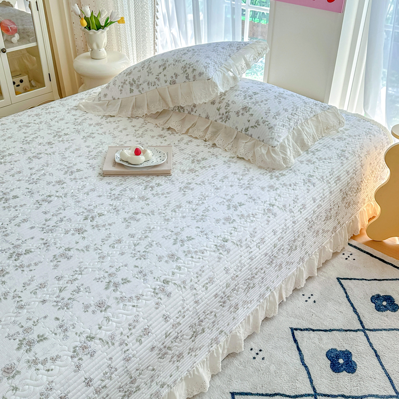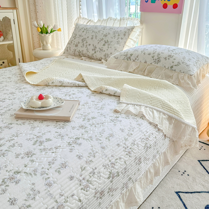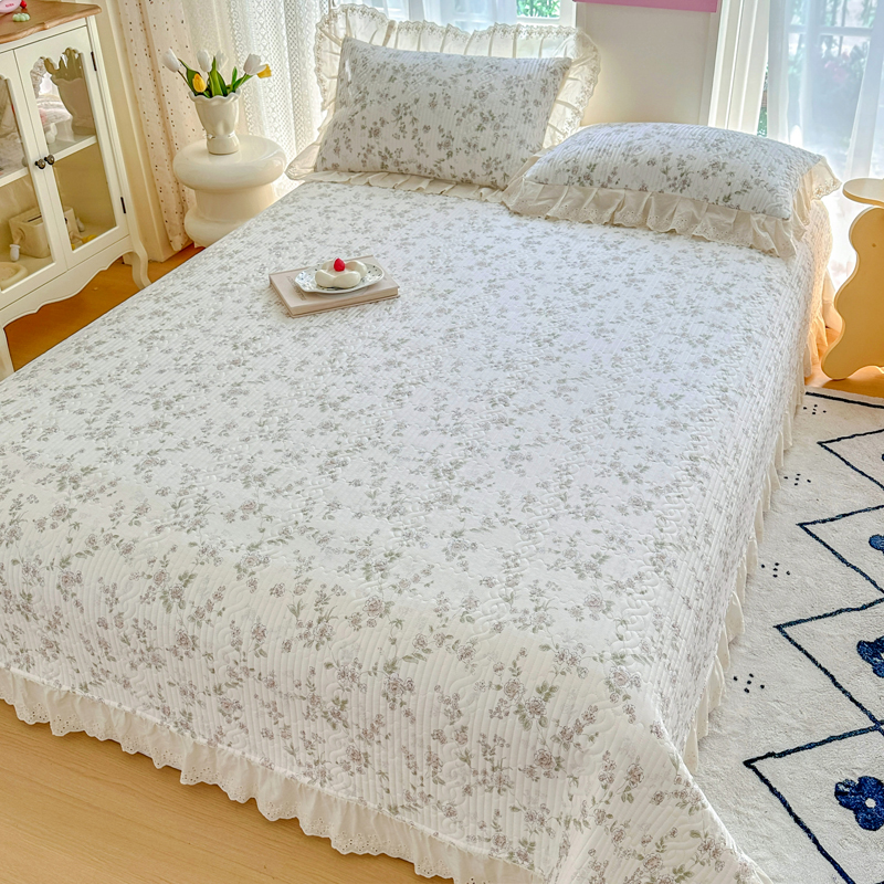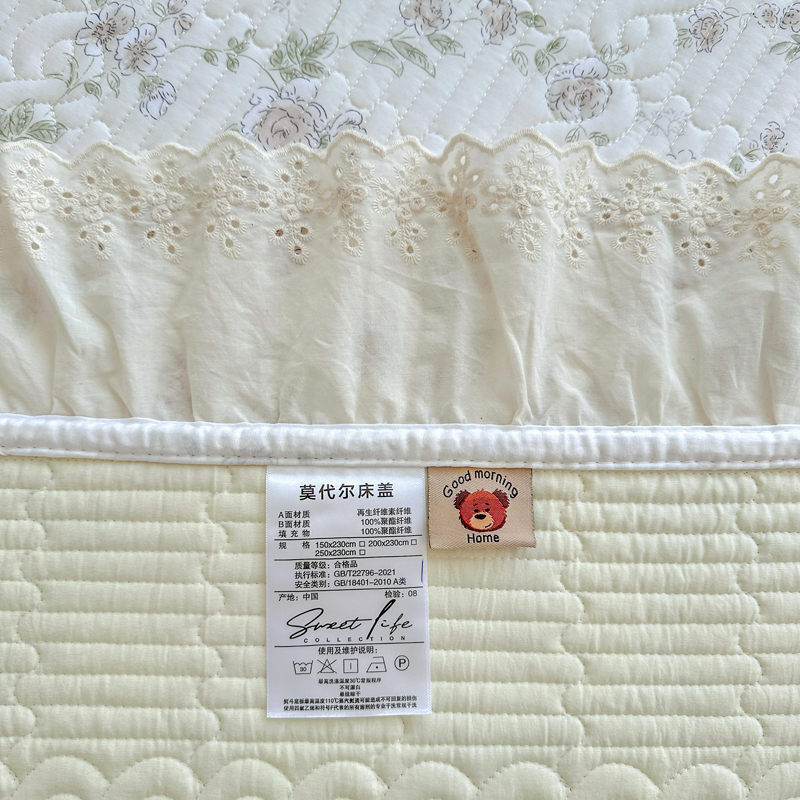 • 91家纺网 家纺一手货源 找家纺 (总)岚吉 2025新款莫代尔纯色小花边床盖三件套,白桃粉,海风蓝,皓月黄,奶油绿,天青色,珍珠灰