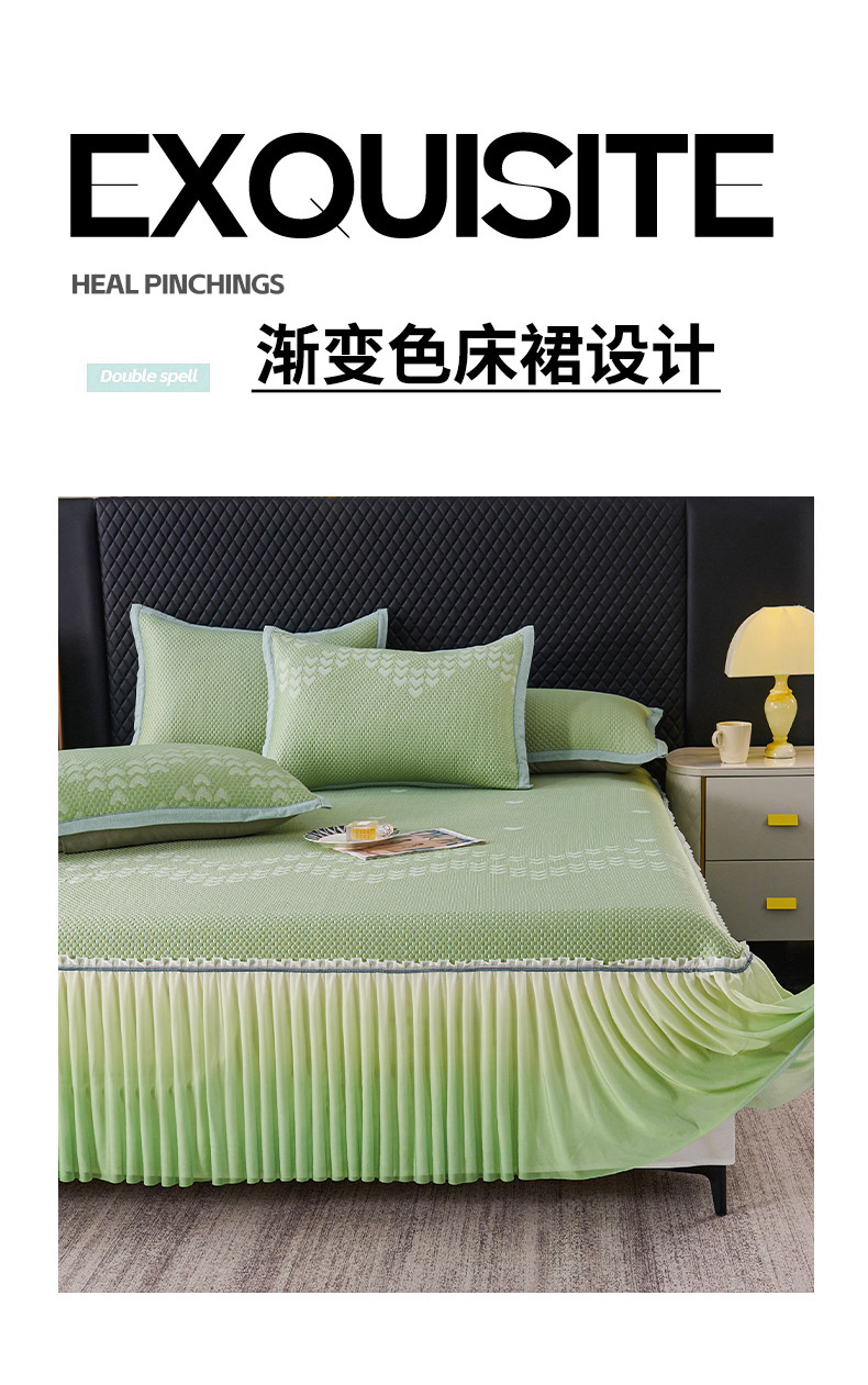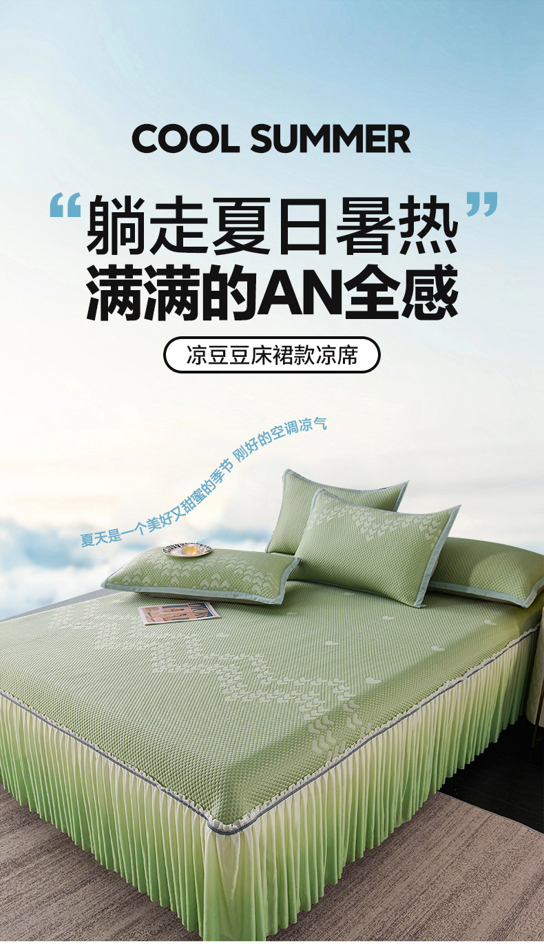 商品名称:尚品凤凰2025新款凉感床裙渐变色豆豆席床裙凉席直角席 凉席席子 爱心直角 粉