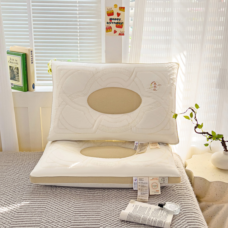 商品名称:(总)幸运草 2025新款全棉决明子草本记护颈枕头 成人家用分区定型枕芯