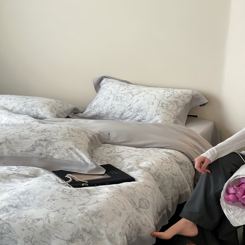 (总)佳汐蓝家纺 2025新款100支全棉贡缎数码印花四件套-画蝶,画蝶