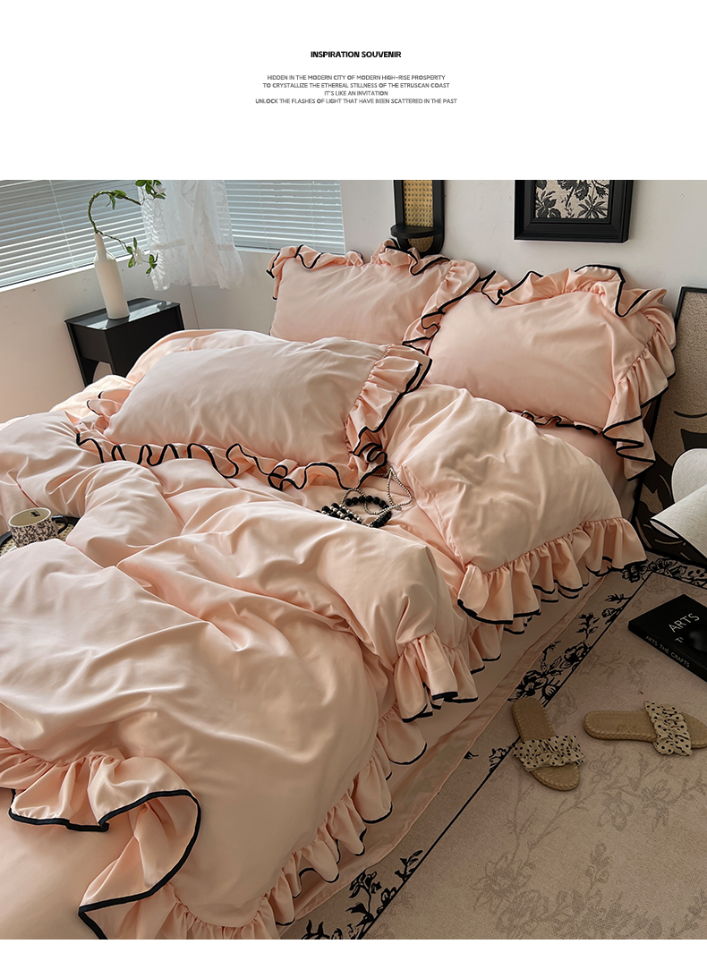 商品名称:(总)原素 2025夏季冰丝韩系大花边水洗真丝四件套
