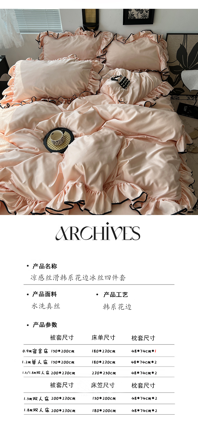 (总)原素 2025夏季冰丝韩系大花边水洗真丝四件套