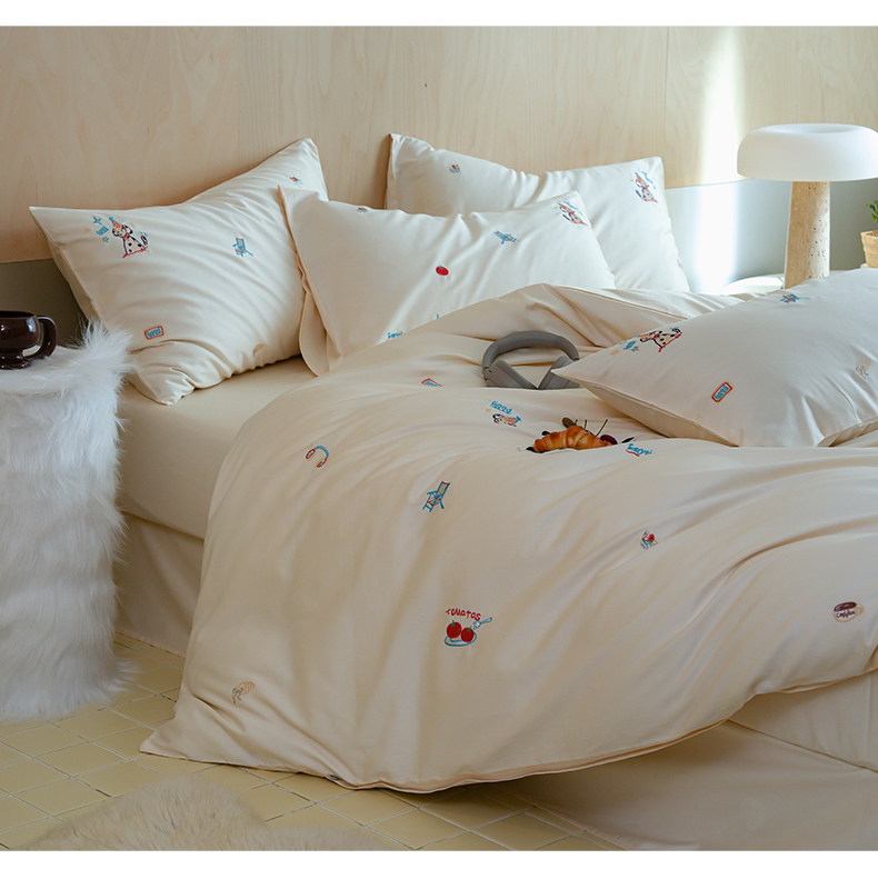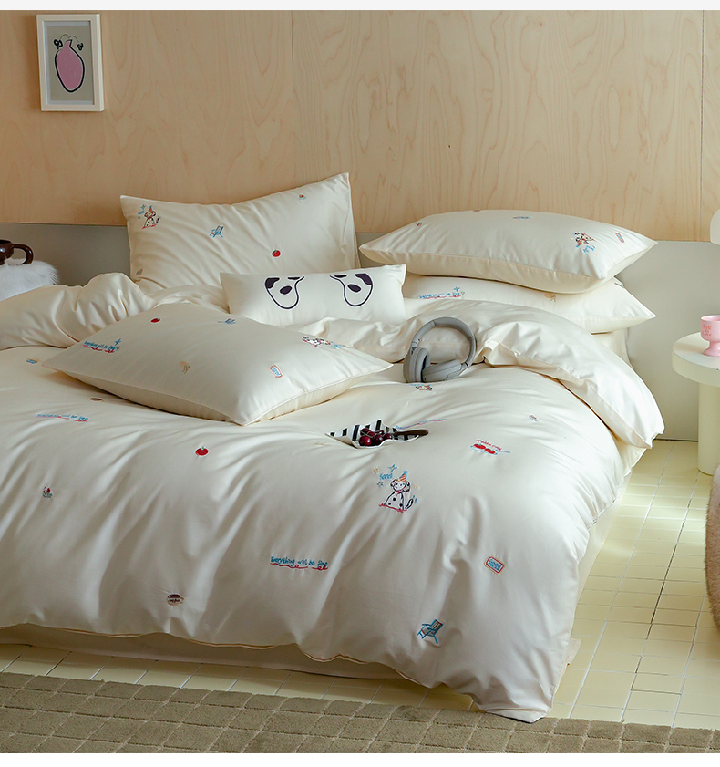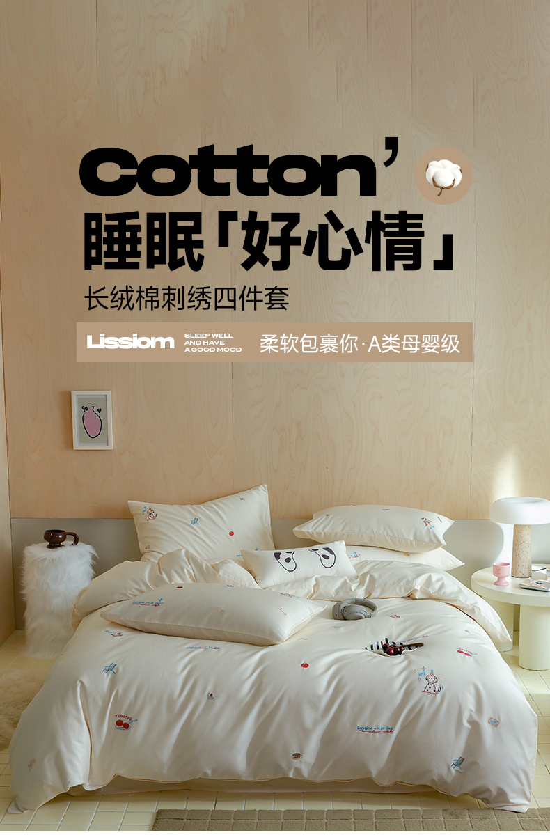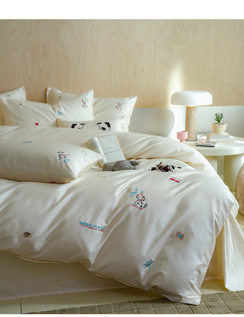 当前位置: 91家纺网 > 商品网购 > 床品套件 > 四件套 > 全棉普通四件套 > 简纯主义 2025新款A类趣味系列全棉长绒棉插画绣花四件套-露露米娅 露露米娅-白