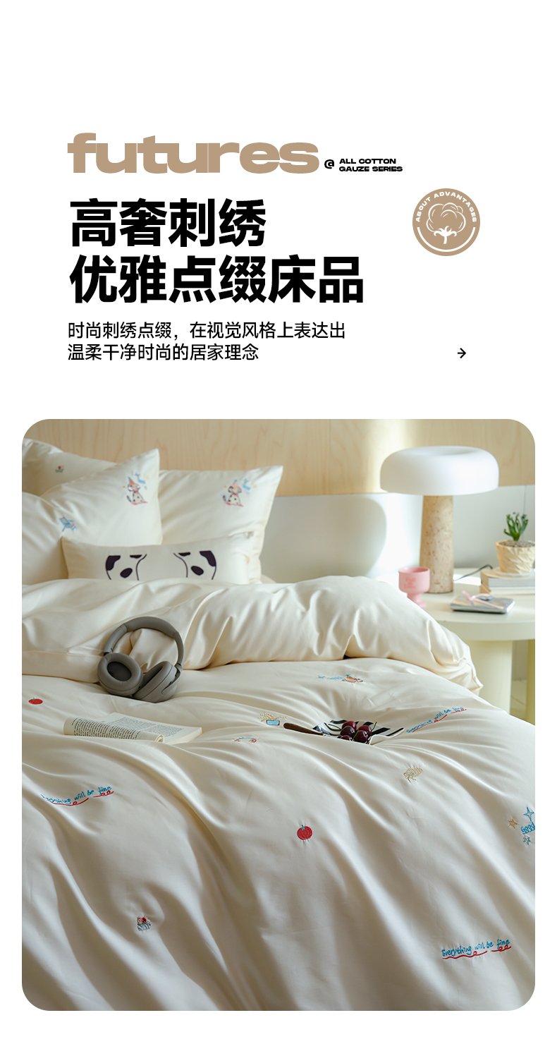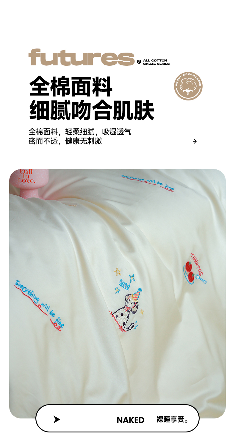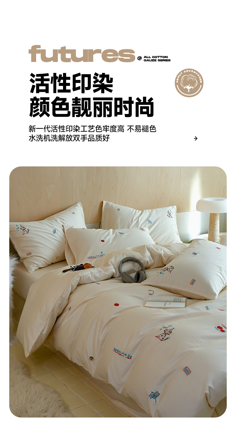 当前位置: 91家纺网 > 商品网购 > 床品套件 > 四件套 > 全棉普通四件套 > 简纯主义 2025新款A类趣味系列全棉长绒棉插画绣花四件套-露露米娅 露露米娅-白
