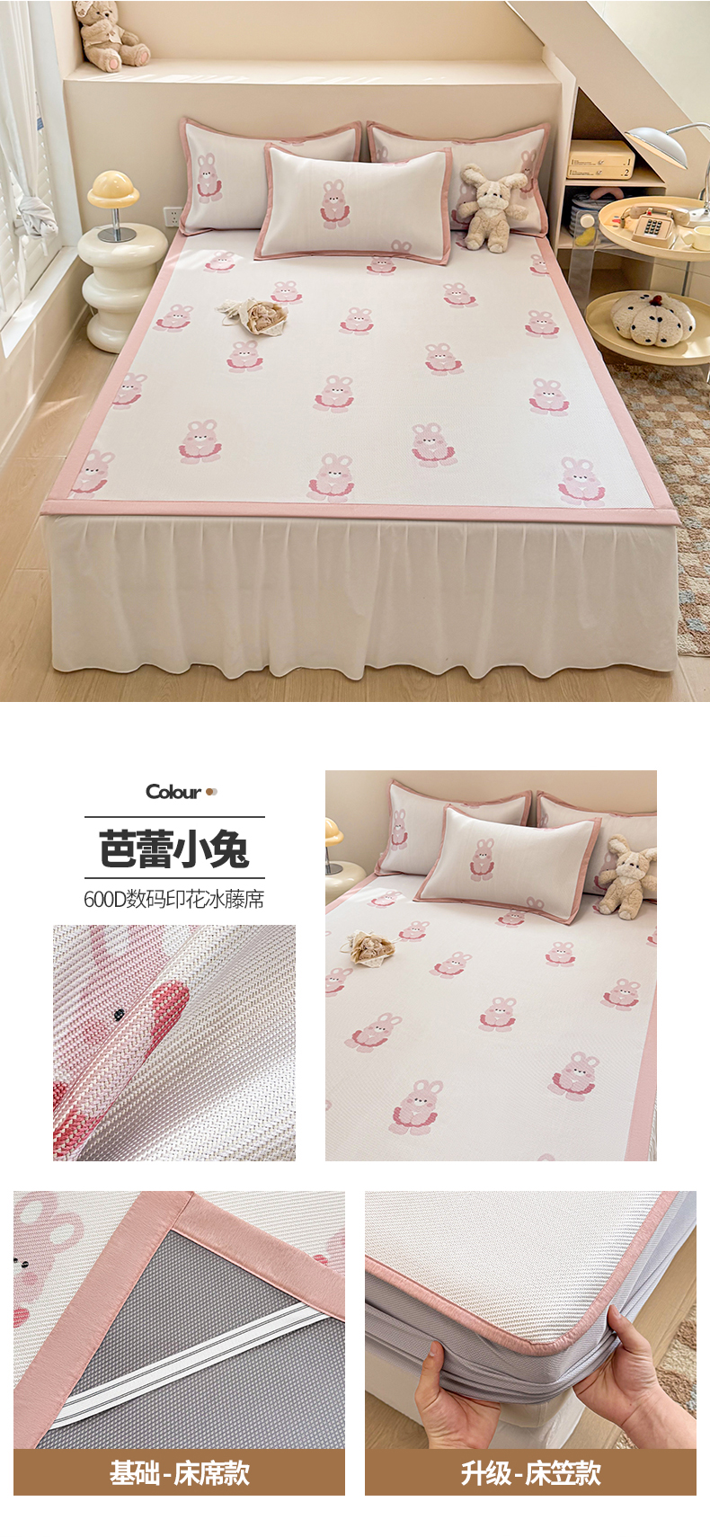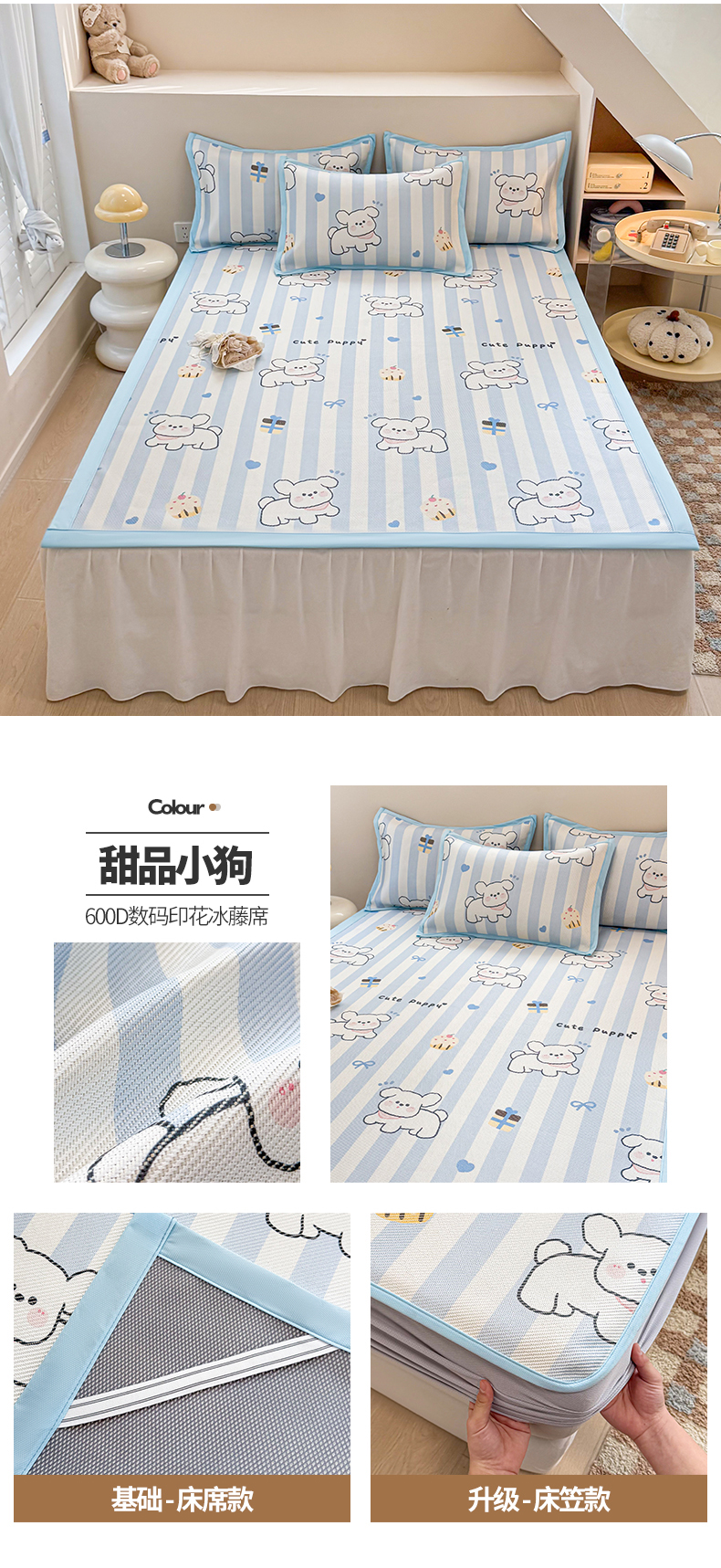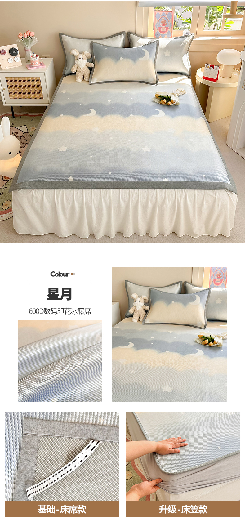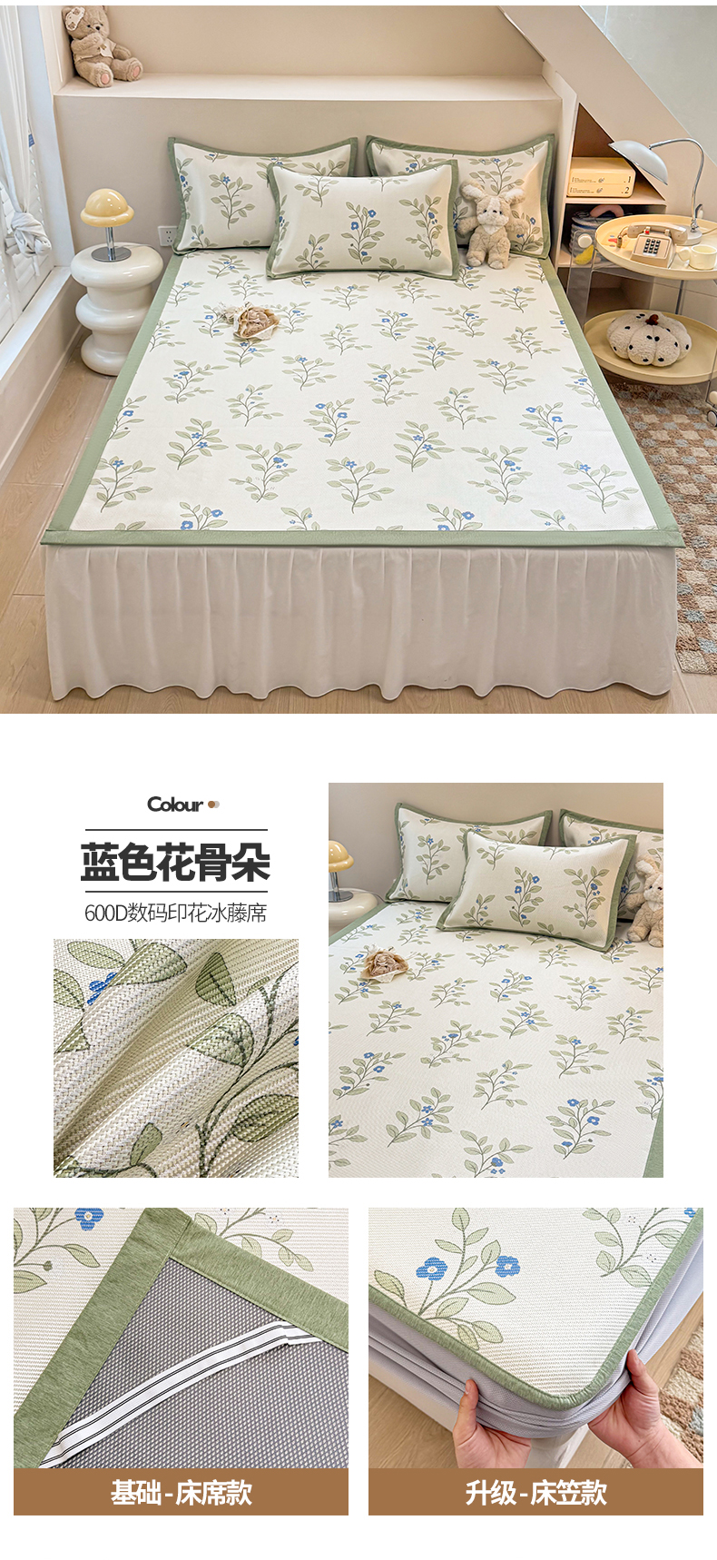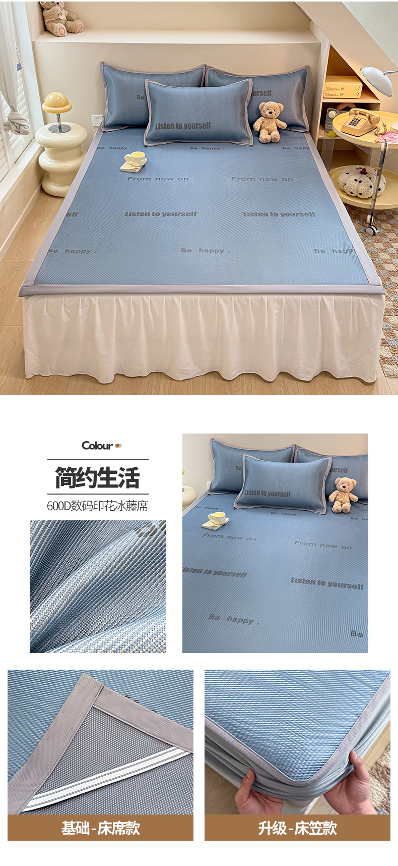 典曼家纺 2025新款600D数码印花冰藤席席子凉席-床笠款 简约生活-床笠款
