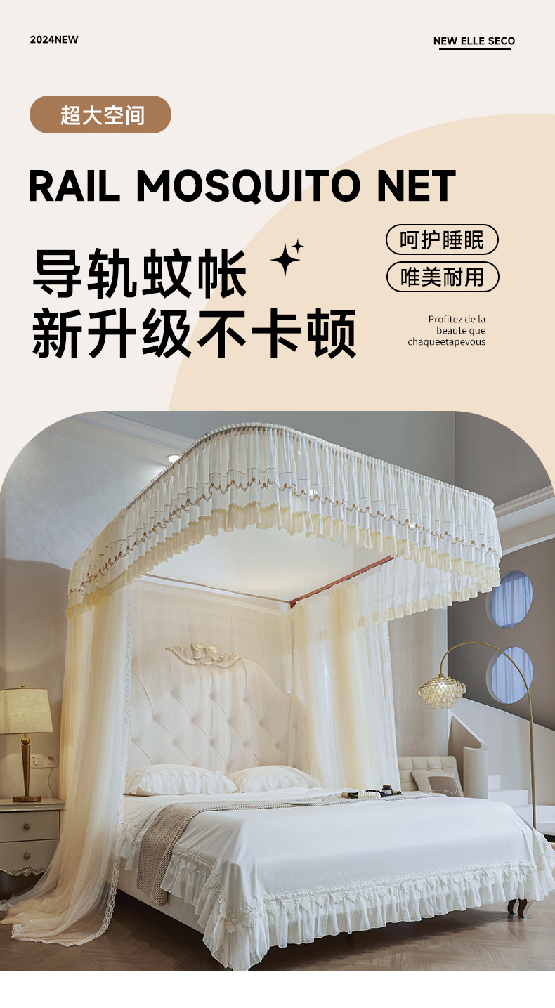 (总)梦尔佳蚊帐2025新款U型导轨蚊帐-861荣华富贵系列,宛如玉,婚纱白,天空蓝,温柔黄,喜庆粉
