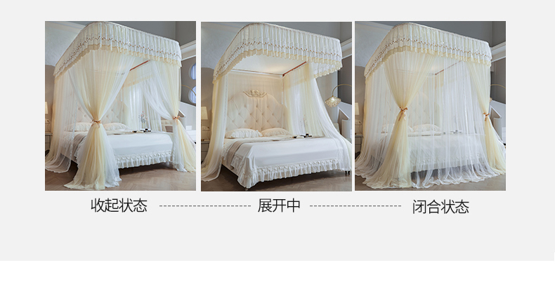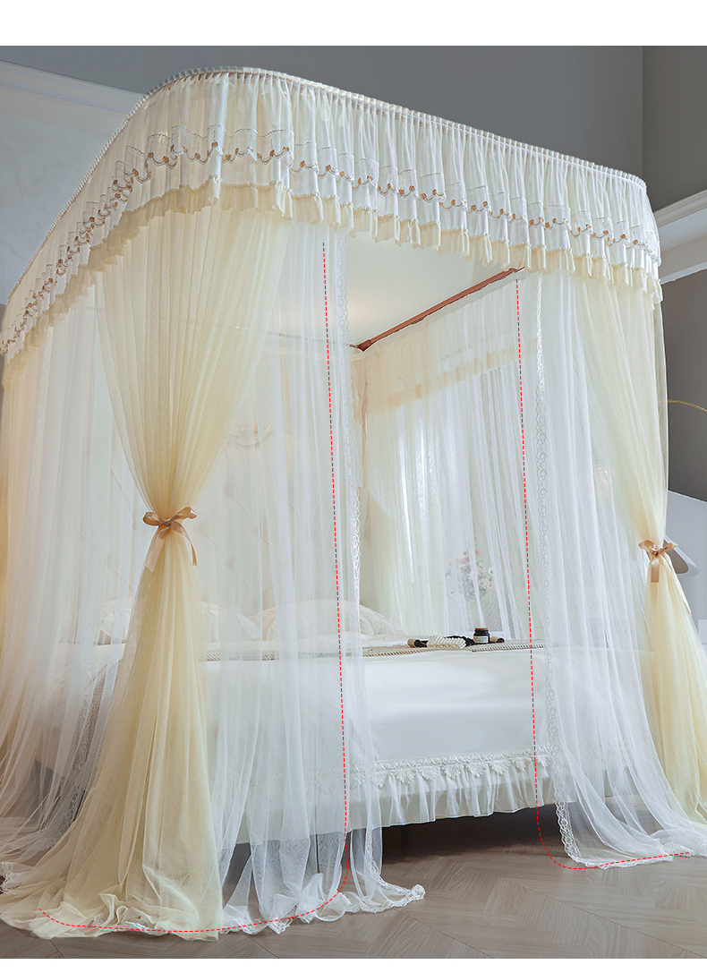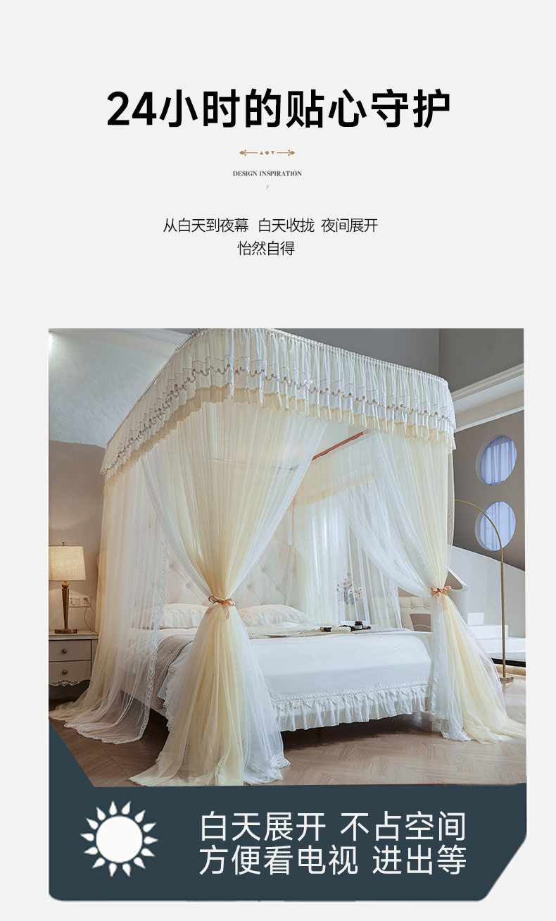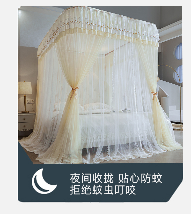 (总)梦尔佳蚊帐 2025新款双层花边床笠式三开门蚊帐-858怜香惜玉系列,优雅黄,富贵白,高级灰,温柔玉,清爽蓝