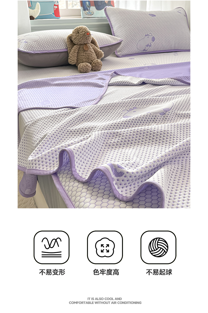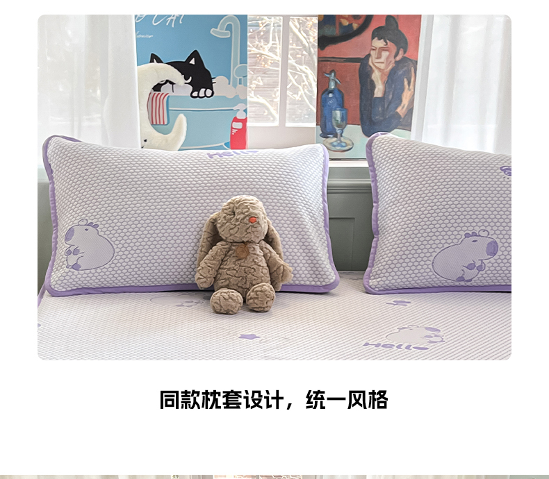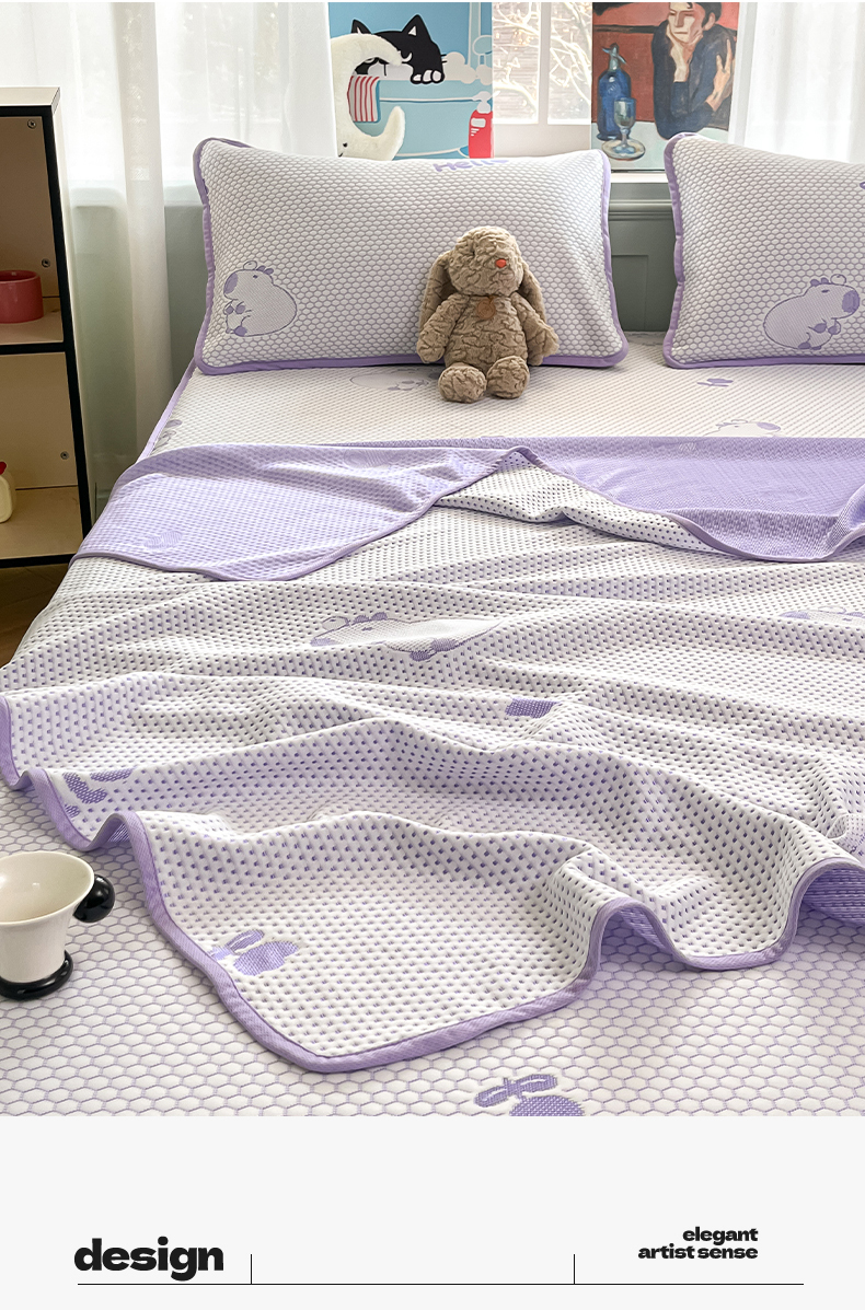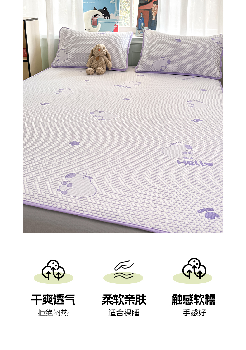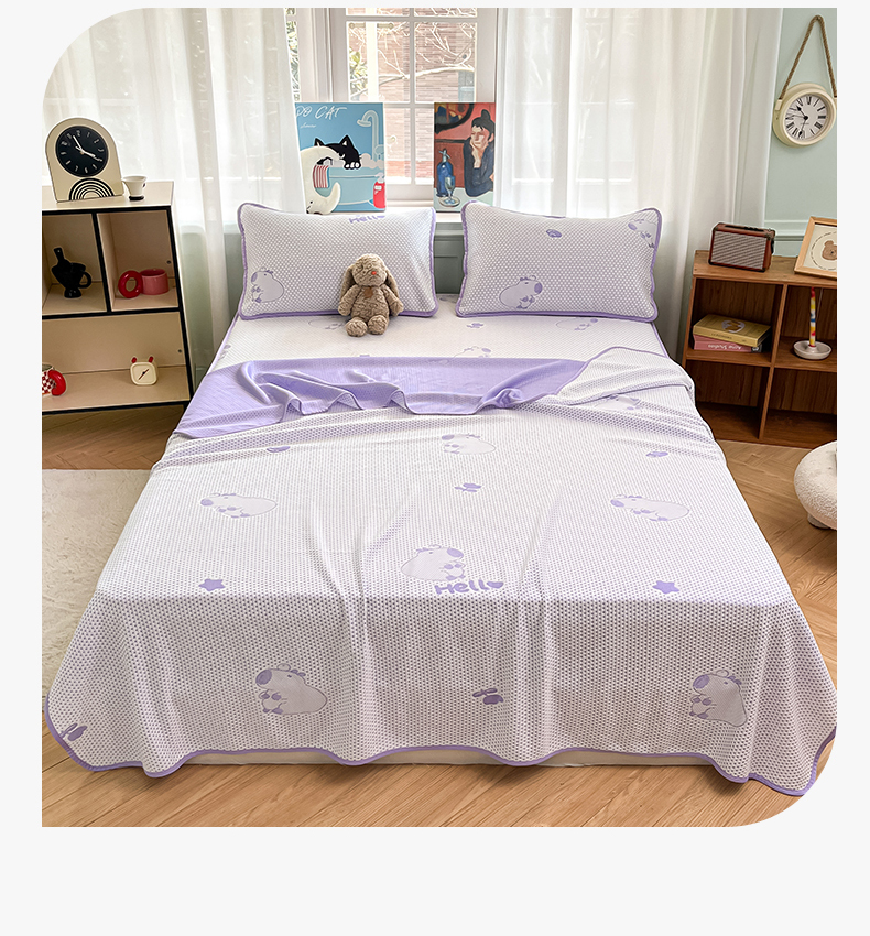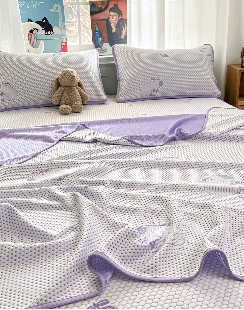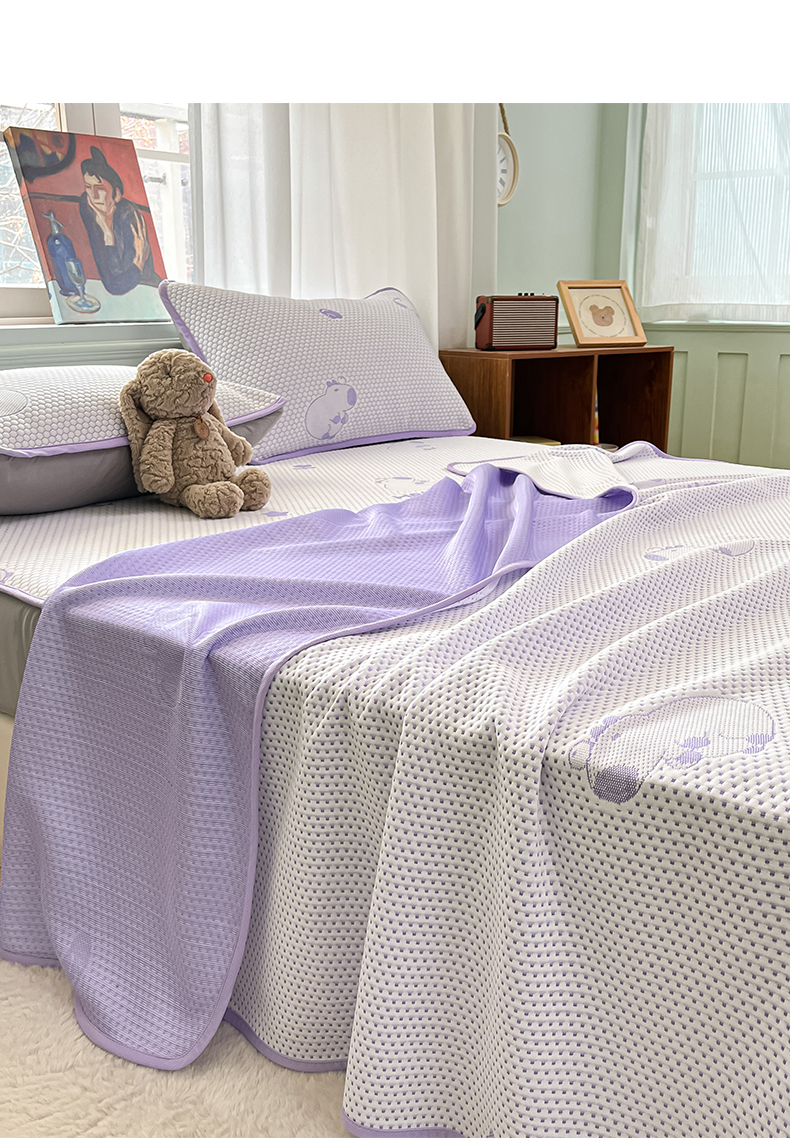 商品名称:绘萱家居 2025爆款冰凉豆豆凉席夏被四件套三件套床笠款冰丝软席子 卡皮巴拉-紫