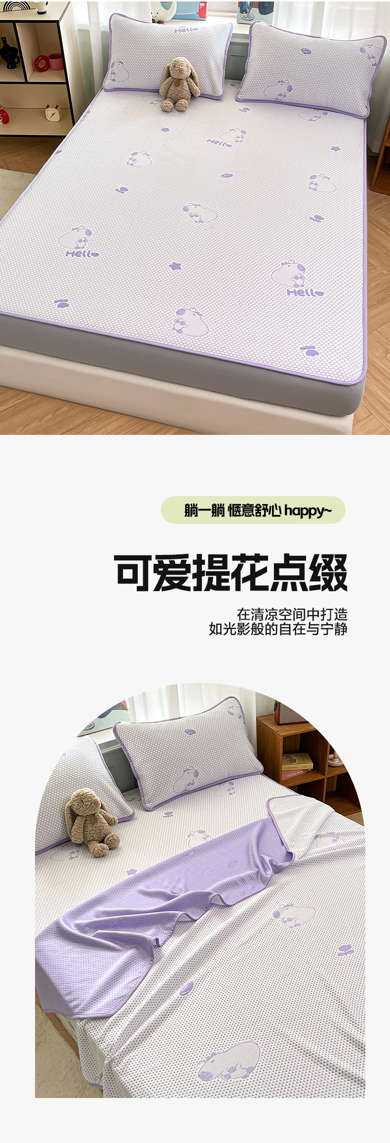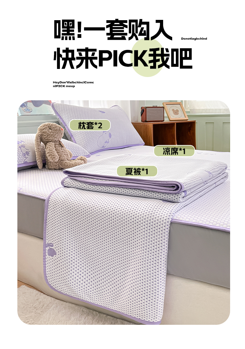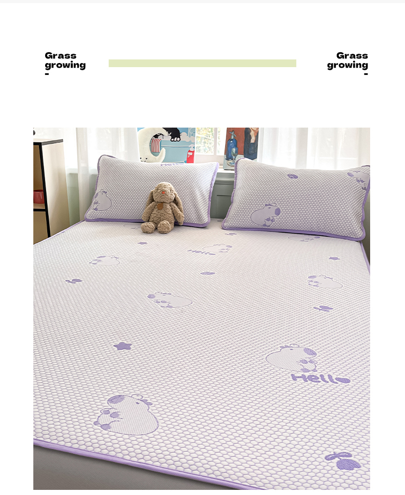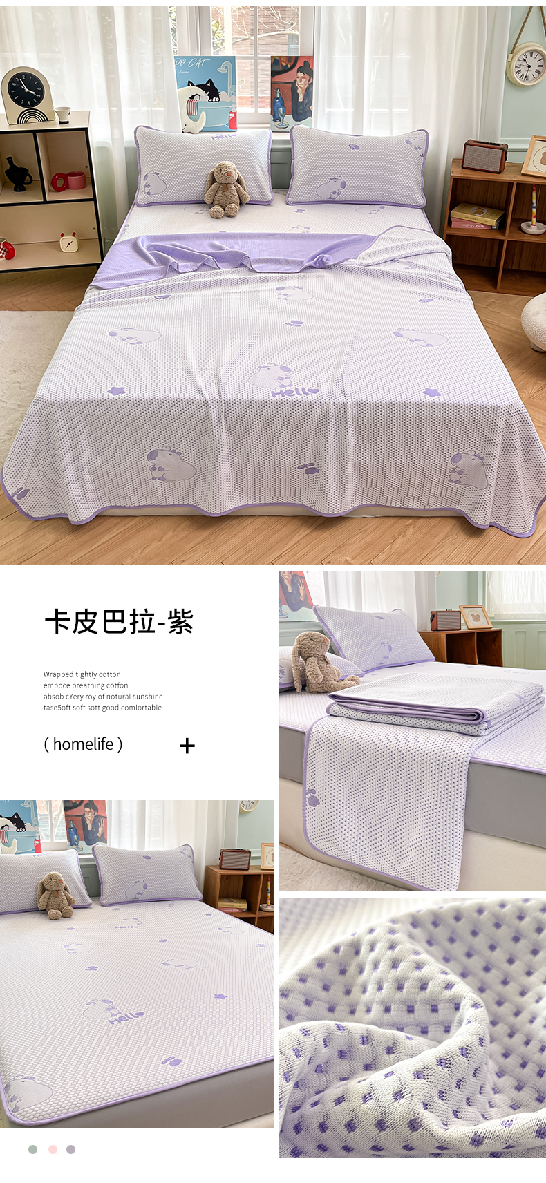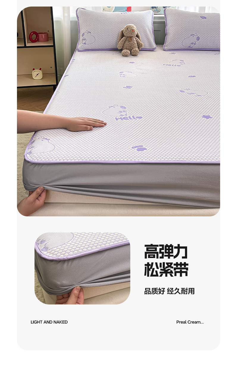 商品名称:绘萱家居 2025爆款冰凉豆豆凉席夏被四件套三件套床笠款冰丝软席子 卡皮巴拉-紫