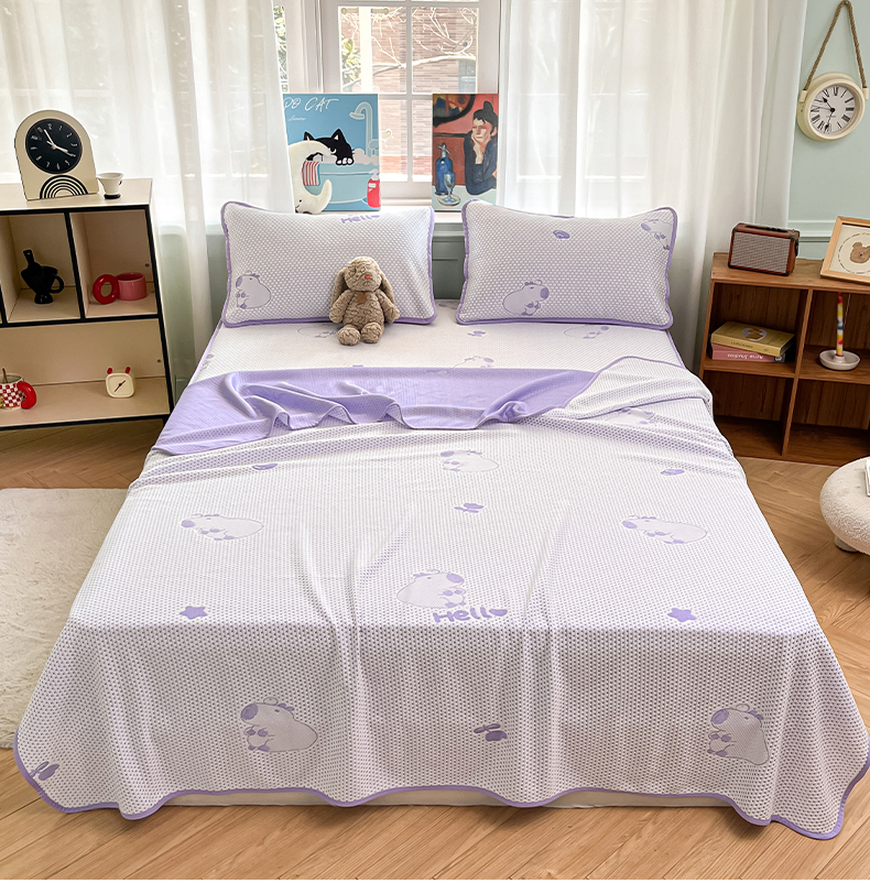 绘萱家居 2025爆款冰凉豆豆凉席夏被四件套三件套床笠款冰丝软席子 卡皮巴拉-紫