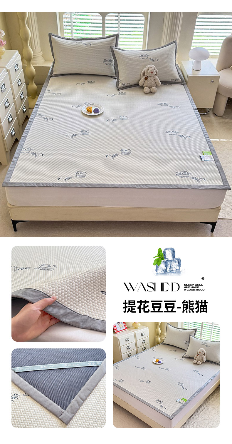 商品名称:绒世界 2025新款A类提花凉感豆豆复合凉席套件 提花豆豆-熊猫