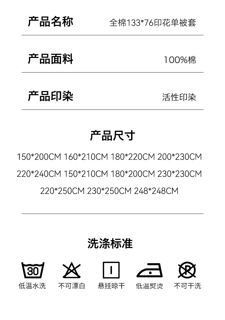 200x230cm单被套 | ¥75.00 |